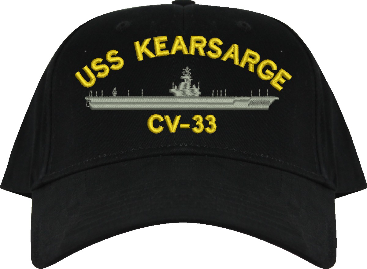 All Text on custom orders will be embroidered in ALL CAPITAL LETTERS.MilitaryBest is proud to offer this USS Kearsarge CV-33 Imported Cap. This Cap honors the service of our U.S. Navy personel who have served aboard this ship protecting our freedom with pride. Choose from an assortment of colors in High or Low Profile. These are perfect for honoring your USS Kearsarge Navy Veteran. For an additional cost you can also have your Custom Text embroidered on the back of the ball cap. All embroidery is performed to order at our facilities in Scottsboro, Alabama by Americans with a passion for patriotism!
