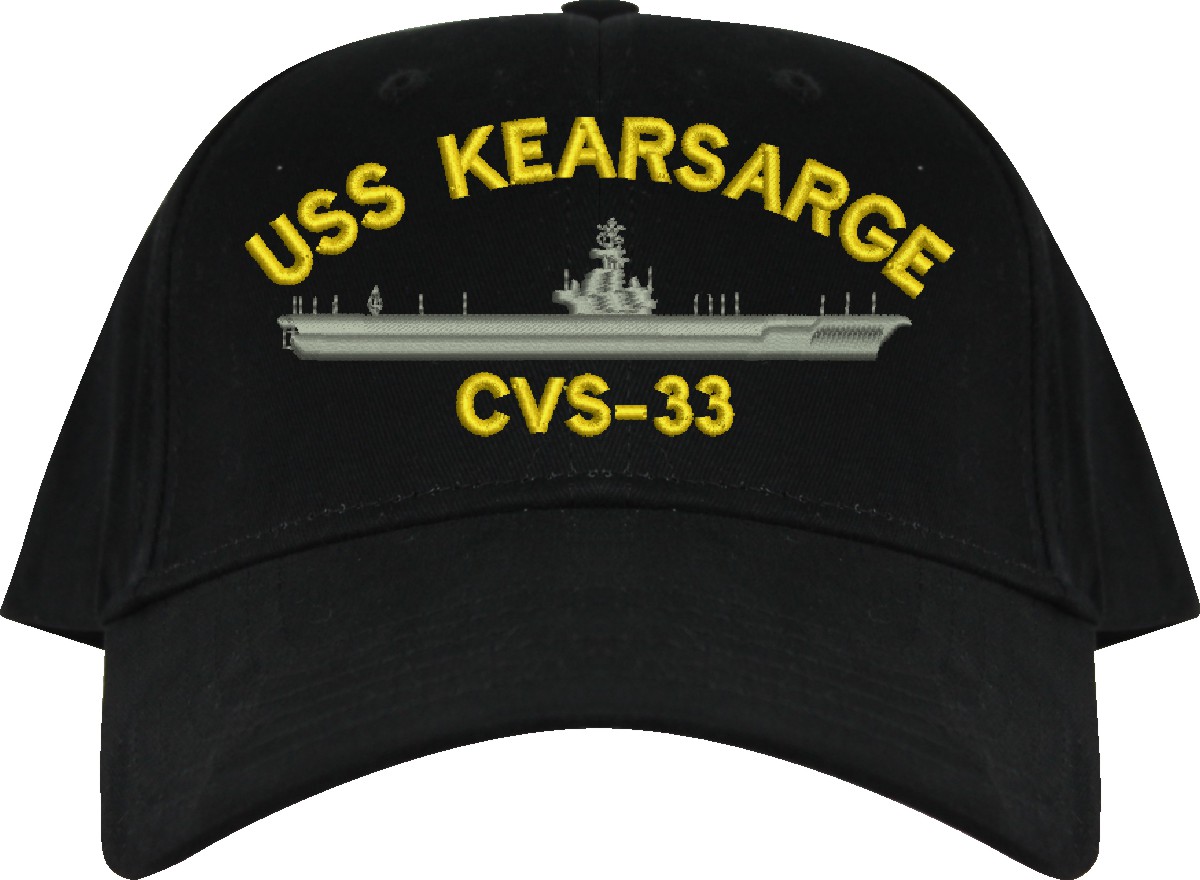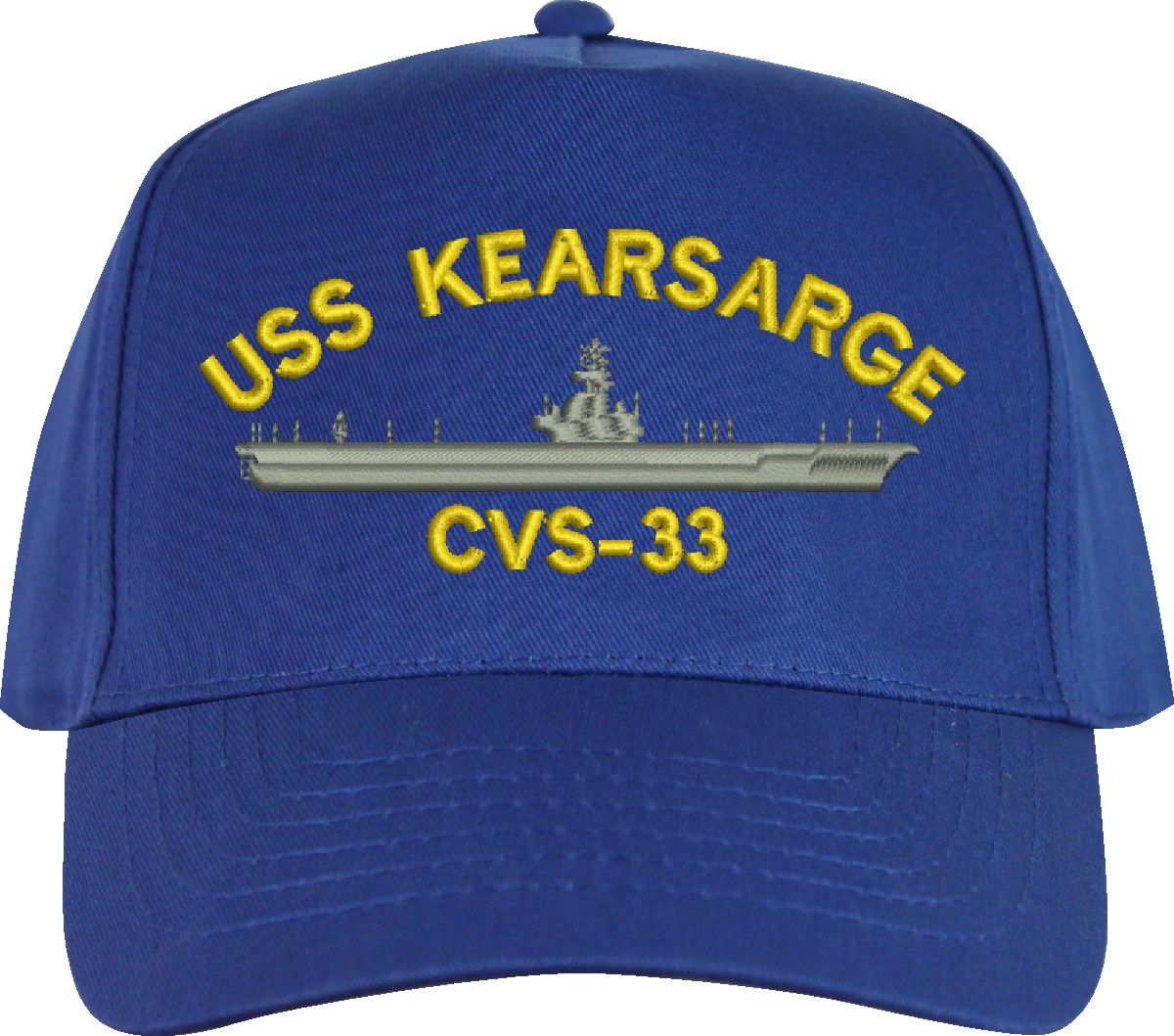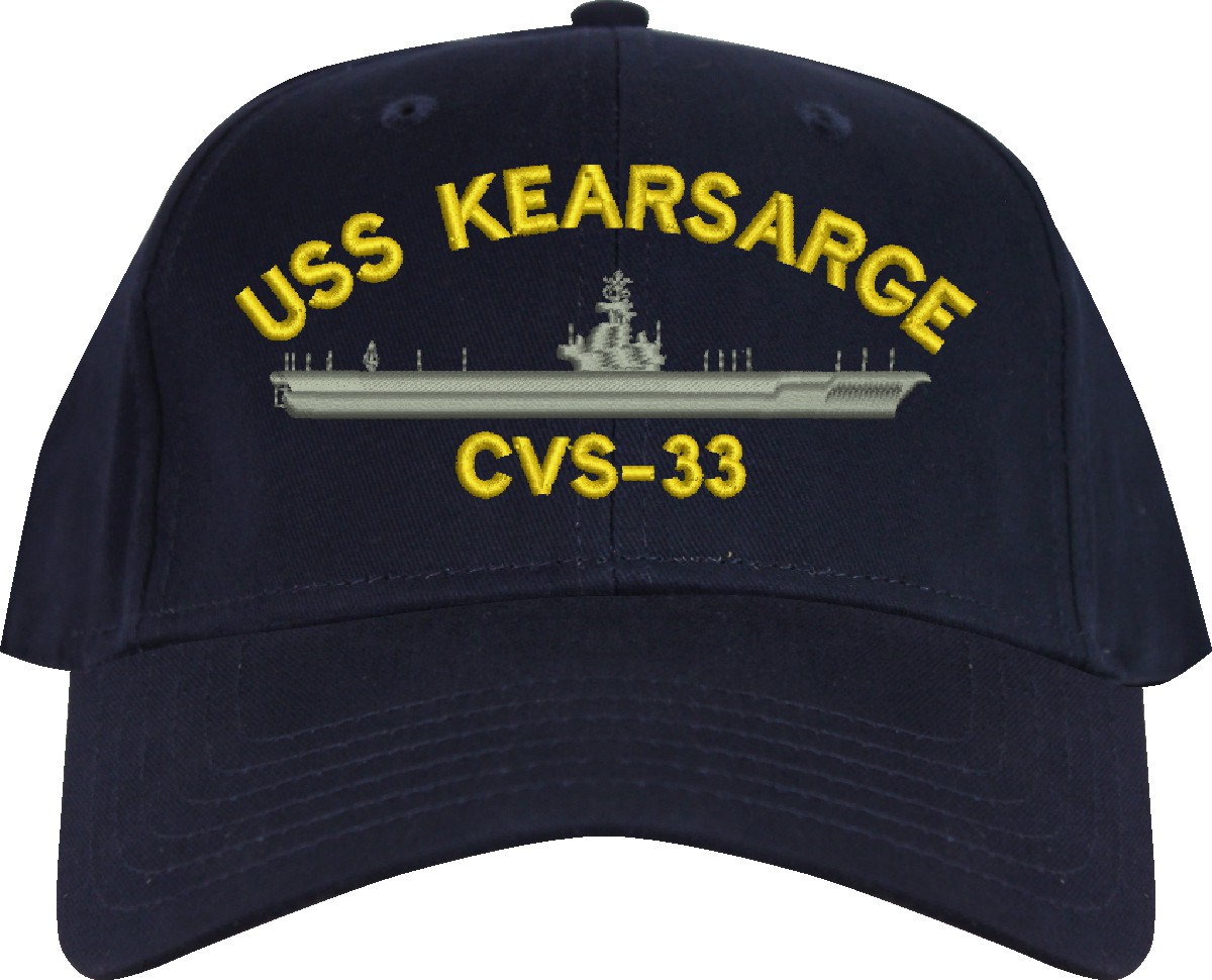All Text on custom orders will be embroidered in ALL CAPITAL LETTERS.MilitaryBest is proud to offer this USS Kearsarge CVS-33 Imported Cap. This Cap honors the service of our U.S. Navy personel who have served aboard this ship protecting our freedom with pride. Choose from an assortment of colors in High or Low Profile. These are perfect for honoring your USS Kearsarge Navy Veteran. For an additional cost you can also have your Custom Text embroidered on the back of the ball cap. All embroidery is performed to order at our facilities in Scottsboro, Alabama by Americans with a passion for patriotism!