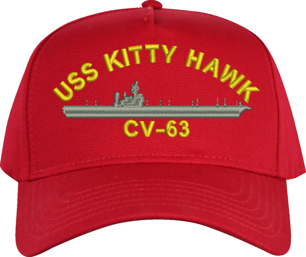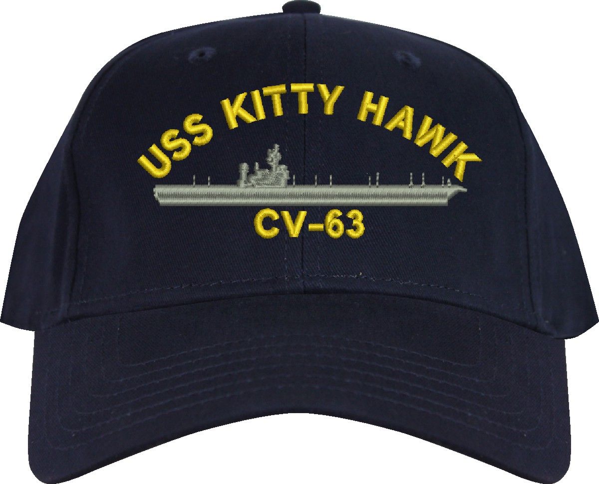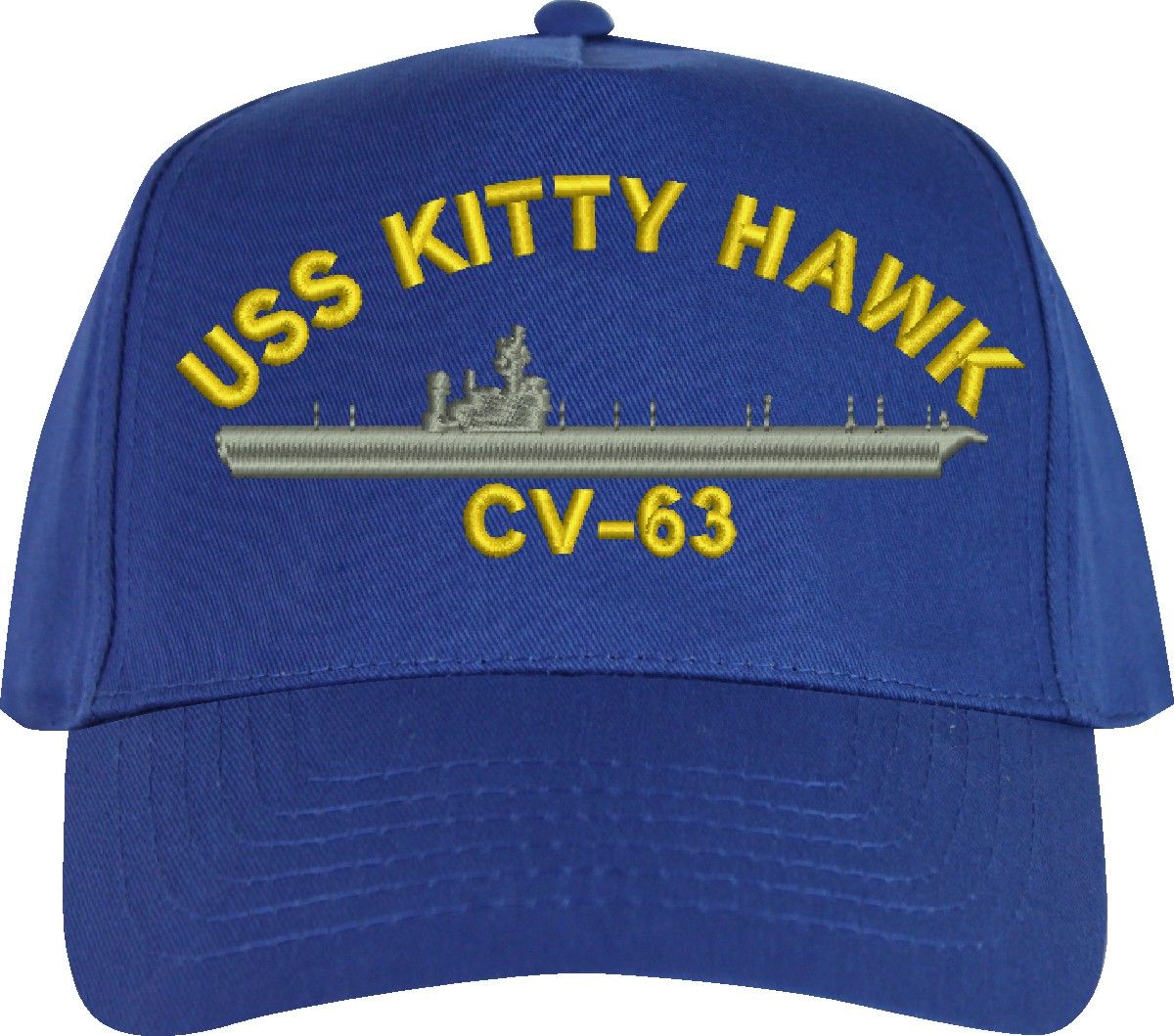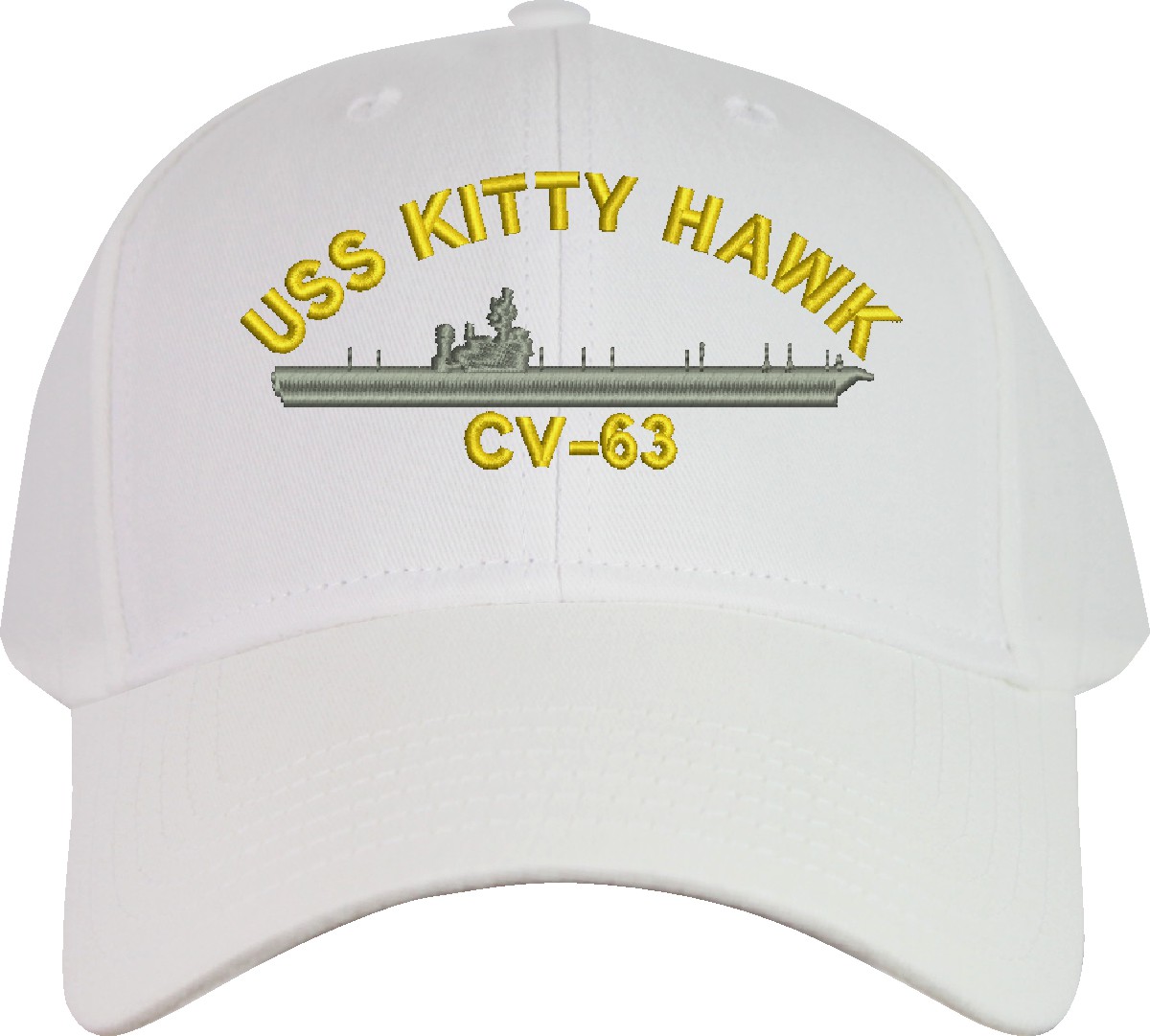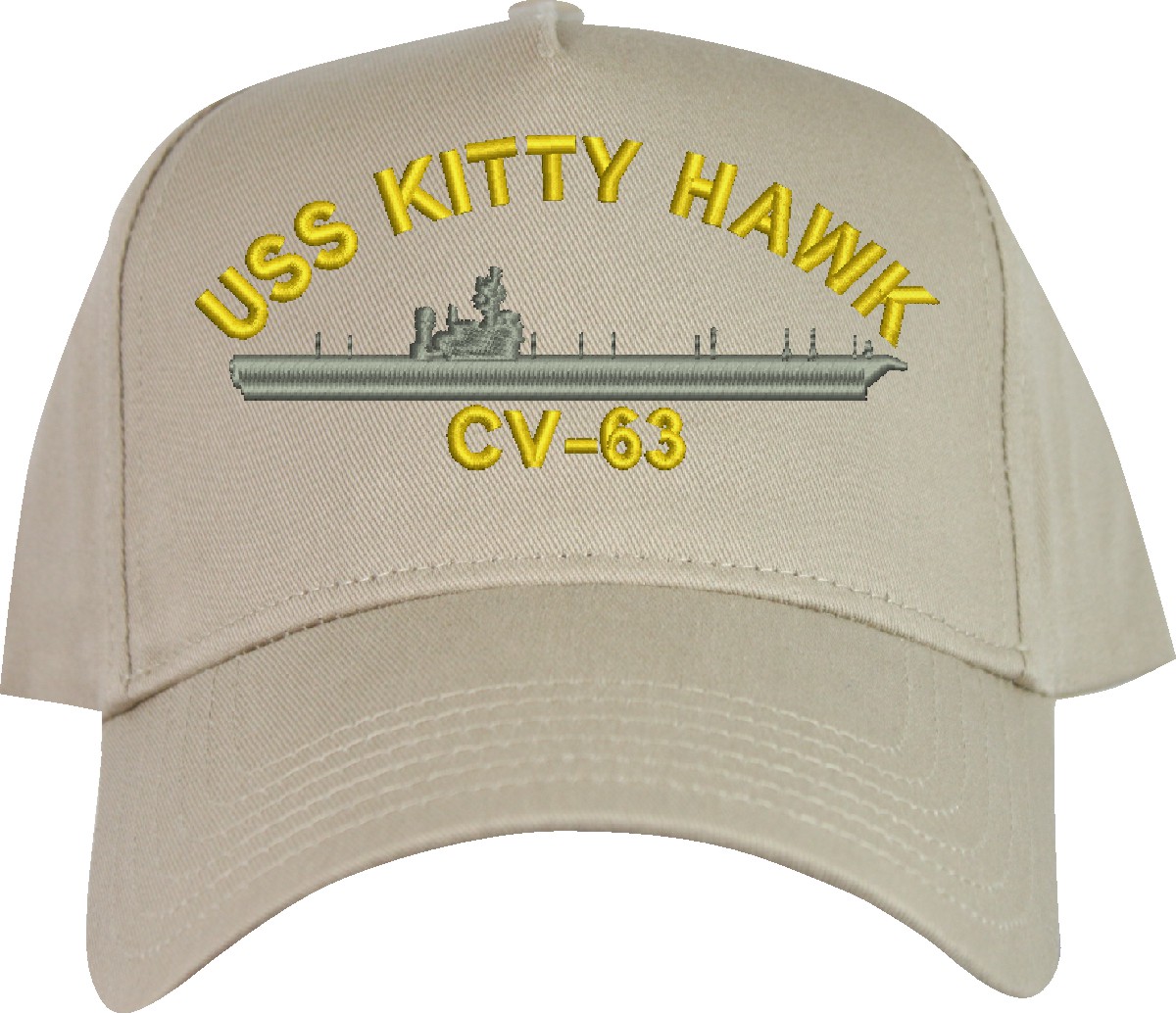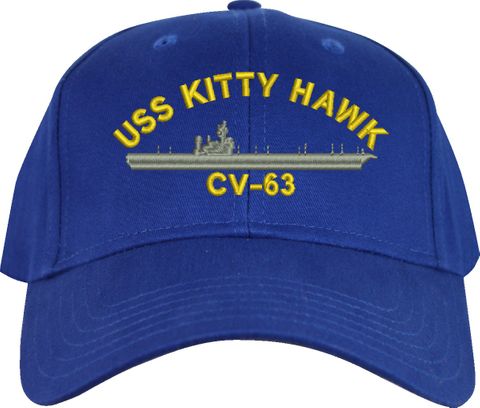 All Text on custom orders will be embroidered in ALL CAPITAL LETTERS.MilitaryBest is proud to offer this USS Kitty HawkCV-63 Imported Cap. This Cap honors the service of our U.S. Navy personel who have served aboard this ship protecting our freedom with pride. Choose from an assortment of colors in High or Low Profile. These are perfect for honoring your USS Kitty HawkNavy Veteran. For an additional cost you can also have your Custom Text embroidered on the back of the ball cap. All embroidery is performed to order at our facilities in Scottsboro, Alabama by Americans with a passion for patriotism!