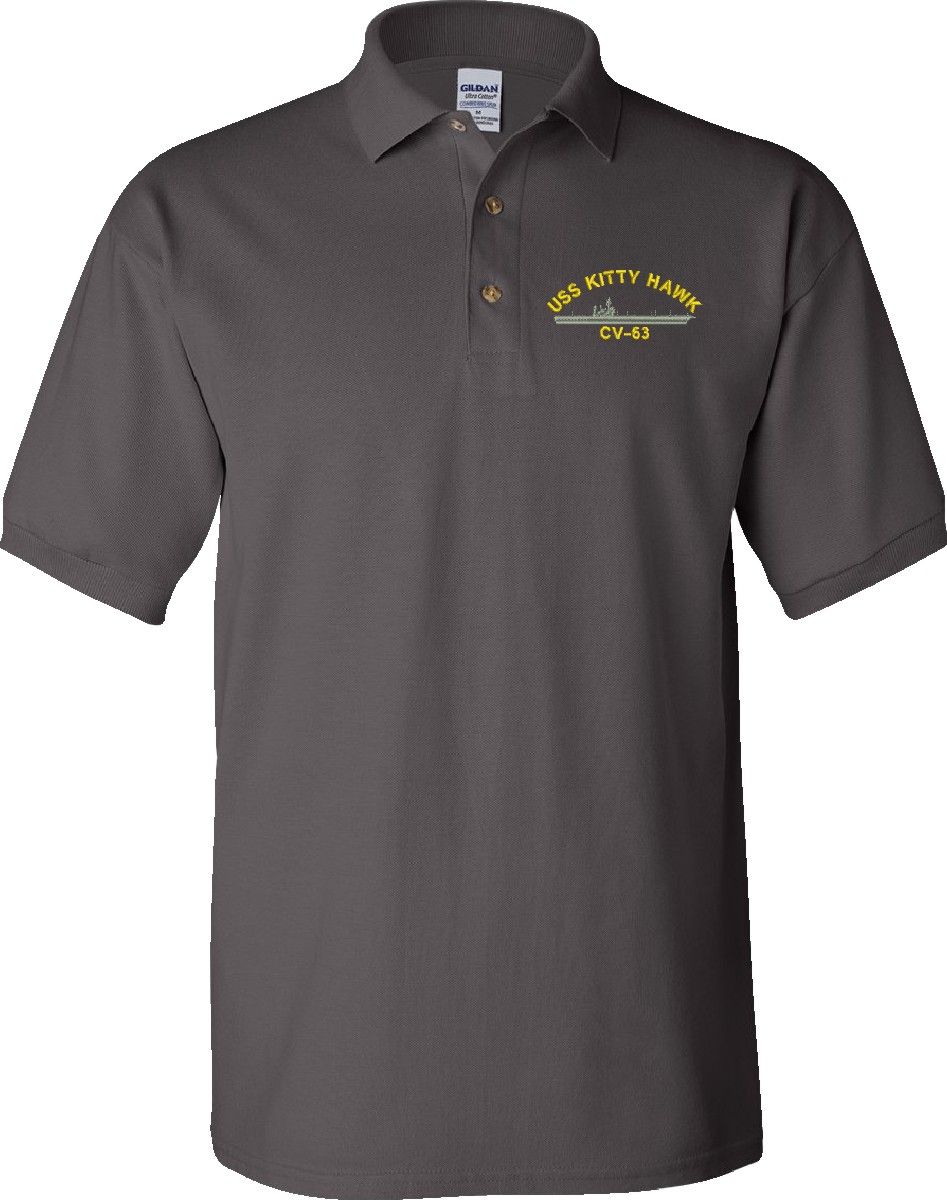 Note: Some of the Color Options pictured may not be available. Available Color Options are listed on the drop down menu above.MilitaryBest is proud to offer this quality USS Kitty Hawk CV-63 Polo. Each Polo is available in either 100% Ringspun cotton pique or a 50/50 cotton/polyester blend. These quality Military Polos are proudly embroidered at our facilities in Scottsboro, AL. Support the Army MWR program by purchasing only from Licensed Vendors.