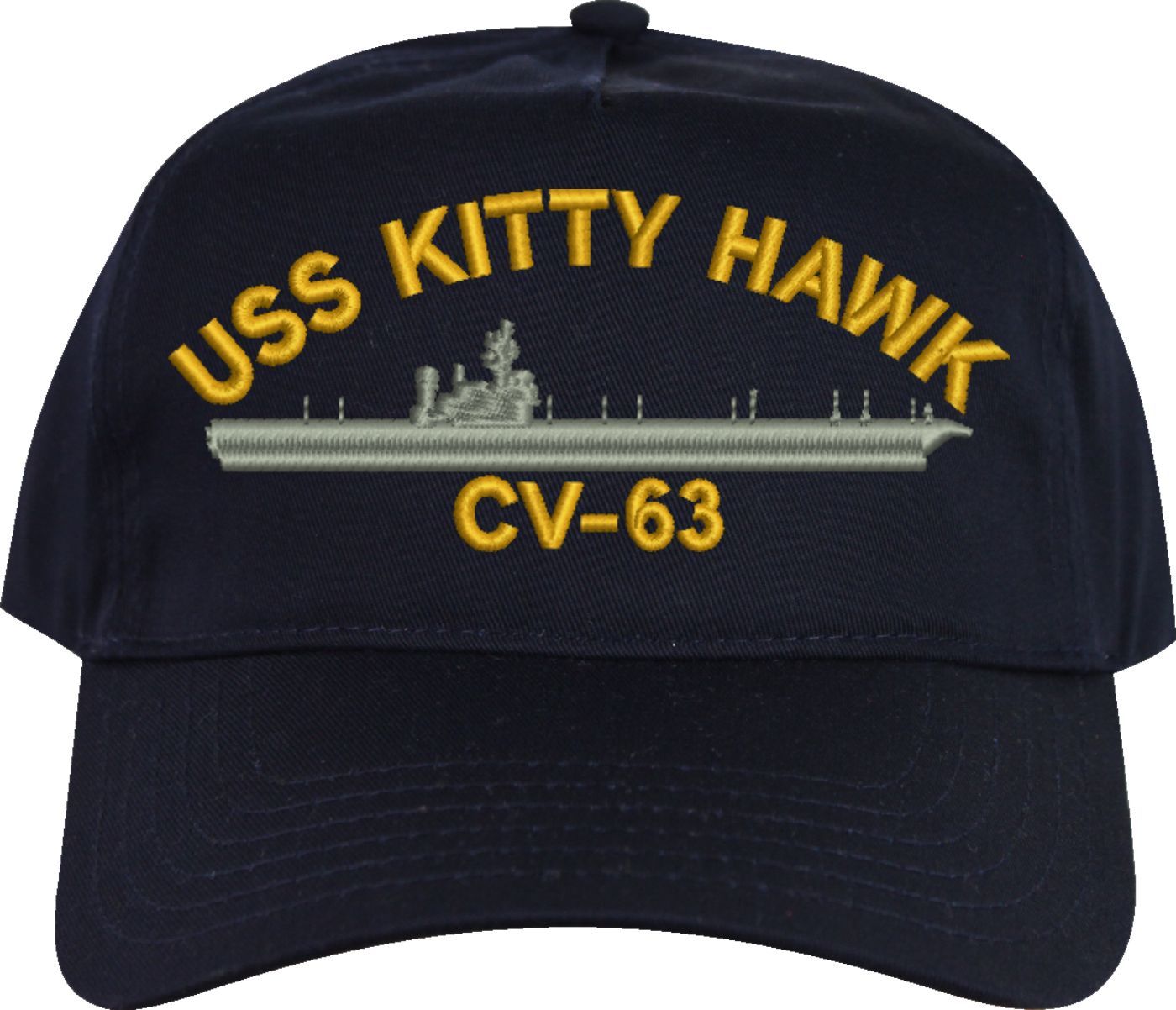 MilitaryBest is proud to offer this USS Kitty HawkCV-63 Made in the USA Ball Cap. This Cap honors the service of our U.S. Navy personel who have served aboard this ship protecting our freedom with pride. Choose from Navy Blue or Black in High or Low Profile. These are perfect for honoring your USS Kitty HawkNavy Veteran. For an additional cost you can also have your Custom Text embroidered on the back of the ball cap. Embroidery on these Made in the USA caps is performed to order at our facilities in Scottsboro, Alabama by Americans with a passion for patriotism!