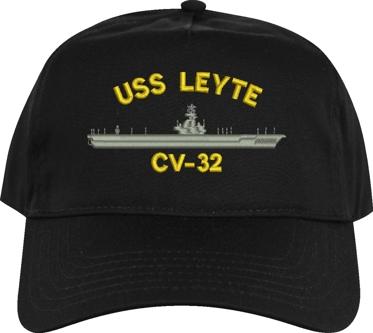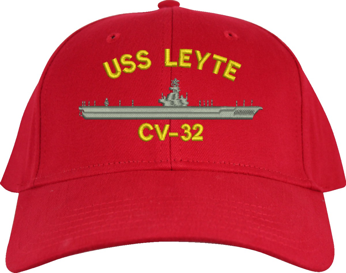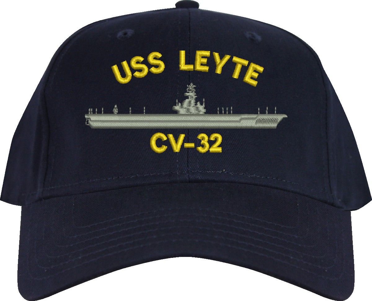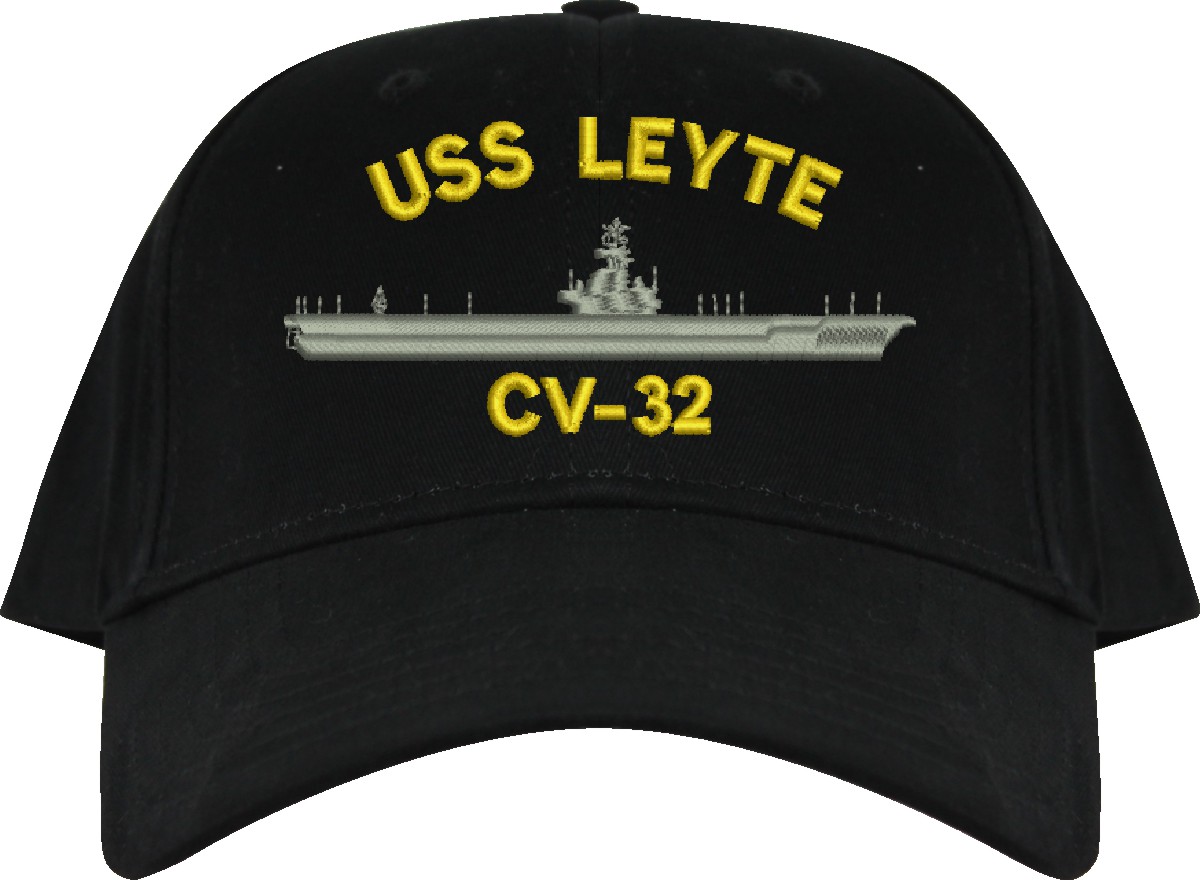 All Text on custom orders will be embroidered in ALL CAPITAL LETTERS.MilitaryBest is proud to offer this USS Leyte CV-32 Imported Cap. This Cap honors the service of our U.S. Navy personel who have served aboard this ship protecting our freedom with pride. Choose from an assortment of colors in High or Low Profile. These are perfect for honoring your USS Leyte Navy Veteran. For an additional cost you can also have your Custom Text embroidered on the back of the ball cap. All embroidery is performed to order at our facilities in Scottsboro, Alabama by Americans with a passion for patriotism!