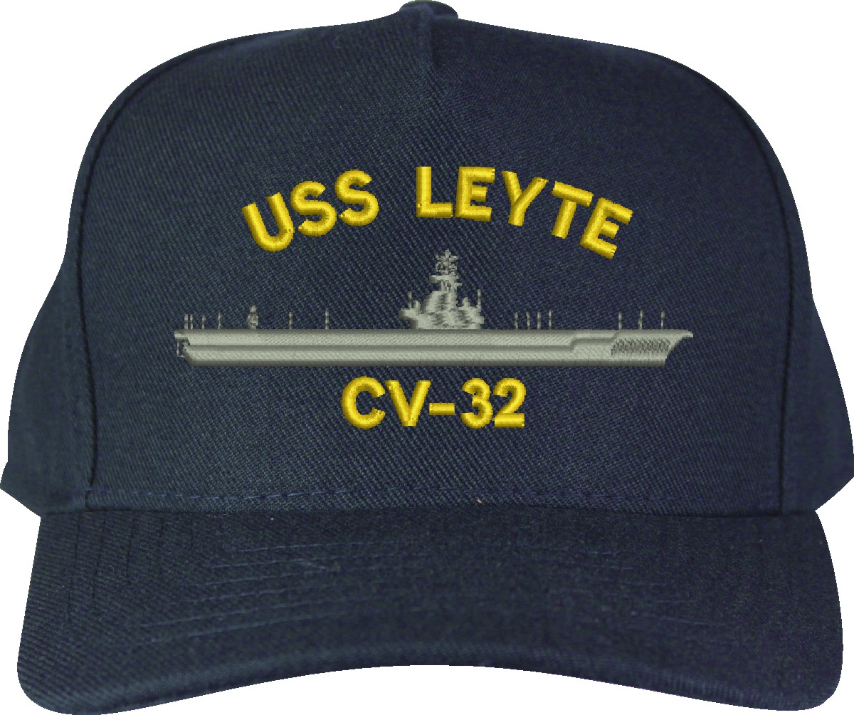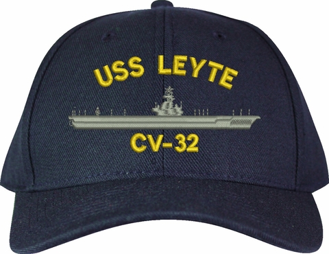MilitaryBest is proud to offer this USS Leyte CV-32 Made in the USA Ball Cap. This Cap honors the service of our U.S. Navy personel who have served aboard this ship protecting our freedom with pride. Choose from Navy Blue or Black in High or Low Profile. These are perfect for honoring your USS Leyte Navy Veteran. For an additional cost you can also have your Custom Text embroidered on the back of the ball cap. Embroidery on these Made in the USA caps is performed to order at our facilities in Scottsboro, Alabama by Americans with a passion for patriotism!
