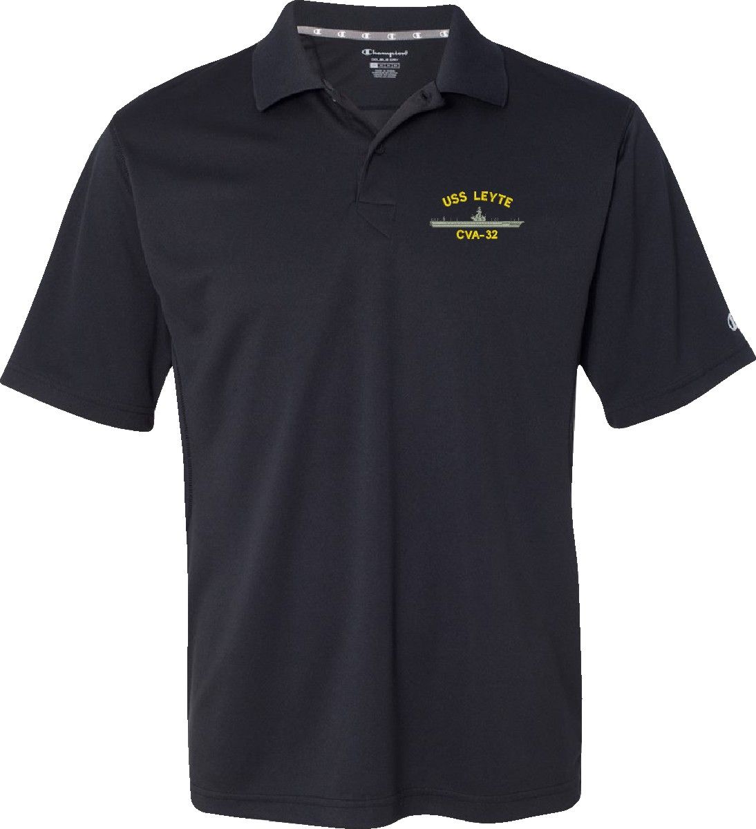 MilitaryBest is proud to offer this USS Leyte CVA-32 Moisture Wicking Polo. This Golf style shirt honors the service of our U.S. Navy personel who have served aboard this ship protecting our freedom with pride. Choose from an assortment of colors in sizes Small through 2XL. These are perfect for honoring your USS Leyte Navy Veteran. For an additional cost you can also have your Rank & Rate embroidered on the left sleeve of the polo shirt. All embroidery is performed to order at our facilities in Scottsboro, Alabama by Americans with a passion for patriotism!