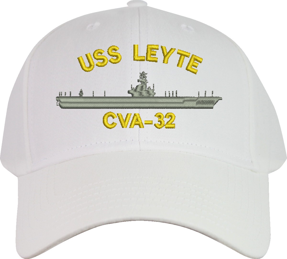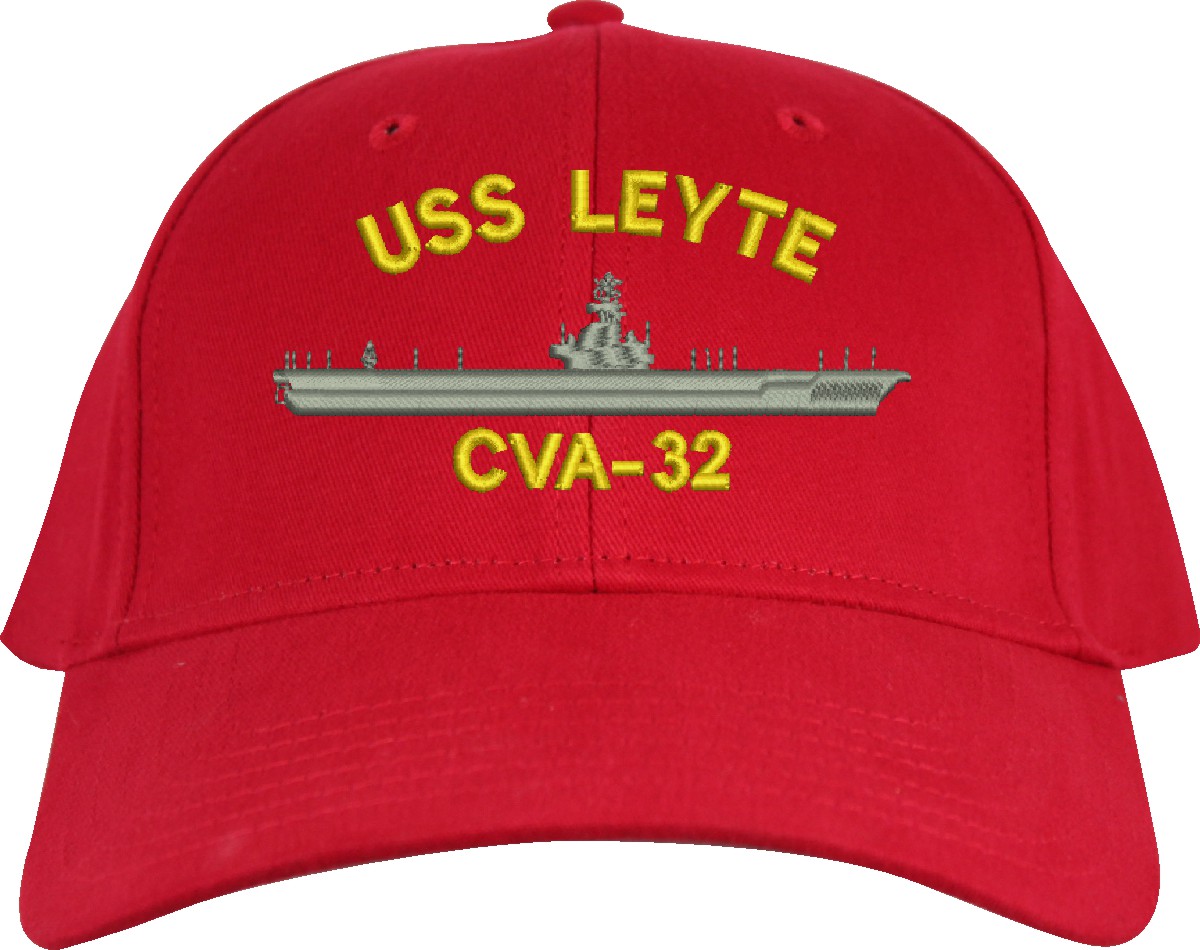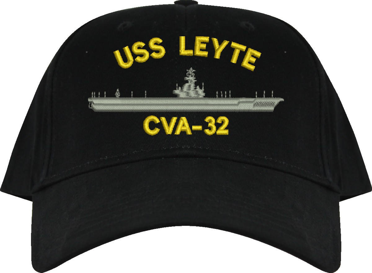 All Text on custom orders will be embroidered in ALL CAPITAL LETTERS.MilitaryBest is proud to offer this USS Leyte CVA-32 Imported Cap. This Cap honors the service of our U.S. Navy personel who have served aboard this ship protecting our freedom with pride. Choose from an assortment of colors in High or Low Profile. These are perfect for honoring your USS Leyte Navy Veteran. For an additional cost you can also have your Custom Text embroidered on the back of the ball cap. All embroidery is performed to order at our facilities in Scottsboro, Alabama by Americans with a passion for patriotism!