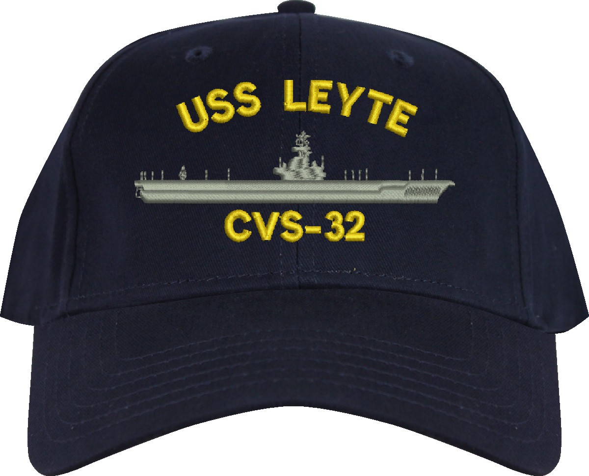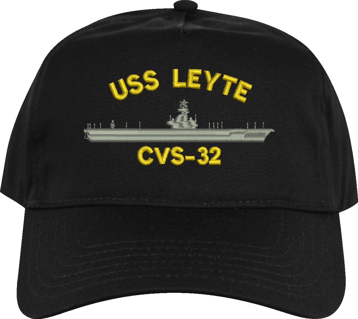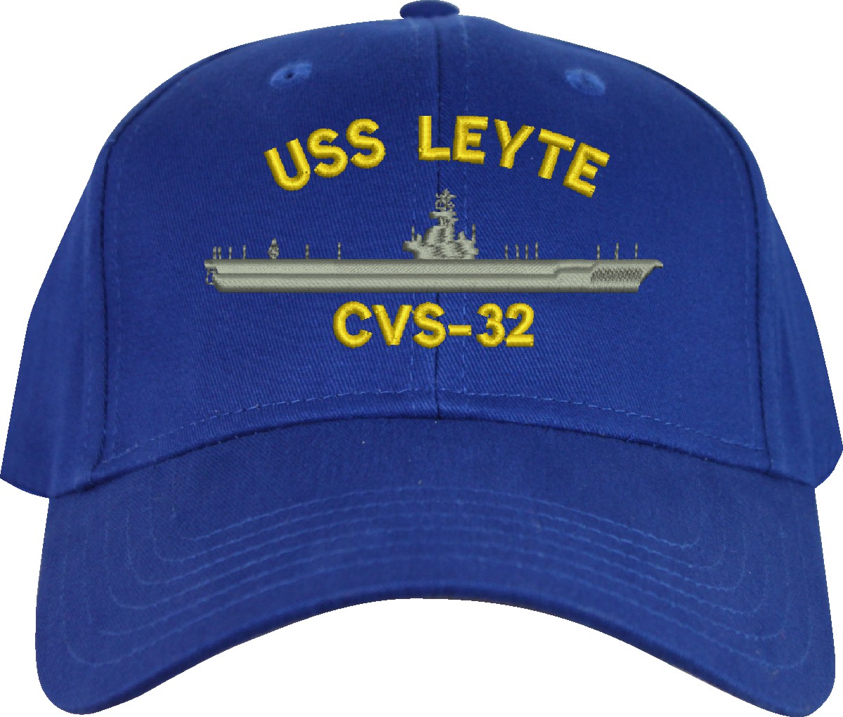 All Text on custom orders will be embroidered in ALL CAPITAL LETTERS.MilitaryBest is proud to offer this USS Leyte CVS-32 Imported Cap. This Cap honors the service of our U.S. Navy personel who have served aboard this ship protecting our freedom with pride. Choose from an assortment of colors in High or Low Profile. These are perfect for honoring your USS Leyte Navy Veteran. For an additional cost you can also have your Custom Text embroidered on the back of the ball cap. All embroidery is performed to order at our facilities in Scottsboro, Alabama by Americans with a passion for patriotism!