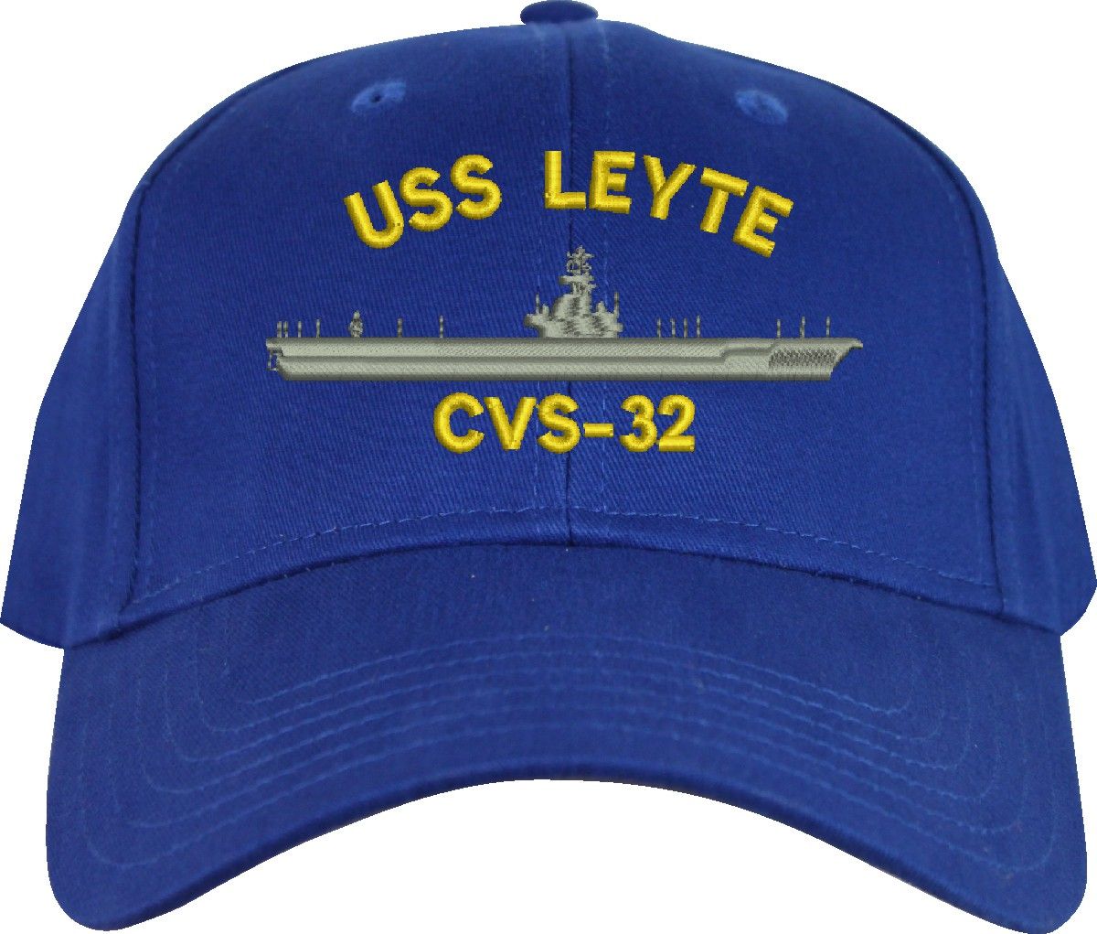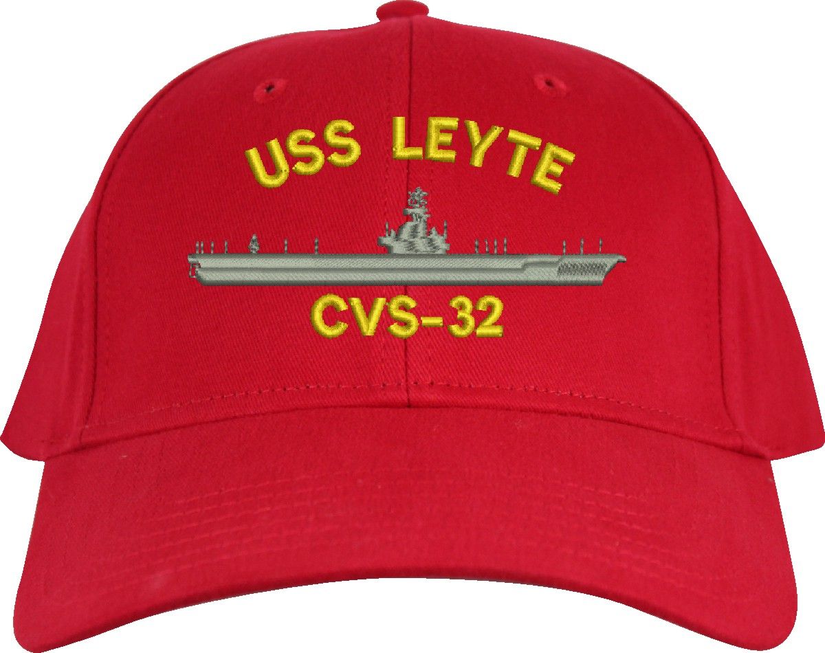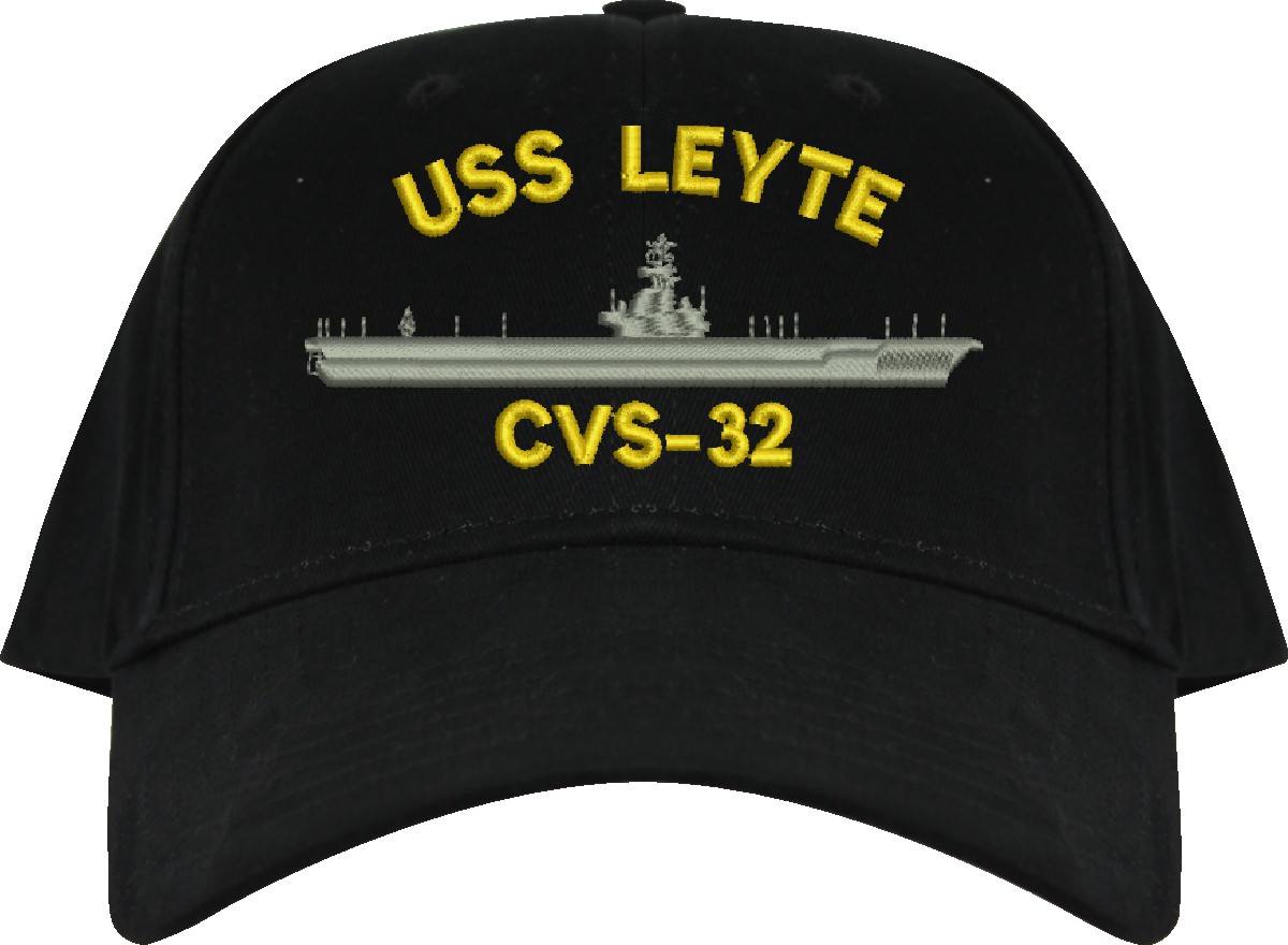 All Text on custom orders will be embroidered in ALL CAPITAL LETTERS.MilitaryBest is proud to offer this USS Leyte CVS-32 Imported Cap. This Cap honors the service of our U.S. Navy personel who have served aboard this ship protecting our freedom with pride. Choose from an assortment of colors in High or Low Profile. These are perfect for honoring your USS Leyte Navy Veteran. For an additional cost you can also have your Custom Text embroidered on the back of the ball cap. All embroidery is performed to order at our facilities in Scottsboro, Alabama by Americans with a passion for patriotism!