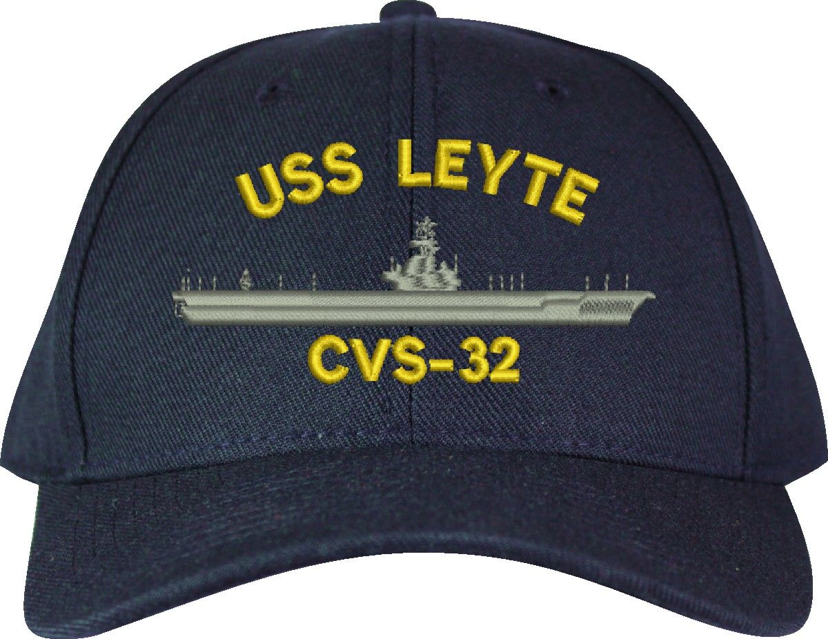 MilitaryBest is proud to offer this USS Leyte CVS-32 Made in the USA Ball Cap. This Cap honors the service of our U.S. Navy personel who have served aboard this ship protecting our freedom with pride. Choose from Navy Blue or Black in High or Low Profile. These are perfect for honoring your USS Leyte Navy Veteran. For an additional cost you can also have your Custom Text embroidered on the back of the ball cap. Embroidery on these Made in the USA caps is performed to order at our facilities in Scottsboro, Alabama by Americans with a passion for patriotism!