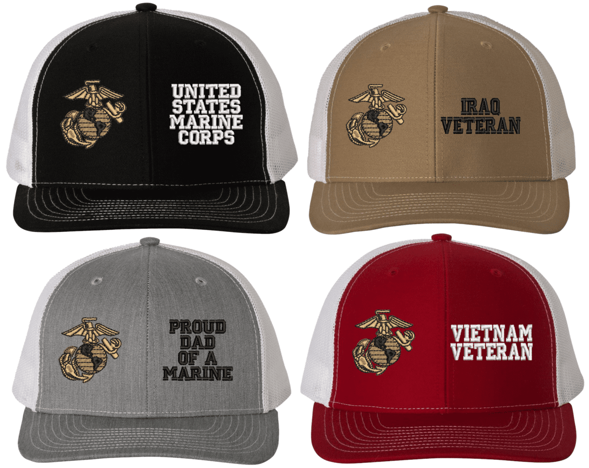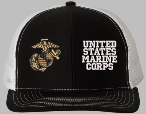 MilitaryBest is proud to offer this Custom U.S. Marine Corps Mesh Back The design of this Cap has an Insignia on the Left side and Text on the Right side, creating this excellent Split Design Cap. This Mesh Back Cap Design is expertly crafted by our skilled embroidery technicians at our facilities in Scottsboro, Alabama. As with all MilitaryBest items, your satisfaction is guaranteed!For caps ordered with custom embroidered personalized text please allow an additional 3 to 5 days production time. All custom back text will be embroidered in ALL CAPITAL LETTERS. Caps with back text or eggs are non-returnable unless there is a material defect in the cap.