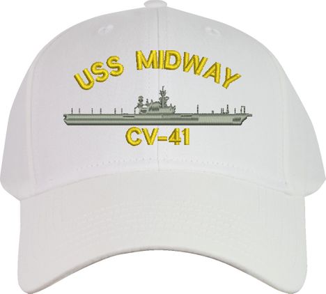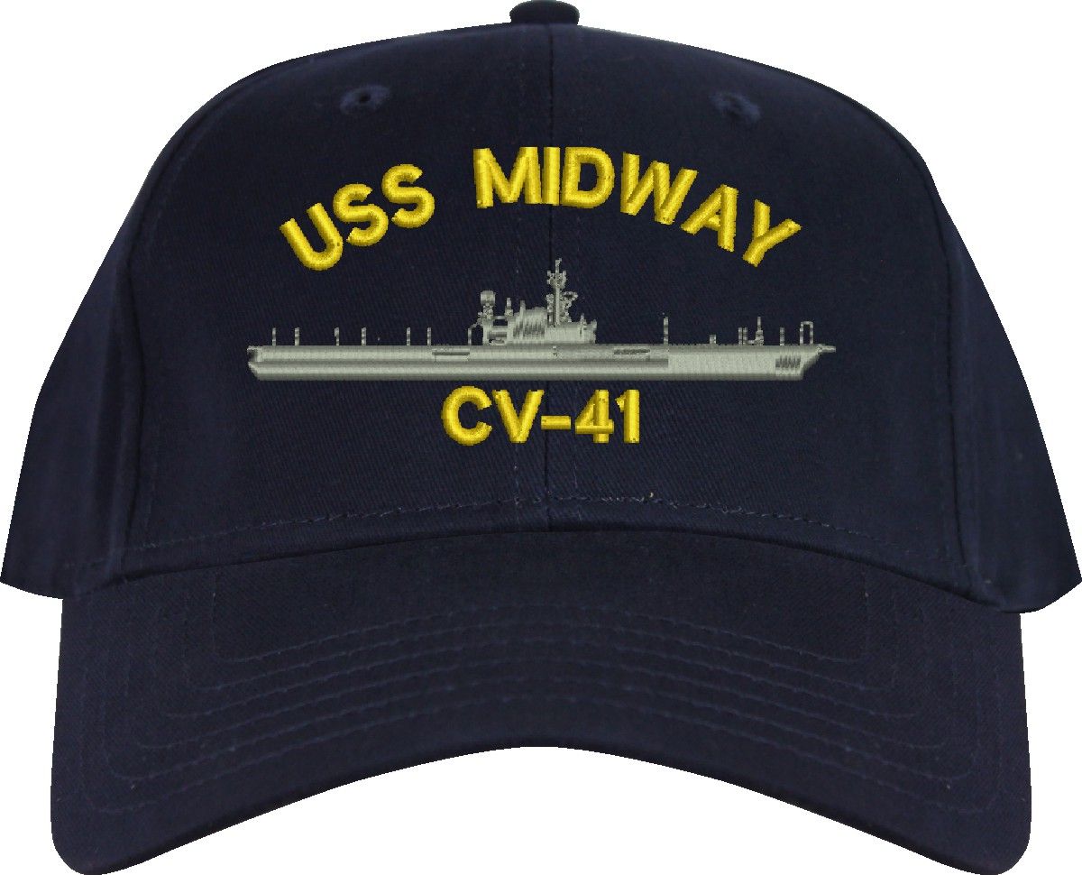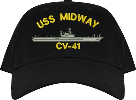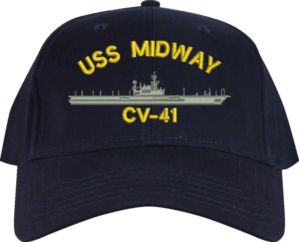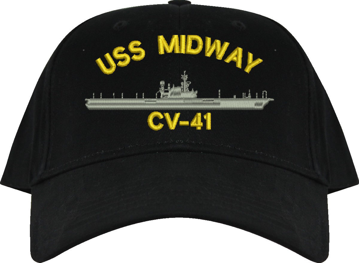 All Text on custom orders will be embroidered in ALL CAPITAL LETTERS.MilitaryBest is proud to offer this USS Midway CV-41 Imported Cap. This Cap honors the service of our U.S. Navy personel who have served aboard this ship protecting our freedom with pride. Choose from an assortment of colors in High or Low Profile. These are perfect for honoring your USS Midway Navy Veteran. For an additional cost you can also have your Custom Text embroidered on the back of the ball cap. All embroidery is performed to order at our facilities in Scottsboro, Alabama by Americans with a passion for patriotism!