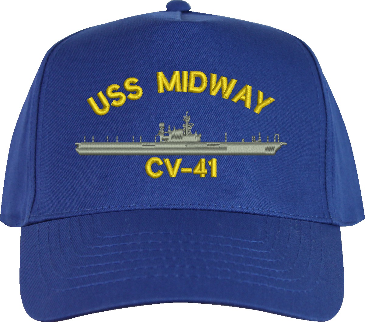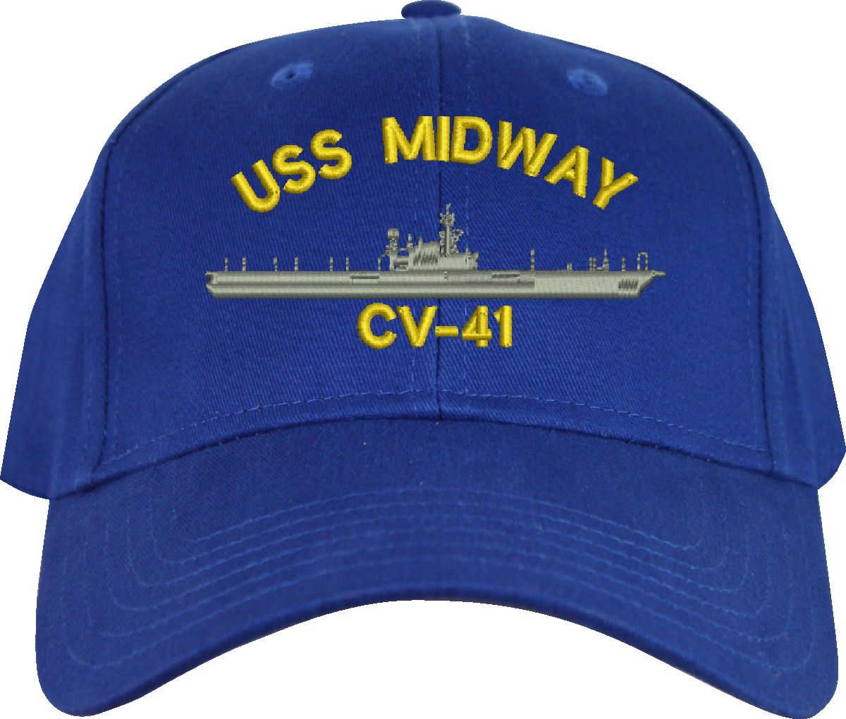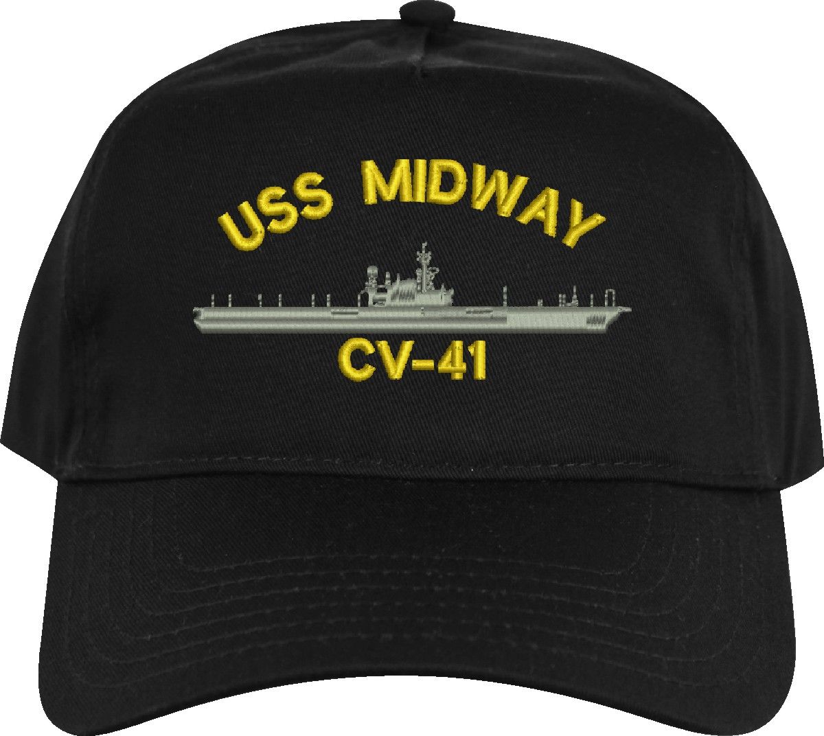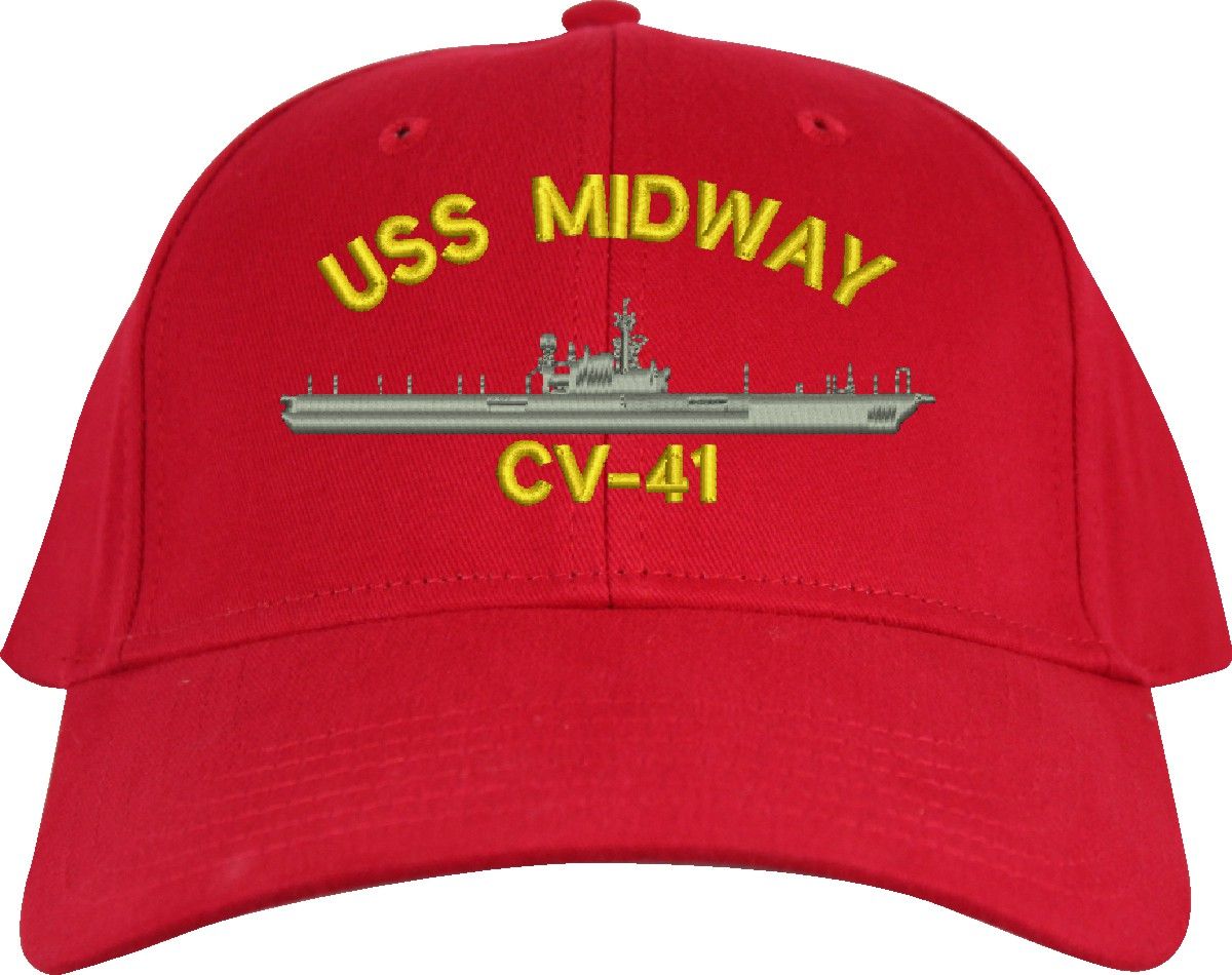 All Text on custom orders will be embroidered in ALL CAPITAL LETTERS.MilitaryBest is proud to offer this USS Midway CV-41 Imported Cap. This Cap honors the service of our U.S. Navy personel who have served aboard this ship protecting our freedom with pride. Choose from an assortment of colors in High or Low Profile. These are perfect for honoring your USS Midway Navy Veteran. For an additional cost you can also have your Custom Text embroidered on the back of the ball cap. All embroidery is performed to order at our facilities in Scottsboro, Alabama by Americans with a passion for patriotism!