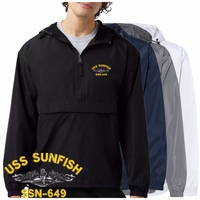 MilitaryBest is proud to offer this quality U.S. Navy Custom Embroidered Hooded Windbreaker. Also known as an Anorak Jacket, this windbreaker is designed to keep wind and water out. With a design embroidered over the left chest, this windbreaker is embroidered to order at our facilities in Scottsboro, AL.. This windbreaker can be packed into the mesh lined pouch pocket for a more portable method of storage.