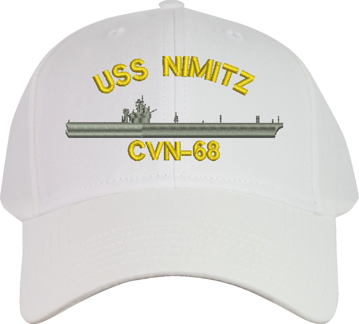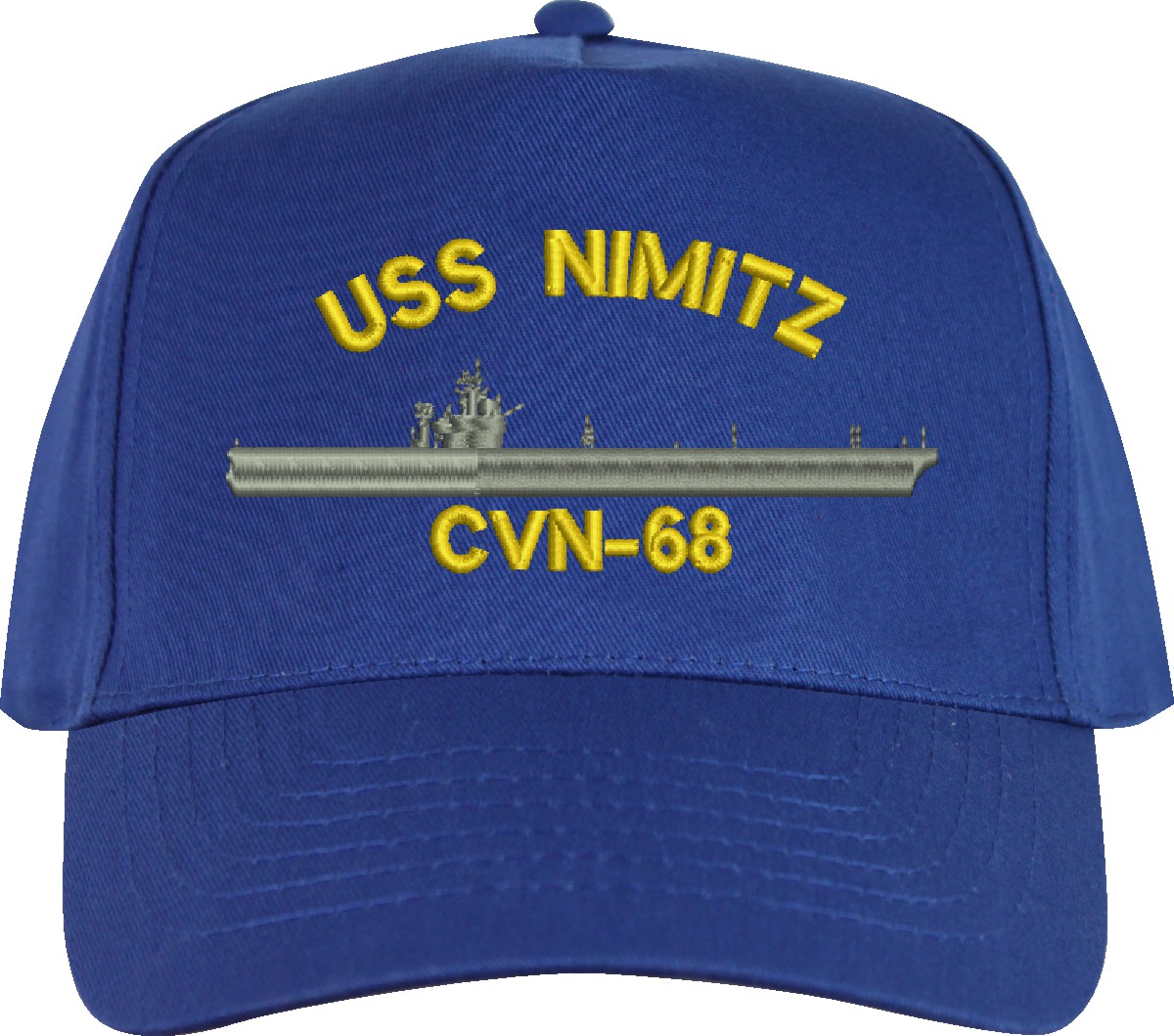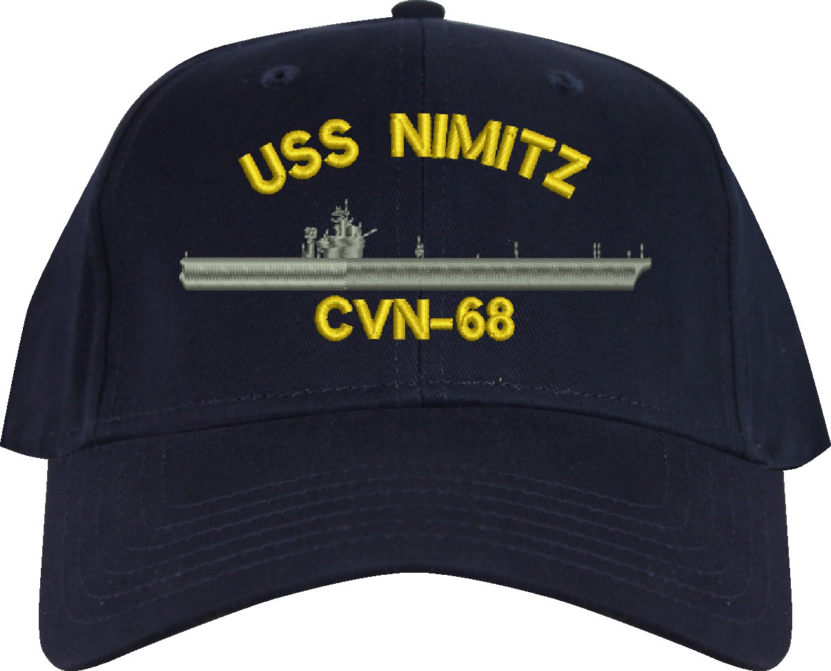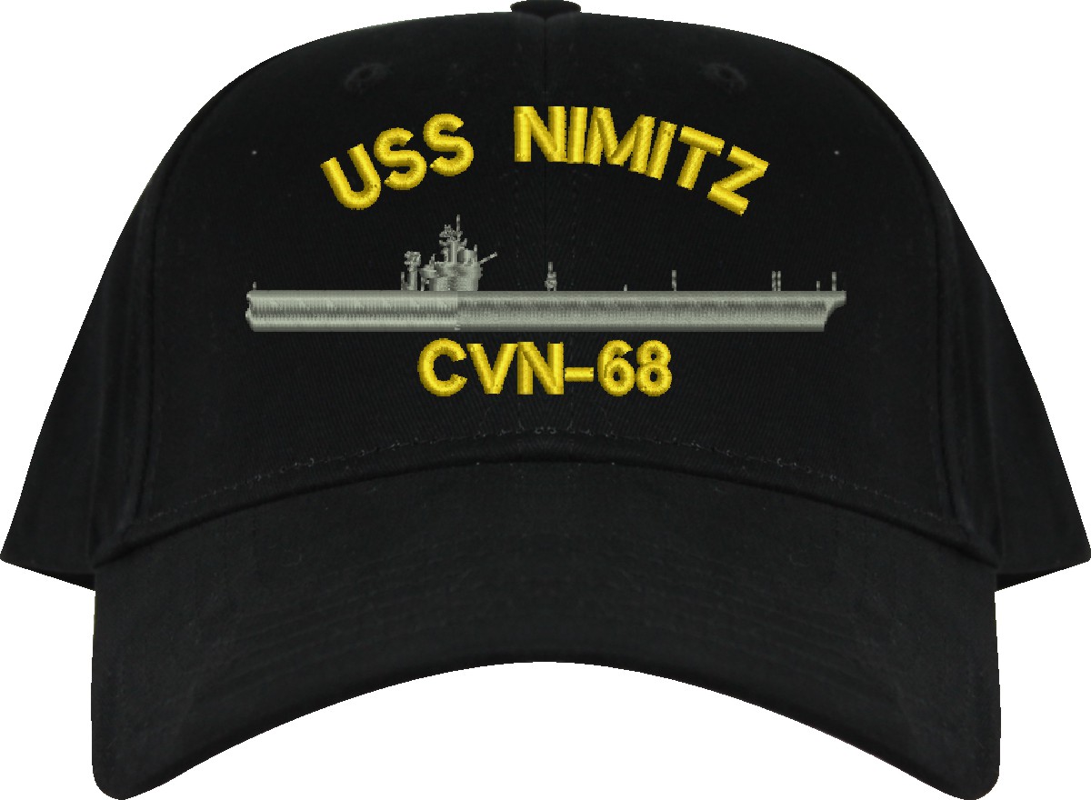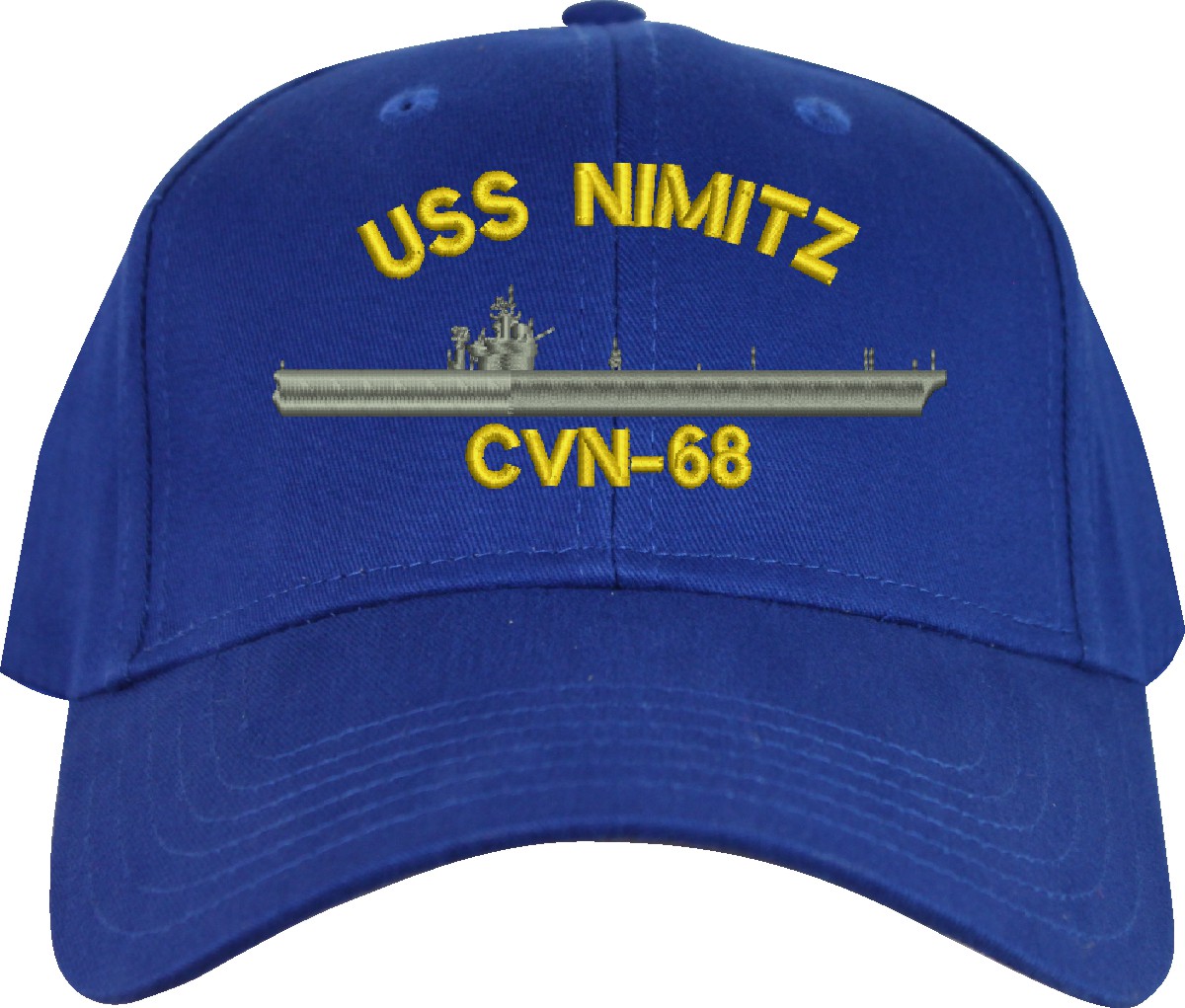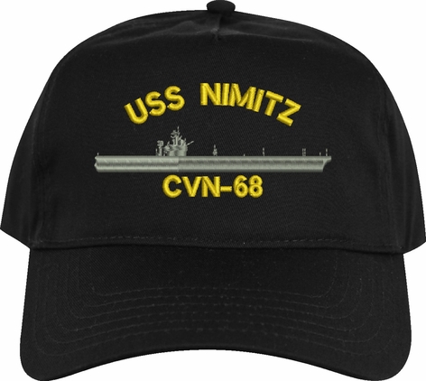 All Text on custom orders will be embroidered in ALL CAPITAL LETTERS.MilitaryBest is proud to offer this USS Nimitz CVN-68 Imported Cap. This Cap honors the service of our U.S. Navy personel who have served aboard this ship protecting our freedom with pride. Choose from an assortment of colors in High or Low Profile. These are perfect for honoring your USS Nimitz Navy Veteran. For an additional cost you can also have your Custom Text embroidered on the back of the ball cap. All embroidery is performed to order at our facilities in Scottsboro, Alabama by Americans with a passion for patriotism!