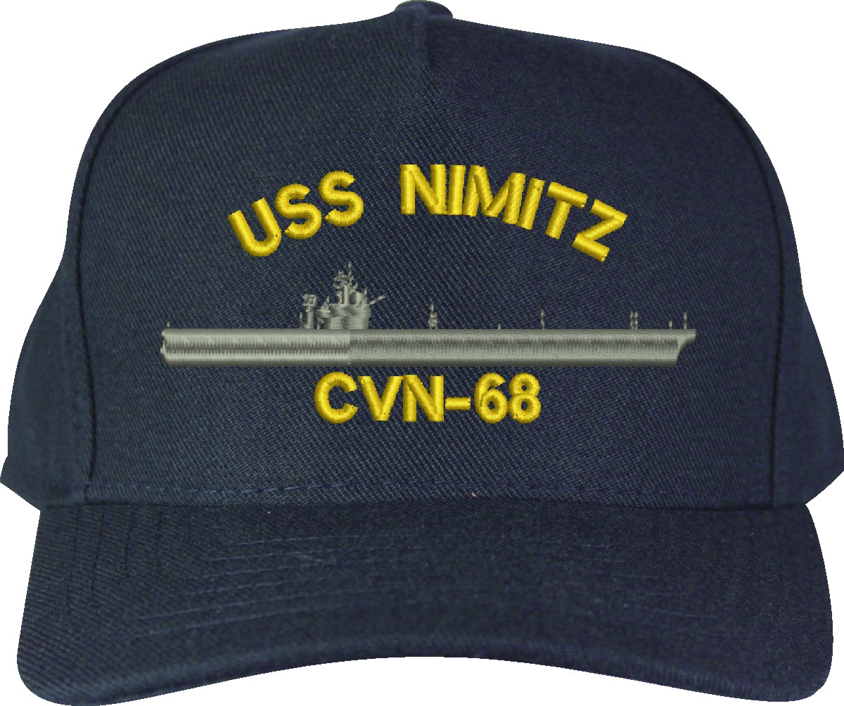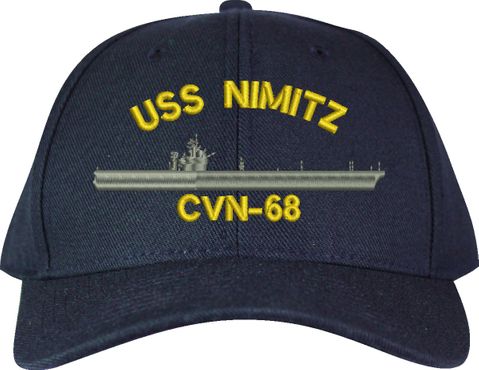 MilitaryBest is proud to offer this USS Nimitz CVN-68 Made in the USA Ball Cap. This Cap honors the service of our U.S. Navy personel who have served aboard this ship protecting our freedom with pride. Choose from Navy Blue or Black in High or Low Profile. These are perfect for honoring your USS Nimitz Navy Veteran. For an additional cost you can also have your Custom Text embroidered on the back of the ball cap. Embroidery on these Made in the USA caps is performed to order at our facilities in Scottsboro, Alabama by Americans with a passion for patriotism!