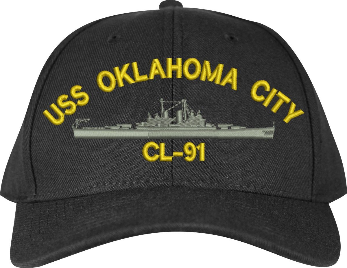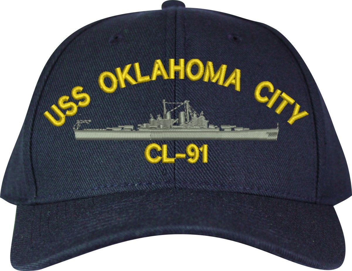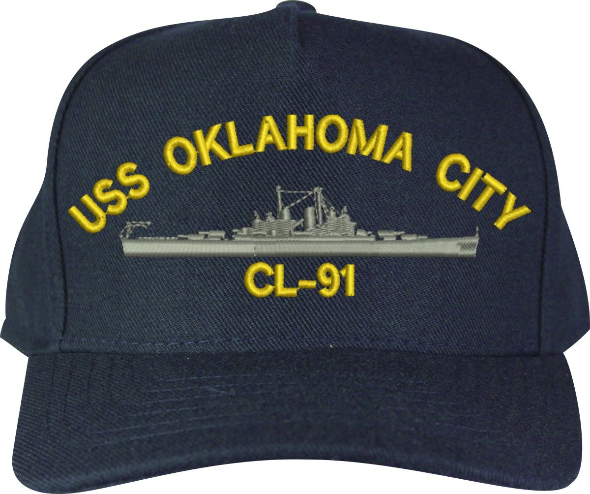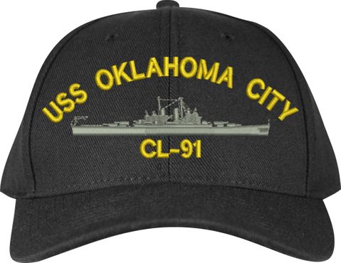 MilitaryBest is proud to offer this USS Oklahoma City CL-91 Made in the USA Ball Cap. This Cap honors the service of our U.S. Navy personel who have served aboard this ship protecting our freedom with pride. Choose from Navy Blue or Black in High or Low Profile. These are perfect for honoring your USS Oklahoma City Navy Veteran. For an additional cost you can also have your Custom Text embroidered on the back of the ball cap. Embroidery on these Made in the USA caps is performed to order at our facilities in Scottsboro, Alabama by Americans with a passion for patriotism!
