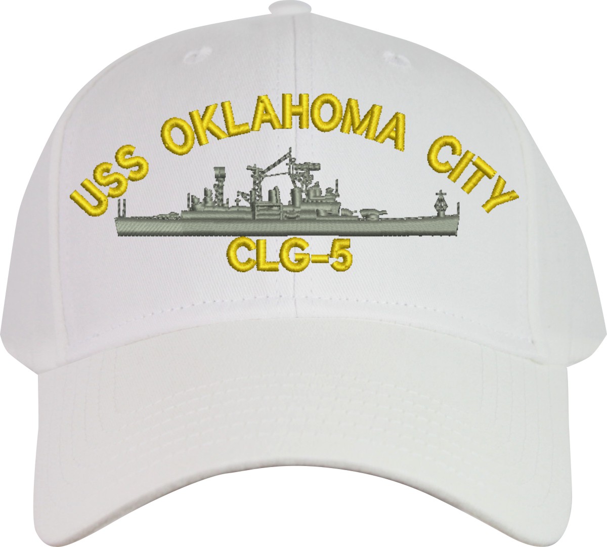All Text on custom orders will be embroidered in ALL CAPITAL LETTERS.MilitaryBest is proud to offer this USS Oklahoma City CLG-5 Imported Cap. This Cap honors the service of our U.S. Navy personel who have served aboard this ship protecting our freedom with pride. Choose from an assortment of colors in High or Low Profile. These are perfect for honoring your USS Oklahoma City Navy Veteran. For an additional cost you can also have your Custom Text embroidered on the back of the ball cap. All embroidery is performed to order at our facilities in Scottsboro, Alabama by Americans with a passion for patriotism!