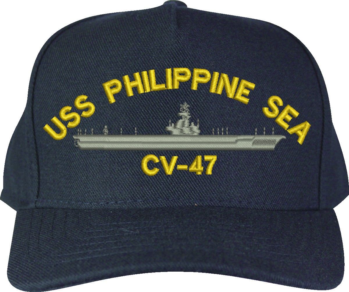 MilitaryBest is proud to offer this USS Philippine Sea CV-47 Made in the USA Ball Cap. This Cap honors the service of our U.S. Navy personel who have served aboard this ship protecting our freedom with pride. Choose from Navy Blue or Black in High or Low Profile. These are perfect for honoring your USS Philippine Sea Navy Veteran. For an additional cost you can also have your Custom Text embroidered on the back of the ball cap. Embroidery on these Made in the USA caps is performed to order at our facilities in Scottsboro, Alabama by Americans with a passion for patriotism!