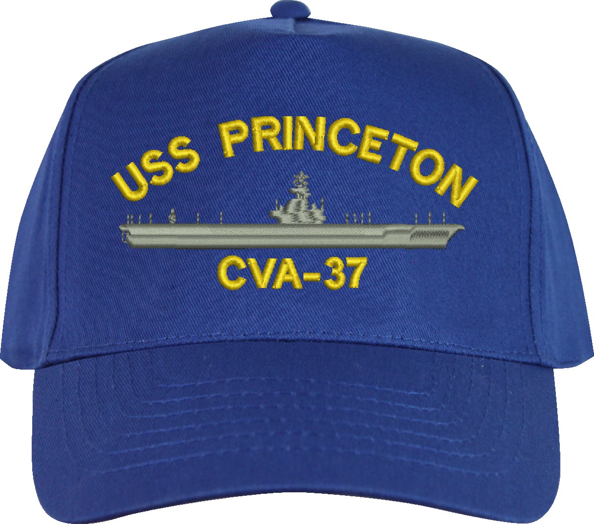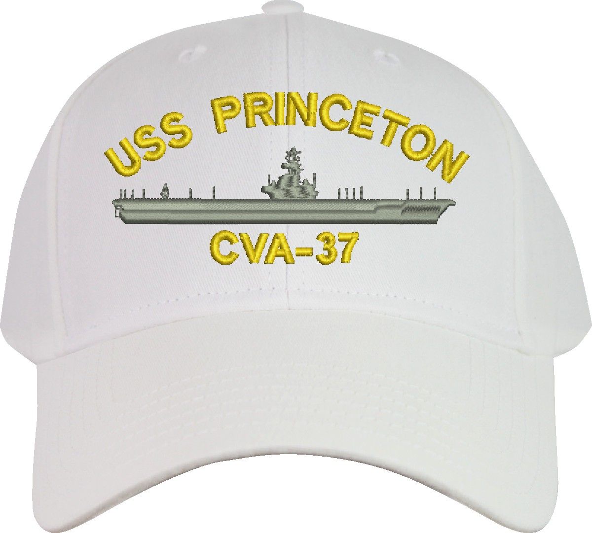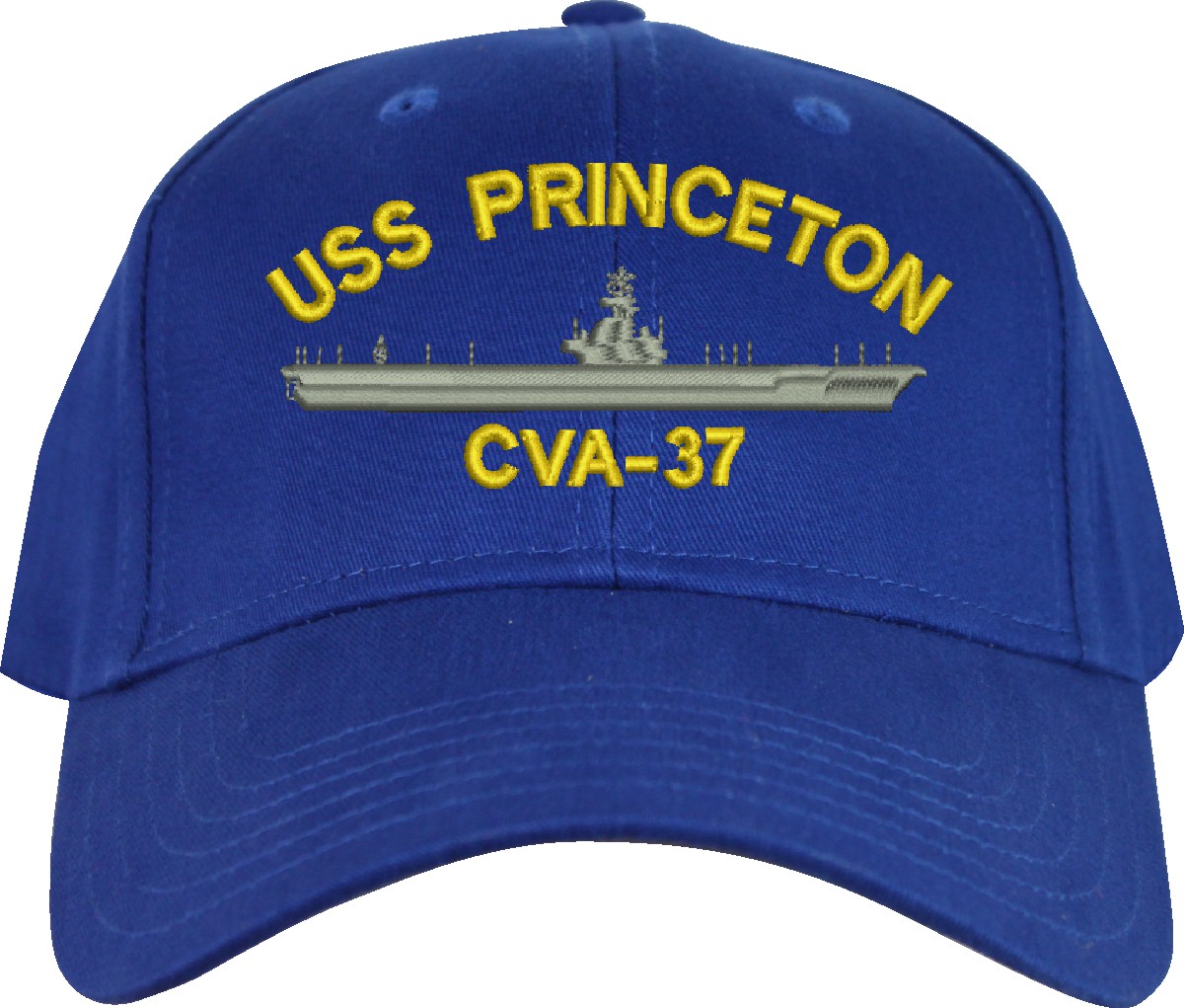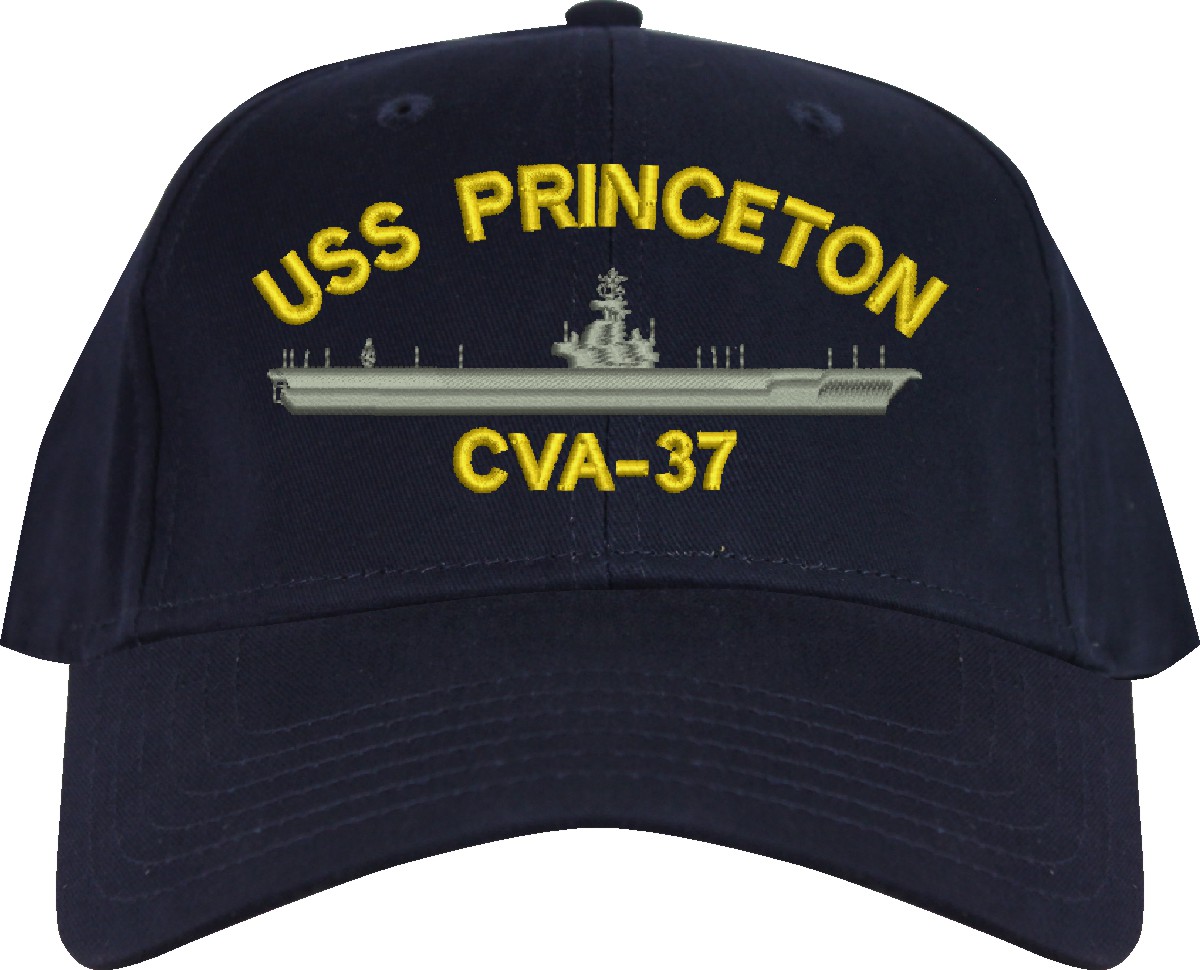All Text on custom orders will be embroidered in ALL CAPITAL LETTERS.MilitaryBest is proud to offer this USS Princeton CVA-37 Imported Cap. This Cap honors the service of our U.S. Navy personel who have served aboard this ship protecting our freedom with pride. Choose from an assortment of colors in High or Low Profile. These are perfect for honoring your USS Princeton Navy Veteran. For an additional cost you can also have your Custom Text embroidered on the back of the ball cap. All embroidery is performed to order at our facilities in Scottsboro, Alabama by Americans with a passion for patriotism!