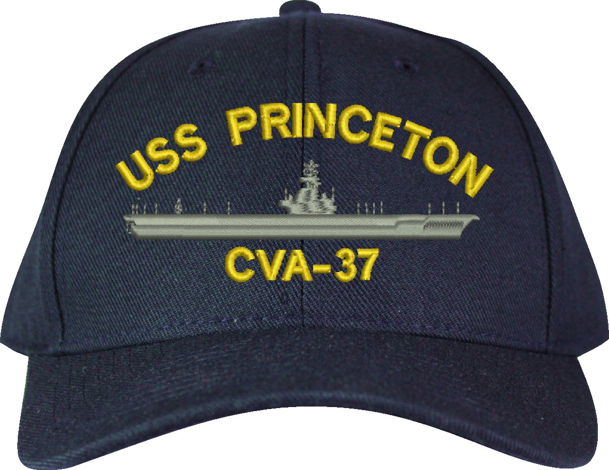 MilitaryBest is proud to offer this USS Princeton CVA-37 Made in the USA Ball Cap. This Cap honors the service of our U.S. Navy personel who have served aboard this ship protecting our freedom with pride. Choose from Navy Blue or Black in High or Low Profile. These are perfect for honoring your USS Princeton Navy Veteran. For an additional cost you can also have your Custom Text embroidered on the back of the ball cap. Embroidery on these Made in the USA caps is performed to order at our facilities in Scottsboro, Alabama by Americans with a passion for patriotism!