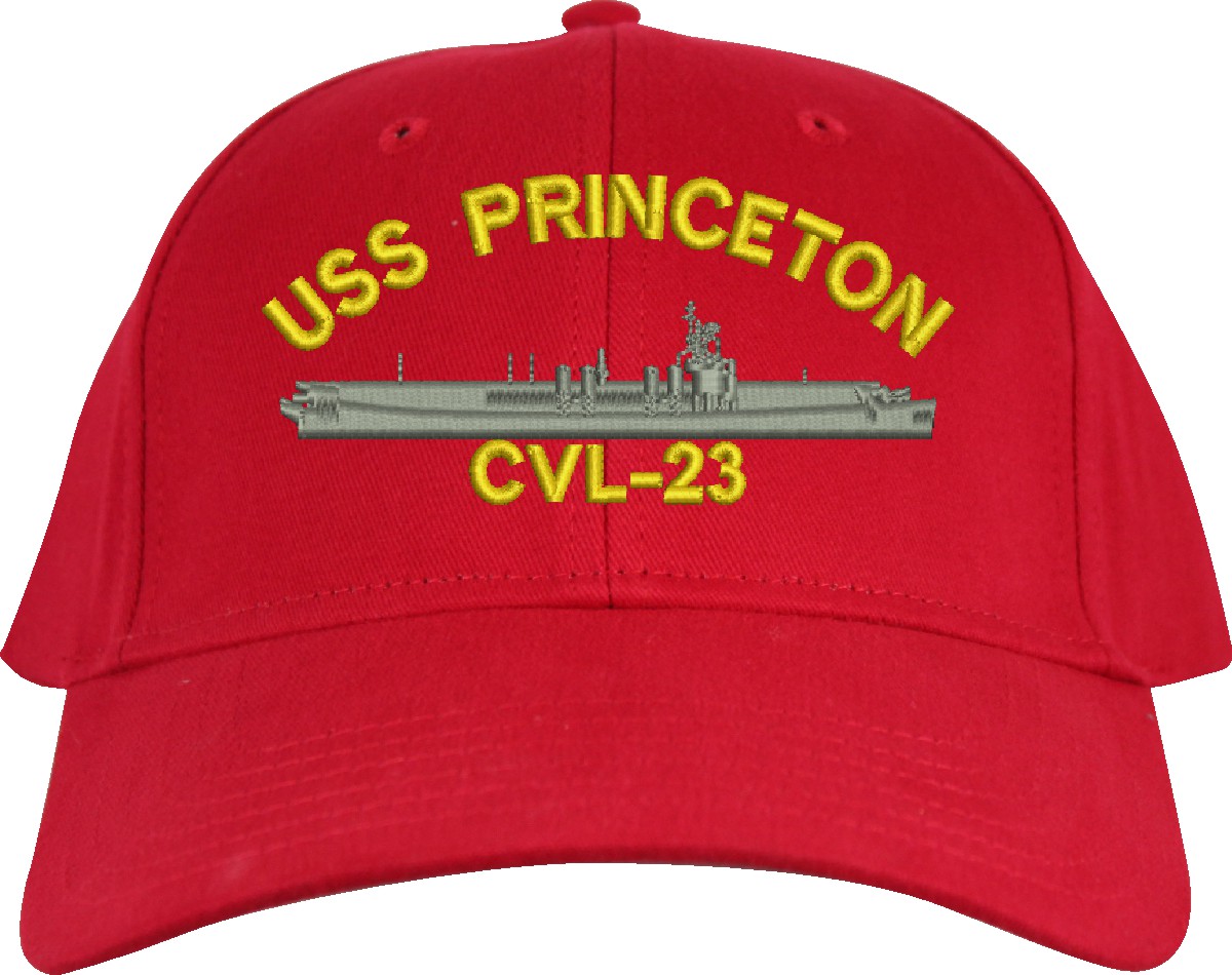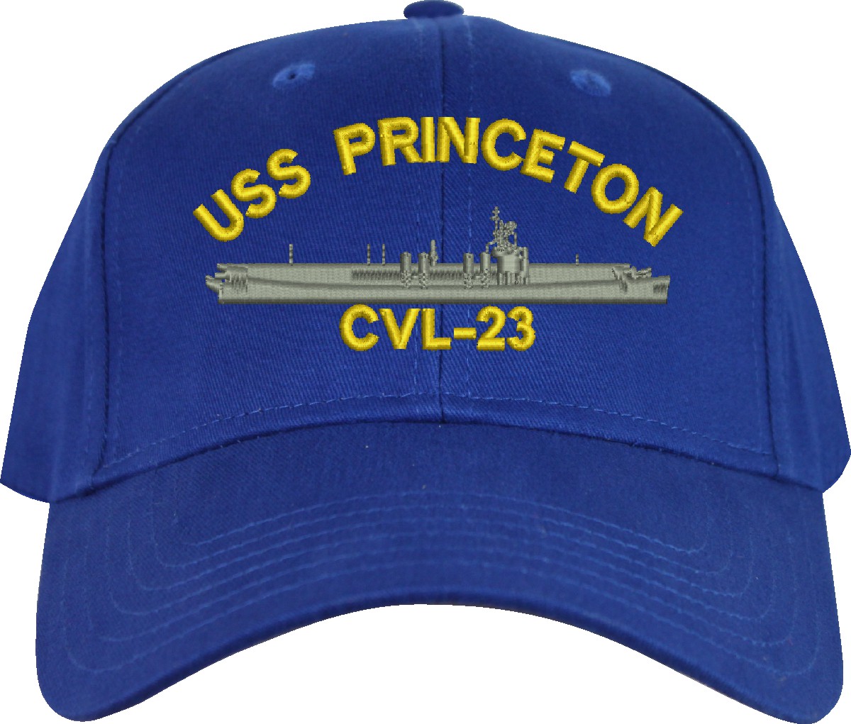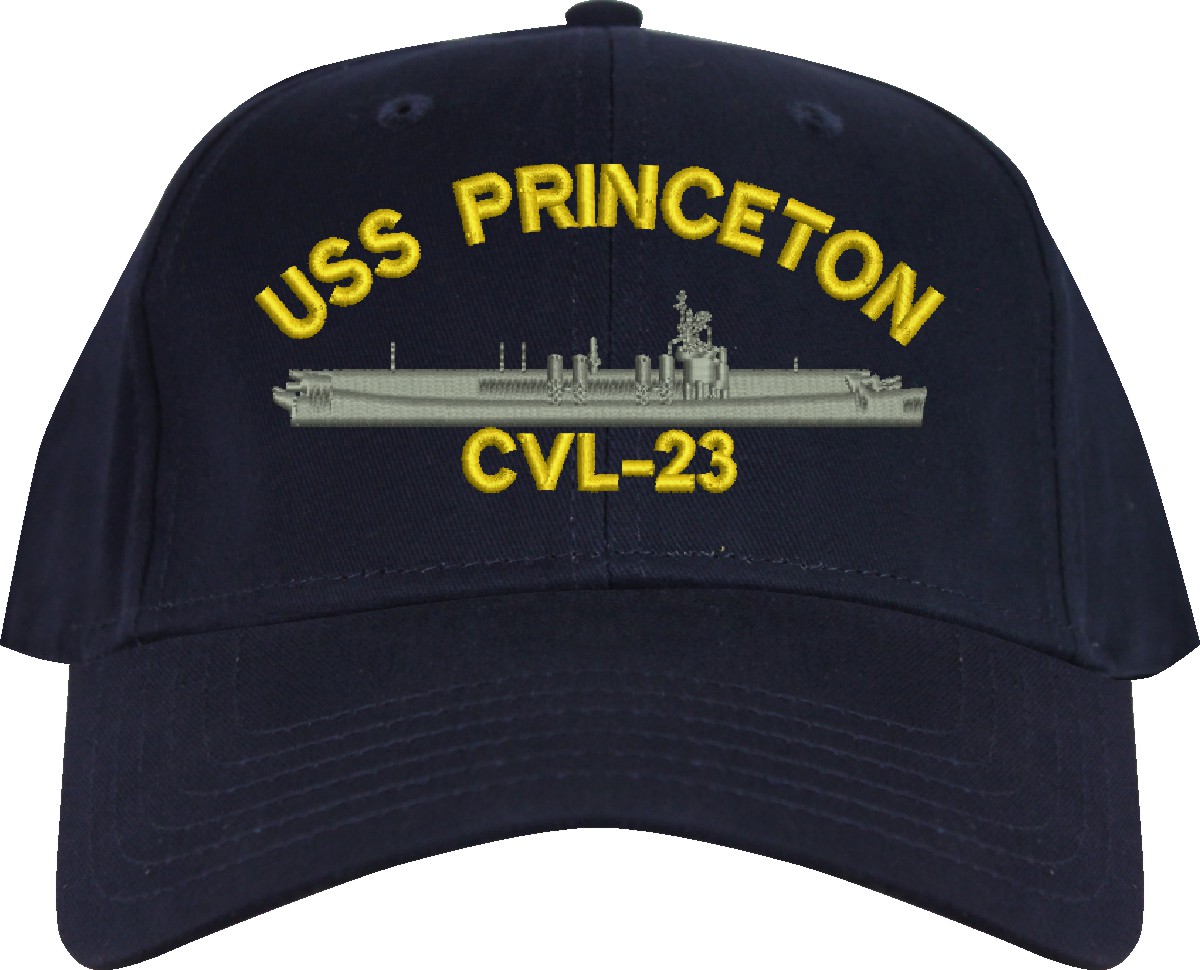 All Text on custom orders will be embroidered in ALL CAPITAL LETTERS.MilitaryBest is proud to offer this USS Princeton CVL-23 Imported Cap. This Cap honors the service of our U.S. Navy personel who have served aboard this ship protecting our freedom with pride. Choose from an assortment of colors in High or Low Profile. These are perfect for honoring your USS Princeton Navy Veteran. For an additional cost you can also have your Custom Text embroidered on the back of the ball cap. All embroidery is performed to order at our facilities in Scottsboro, Alabama by Americans with a passion for patriotism!