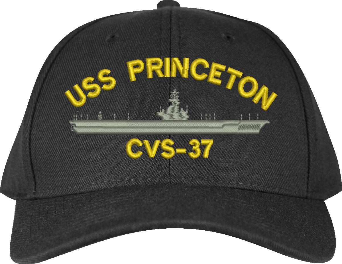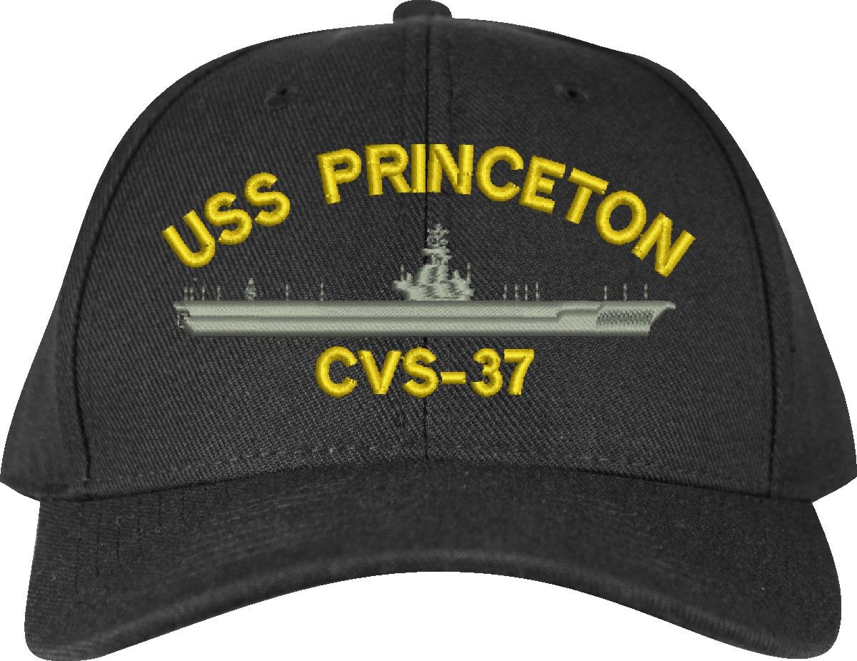 MilitaryBest is proud to offer this USS Princeton CVS-37 Made in the USA Ball Cap. This Cap honors the service of our U.S. Navy personel who have served aboard this ship protecting our freedom with pride. Choose from Navy Blue or Black in High or Low Profile. These are perfect for honoring your USS Princeton Navy Veteran. For an additional cost you can also have your Custom Text embroidered on the back of the ball cap. Embroidery on these Made in the USA caps is performed to order at our facilities in Scottsboro, Alabama by Americans with a passion for patriotism!