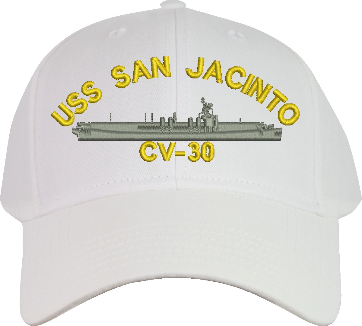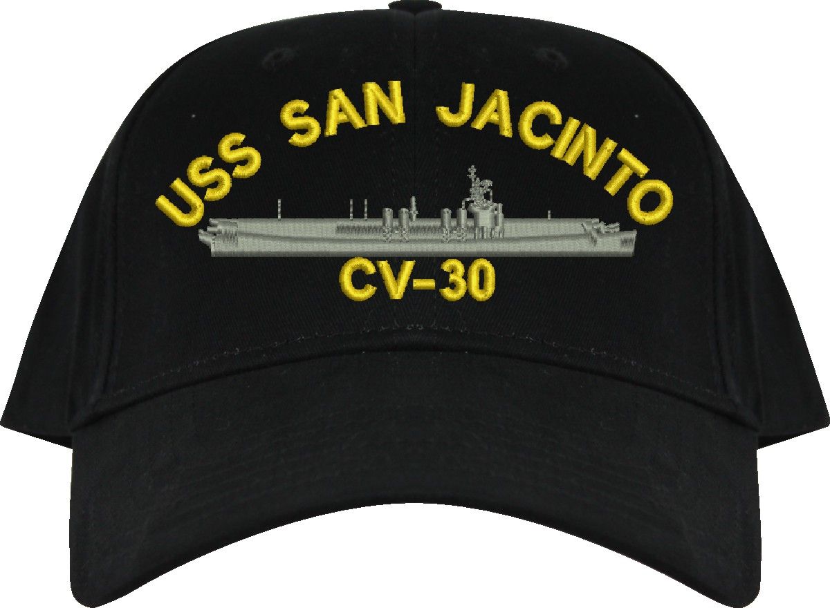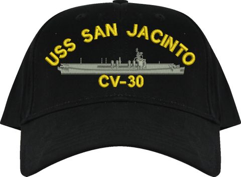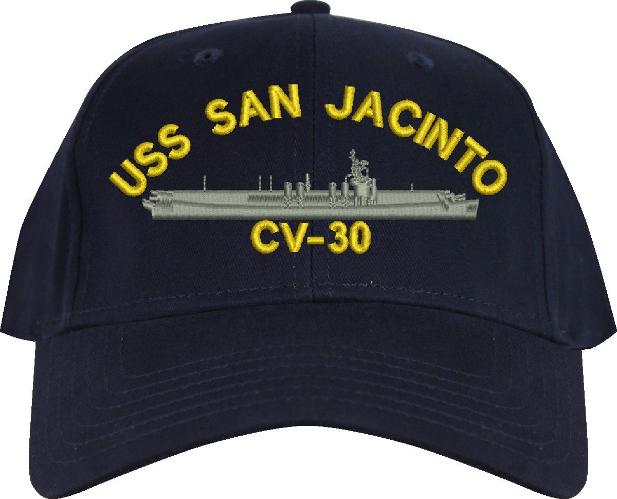 All Text on custom orders will be embroidered in ALL CAPITAL LETTERS.MilitaryBest is proud to offer this USS San Jacinto CV-30 Imported Cap. This Cap honors the service of our U.S. Navy personel who have served aboard this ship protecting our freedom with pride. Choose from an assortment of colors in High or Low Profile. These are perfect for honoring your USS San Jacinto Navy Veteran. For an additional cost you can also have your Custom Text embroidered on the back of the ball cap. All embroidery is performed to order at our facilities in Scottsboro, Alabama by Americans with a passion for patriotism!