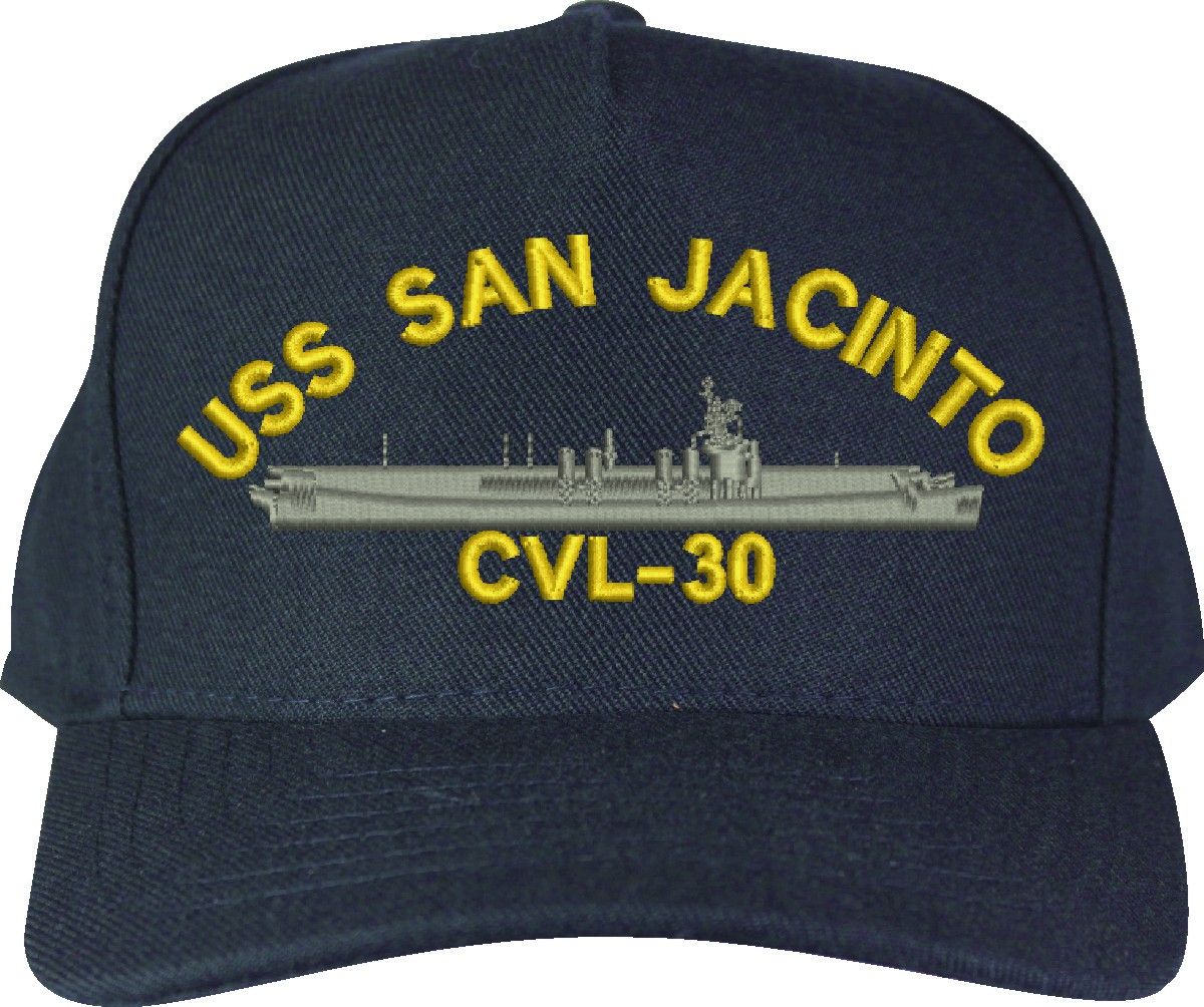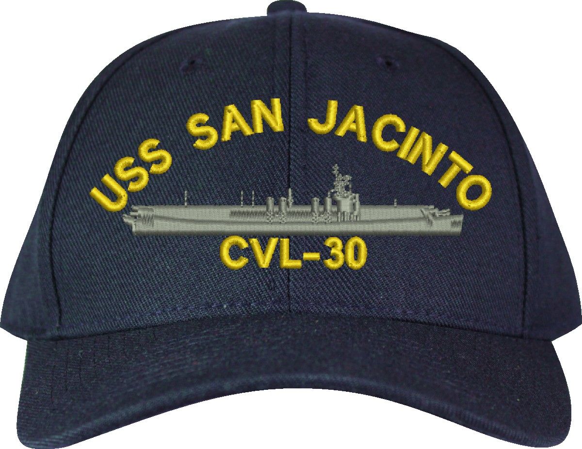 MilitaryBest is proud to offer this USS San Jacinto CVL-30 Made in the USA Ball Cap. This Cap honors the service of our U.S. Navy personel who have served aboard this ship protecting our freedom with pride. Choose from Navy Blue or Black in High or Low Profile. These are perfect for honoring your USS San Jacinto Navy Veteran. For an additional cost you can also have your Custom Text embroidered on the back of the ball cap. Embroidery on these Made in the USA caps is performed to order at our facilities in Scottsboro, Alabama by Americans with a passion for patriotism!
