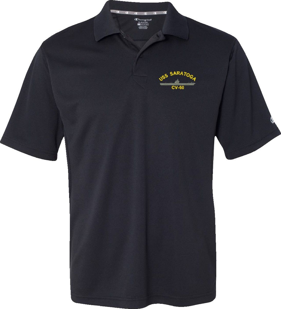 MilitaryBest is proud to offer this USS Saratoga CV-60 Moisture Wicking Polo. This Golf style shirt honors the service of our U.S. Navy personel who have served aboard this ship protecting our freedom with pride. Choose from an assortment of colors in sizes Small through 2XL. These are perfect for honoring your USS Saratoga Navy Veteran. For an additional cost you can also have your Rank & Rate embroidered on the left sleeve of the polo shirt. All embroidery is performed to order at our facilities in Scottsboro, Alabama by Americans with a passion for patriotism!