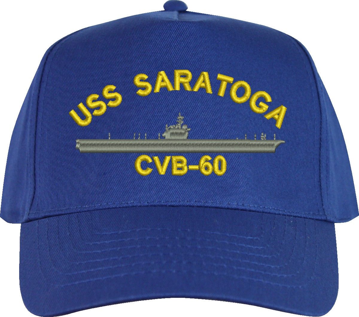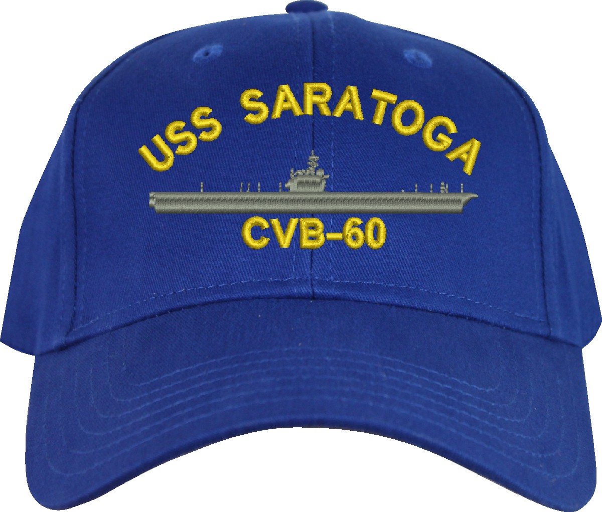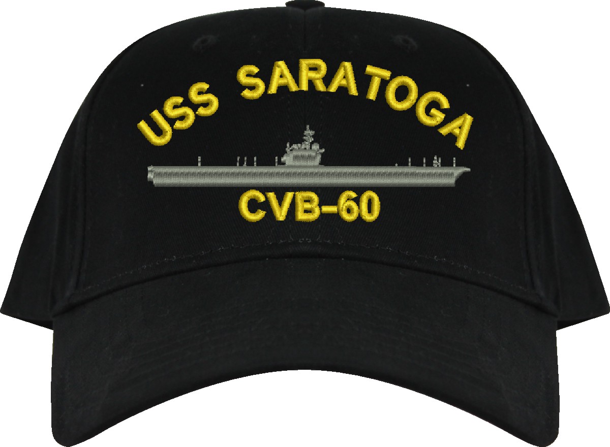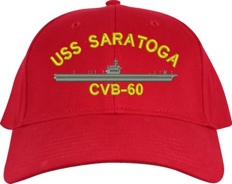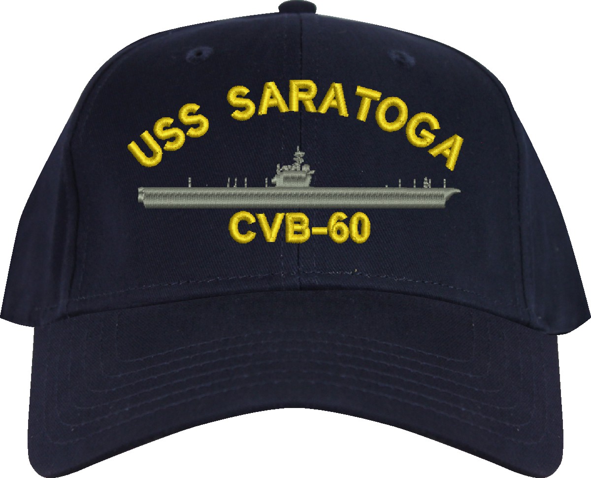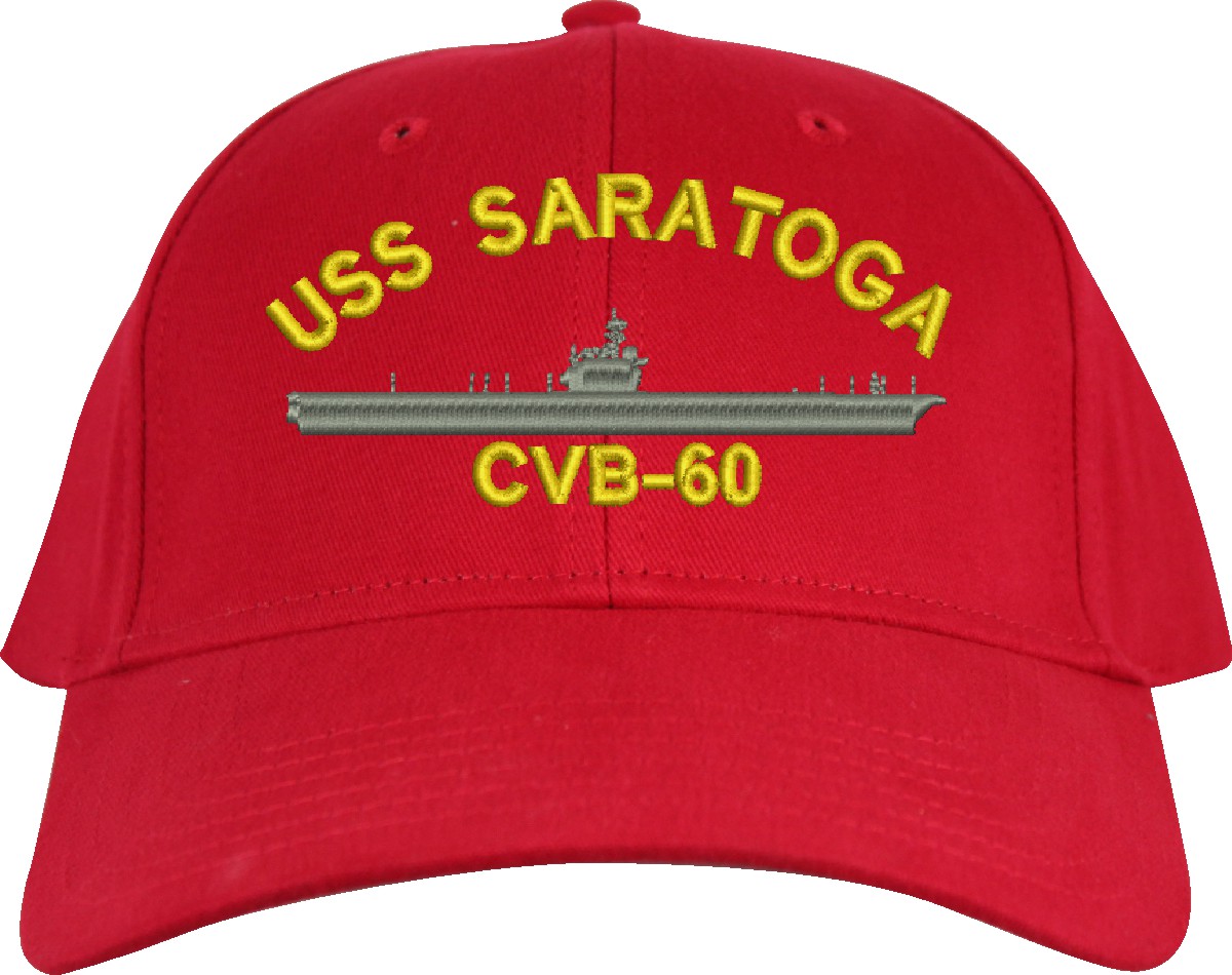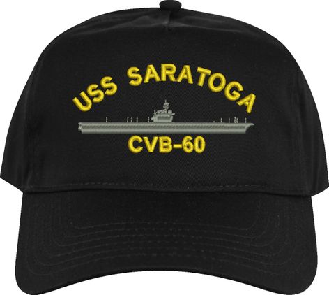 All Text on custom orders will be embroidered in ALL CAPITAL LETTERS.MilitaryBest is proud to offer this USS Saratoga CVB-60 Imported Cap. This Cap honors the service of our U.S. Navy personel who have served aboard this ship protecting our freedom with pride. Choose from an assortment of colors in High or Low Profile. These are perfect for honoring your USS Saratoga Navy Veteran. For an additional cost you can also have your Custom Text embroidered on the back of the ball cap. All embroidery is performed to order at our facilities in Scottsboro, Alabama by Americans with a passion for patriotism!