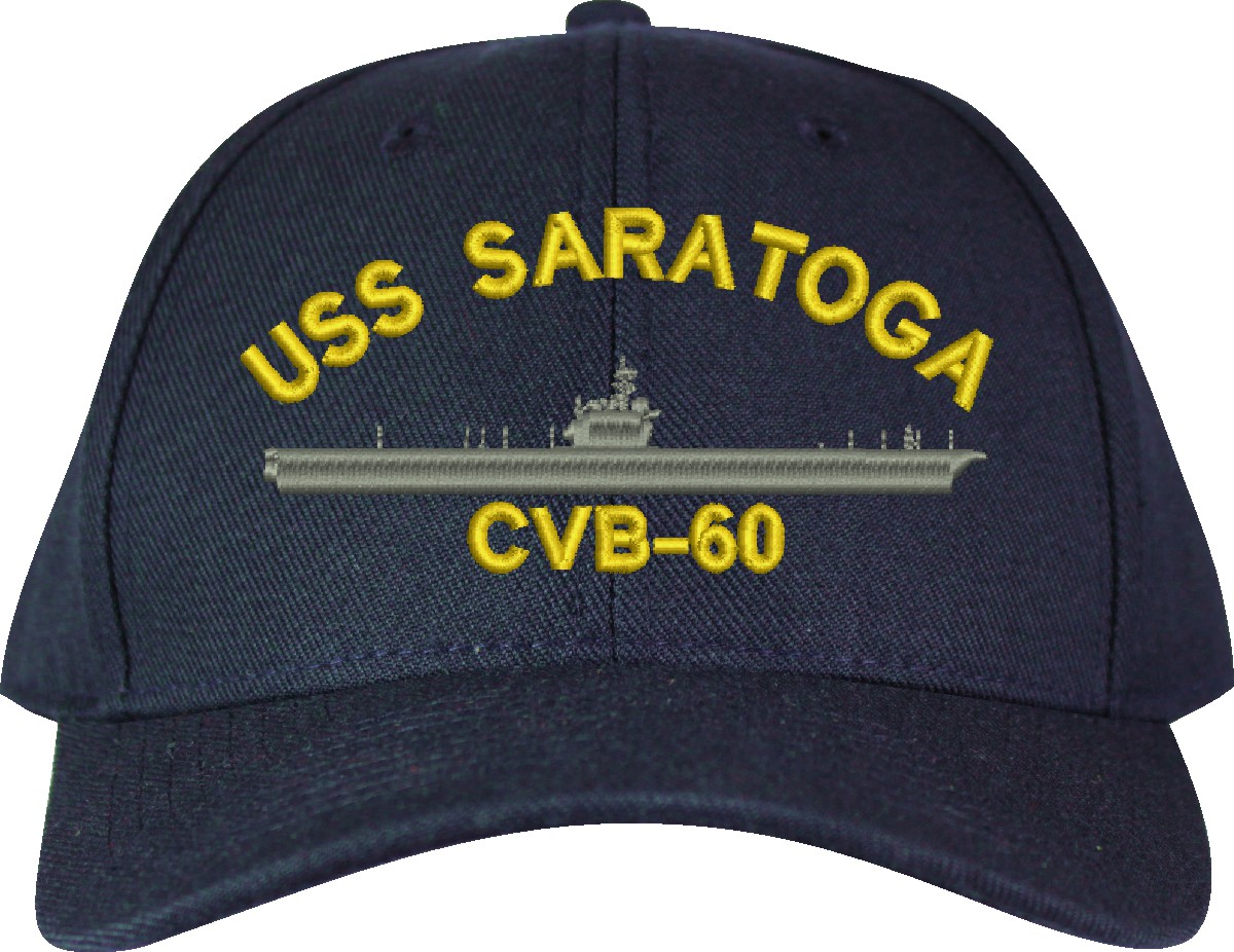 MilitaryBest is proud to offer this USS Saratoga CVB-60 Made in the USA Ball Cap. This Cap honors the service of our U.S. Navy personel who have served aboard this ship protecting our freedom with pride. Choose from Navy Blue or Black in High or Low Profile. These are perfect for honoring your USS Saratoga Navy Veteran. For an additional cost you can also have your Custom Text embroidered on the back of the ball cap. Embroidery on these Made in the USA caps is performed to order at our facilities in Scottsboro, Alabama by Americans with a passion for patriotism!