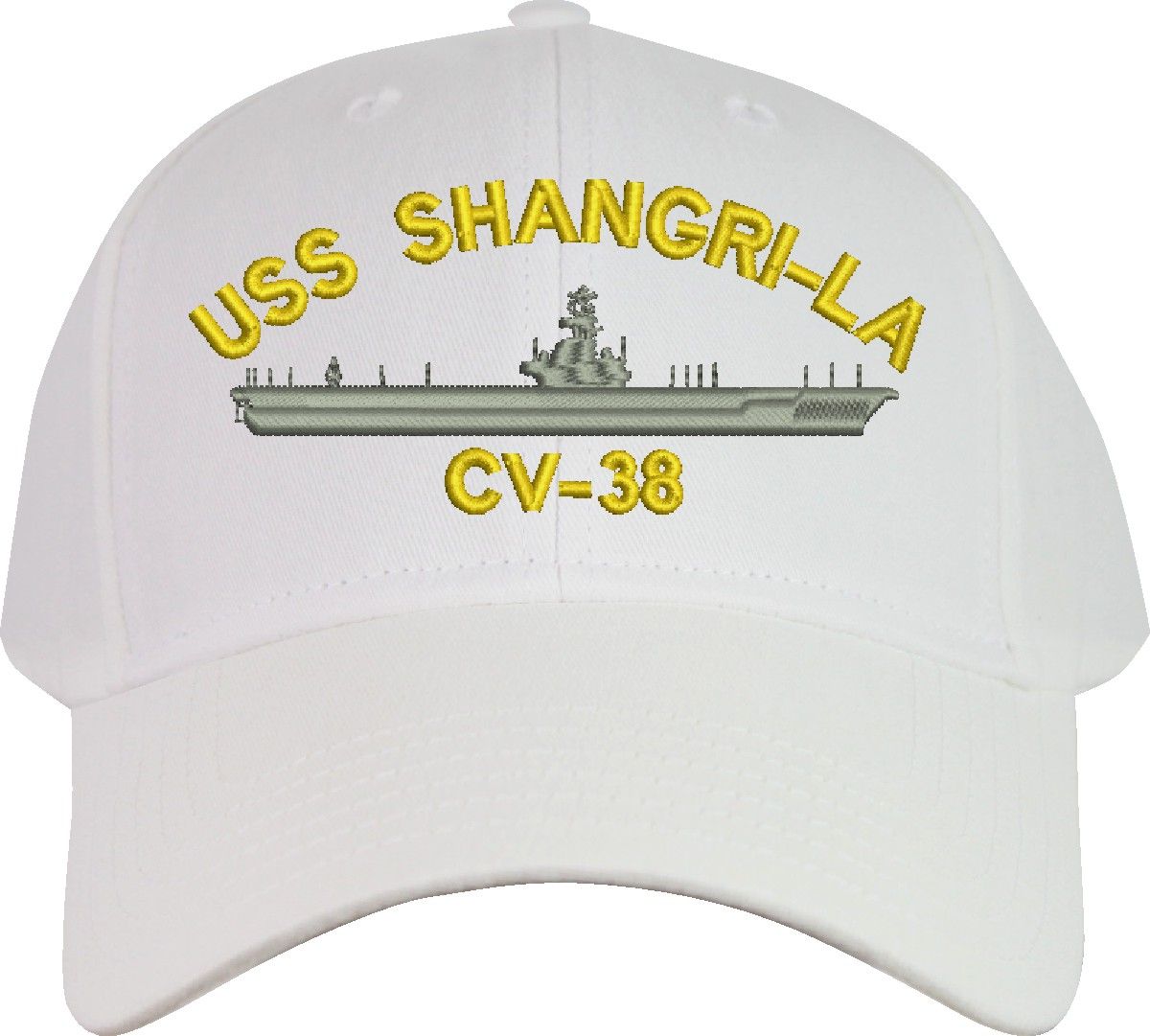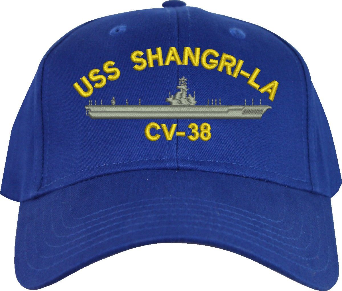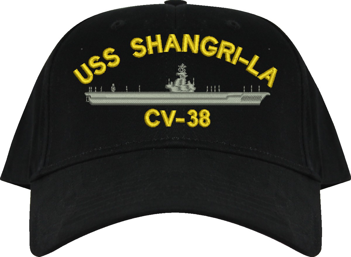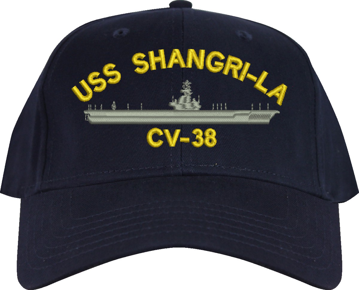 All Text on custom orders will be embroidered in ALL CAPITAL LETTERS.MilitaryBest is proud to offer this USS Shangri La CV-38 Imported Cap. This Cap honors the service of our U.S. Navy personel who have served aboard this ship protecting our freedom with pride. Choose from an assortment of colors in High or Low Profile. These are perfect for honoring your USS Shangri La Navy Veteran. For an additional cost you can also have your Custom Text embroidered on the back of the ball cap. All embroidery is performed to order at our facilities in Scottsboro, Alabama by Americans with a passion for patriotism!