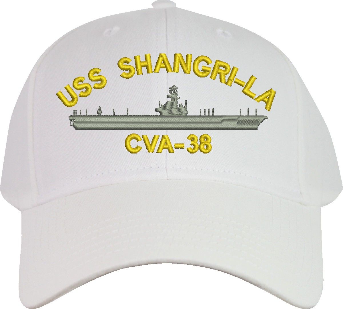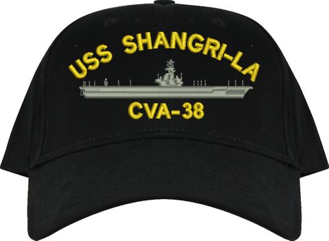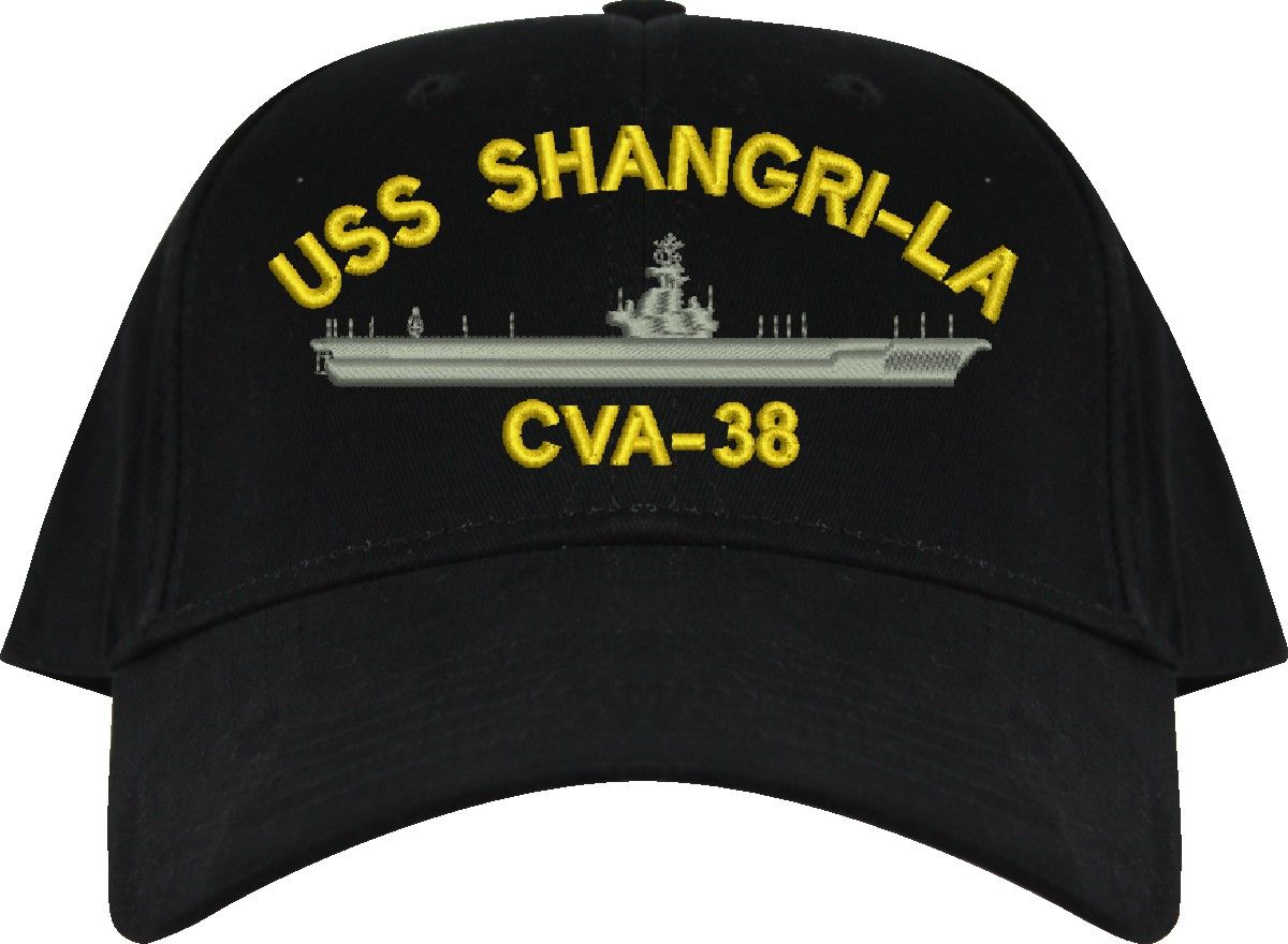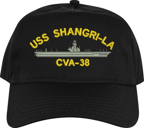 All Text on custom orders will be embroidered in ALL CAPITAL LETTERS.MilitaryBest is proud to offer this USS Shangri La CVA-38 Imported Cap. This Cap honors the service of our U.S. Navy personel who have served aboard this ship protecting our freedom with pride. Choose from an assortment of colors in High or Low Profile. These are perfect for honoring your USS Shangri La Navy Veteran. For an additional cost you can also have your Custom Text embroidered on the back of the ball cap. All embroidery is performed to order at our facilities in Scottsboro, Alabama by Americans with a passion for patriotism!