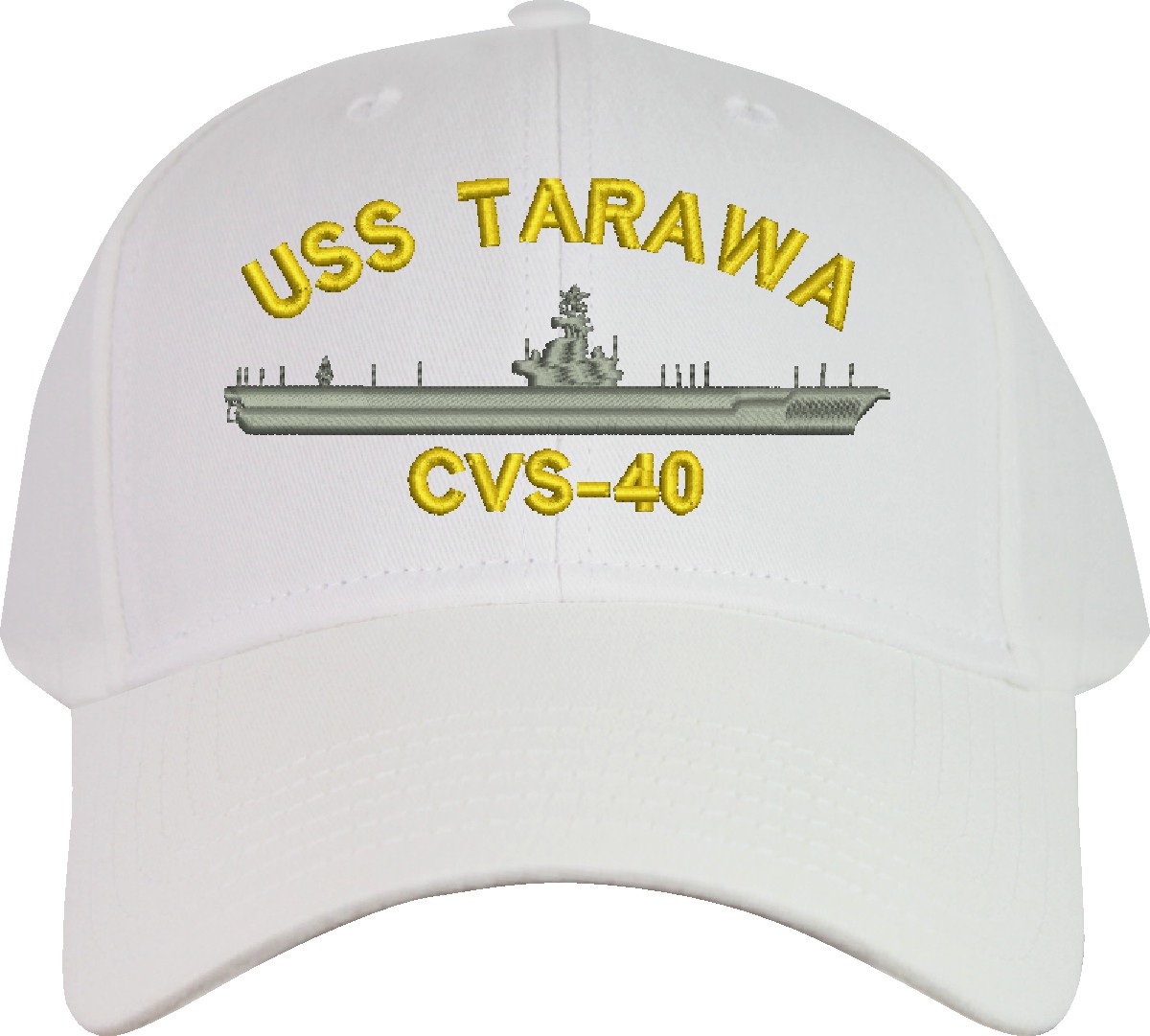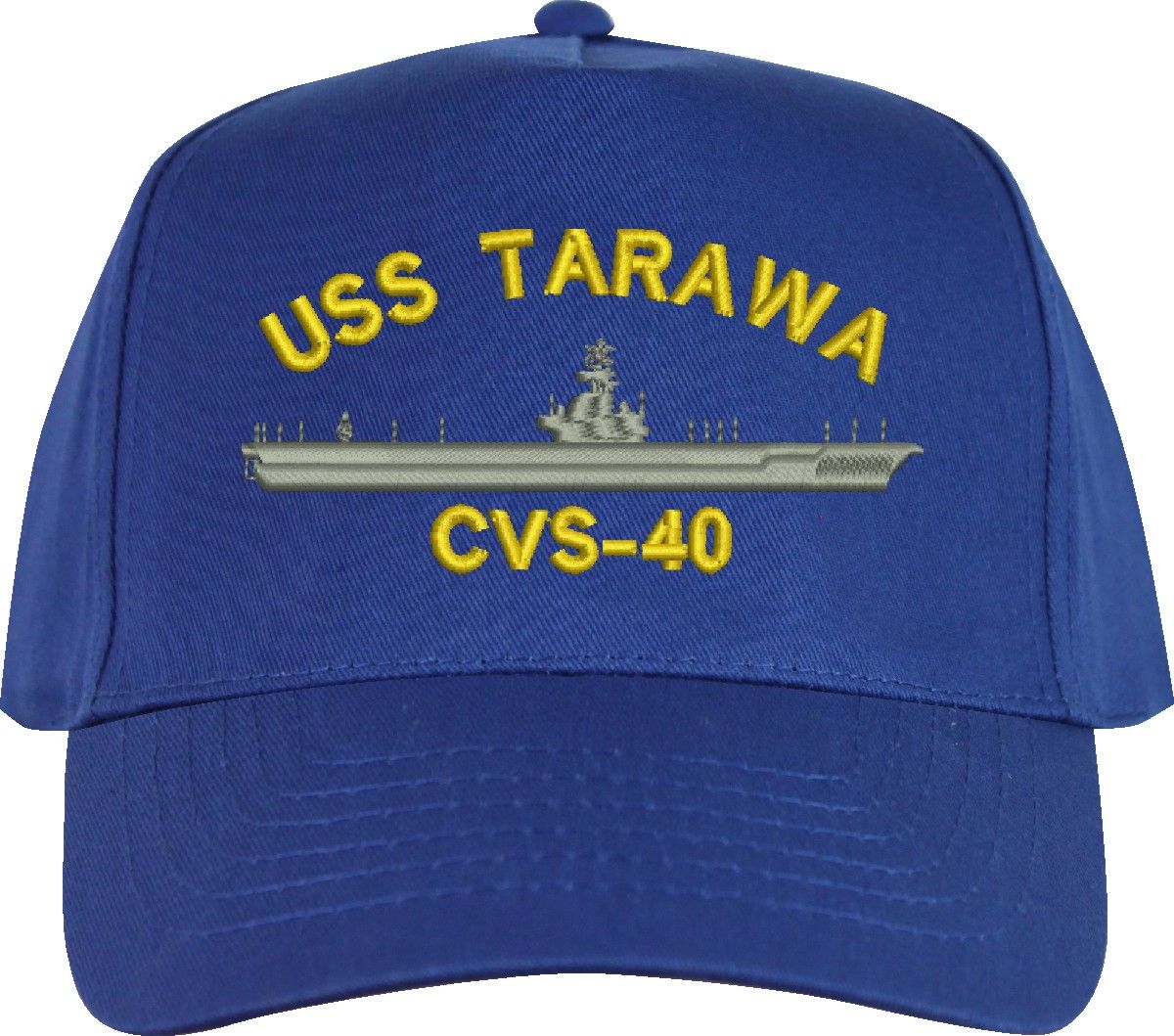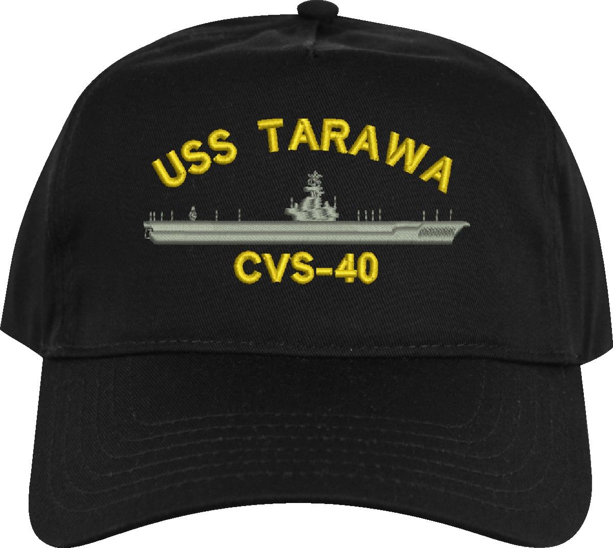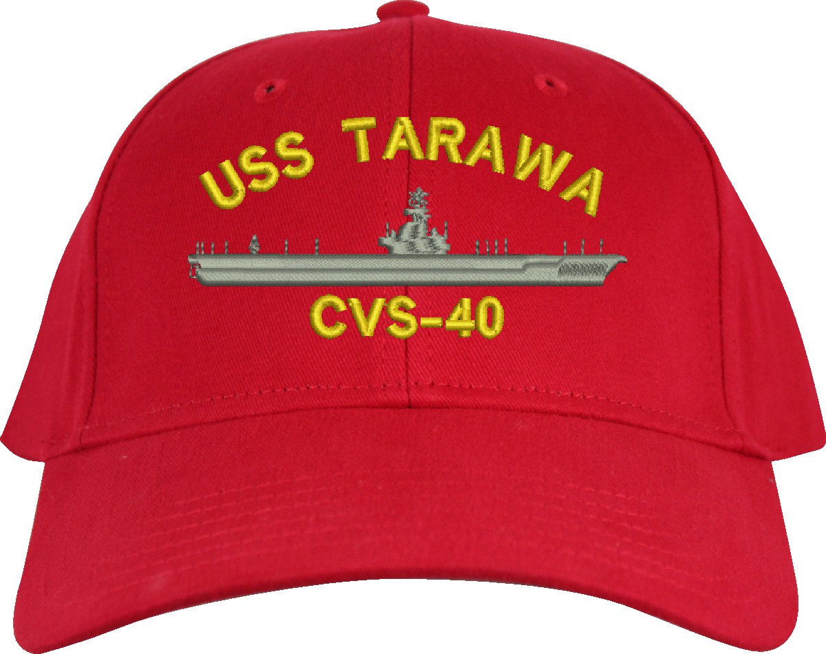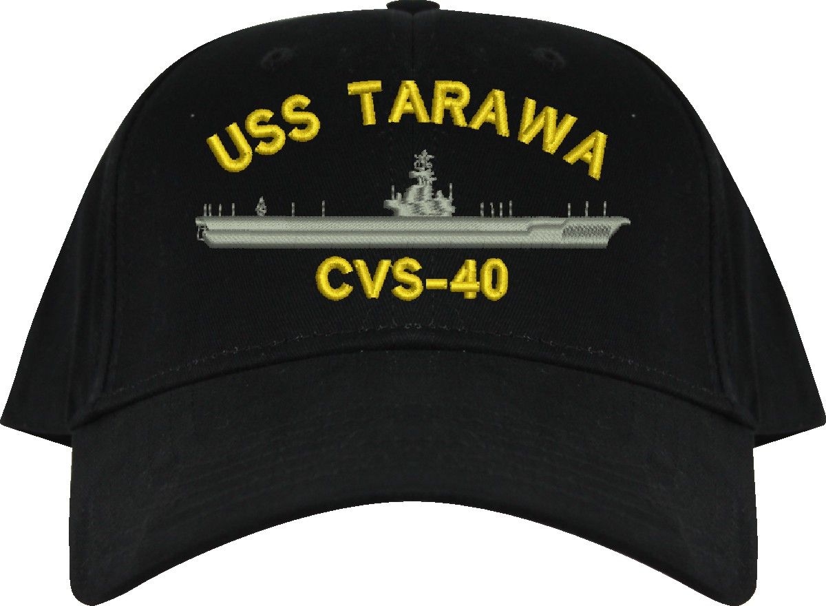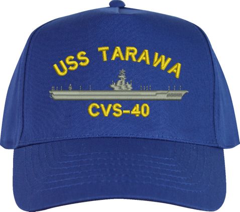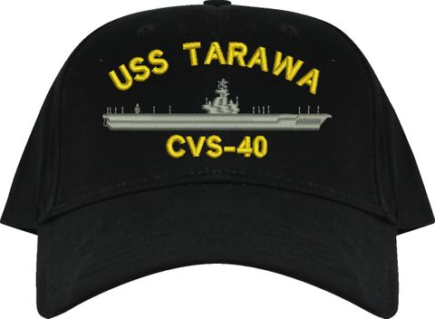 All Text on custom orders will be embroidered in ALL CAPITAL LETTERS.MilitaryBest is proud to offer this USS Tarawa CVS-40 Imported Cap. This Cap honors the service of our U.S. Navy personel who have served aboard this ship protecting our freedom with pride. Choose from an assortment of colors in High or Low Profile. These are perfect for honoring your USS Tarawa Navy Veteran. For an additional cost you can also have your Custom Text embroidered on the back of the ball cap. All embroidery is performed to order at our facilities in Scottsboro, Alabama by Americans with a passion for patriotism!