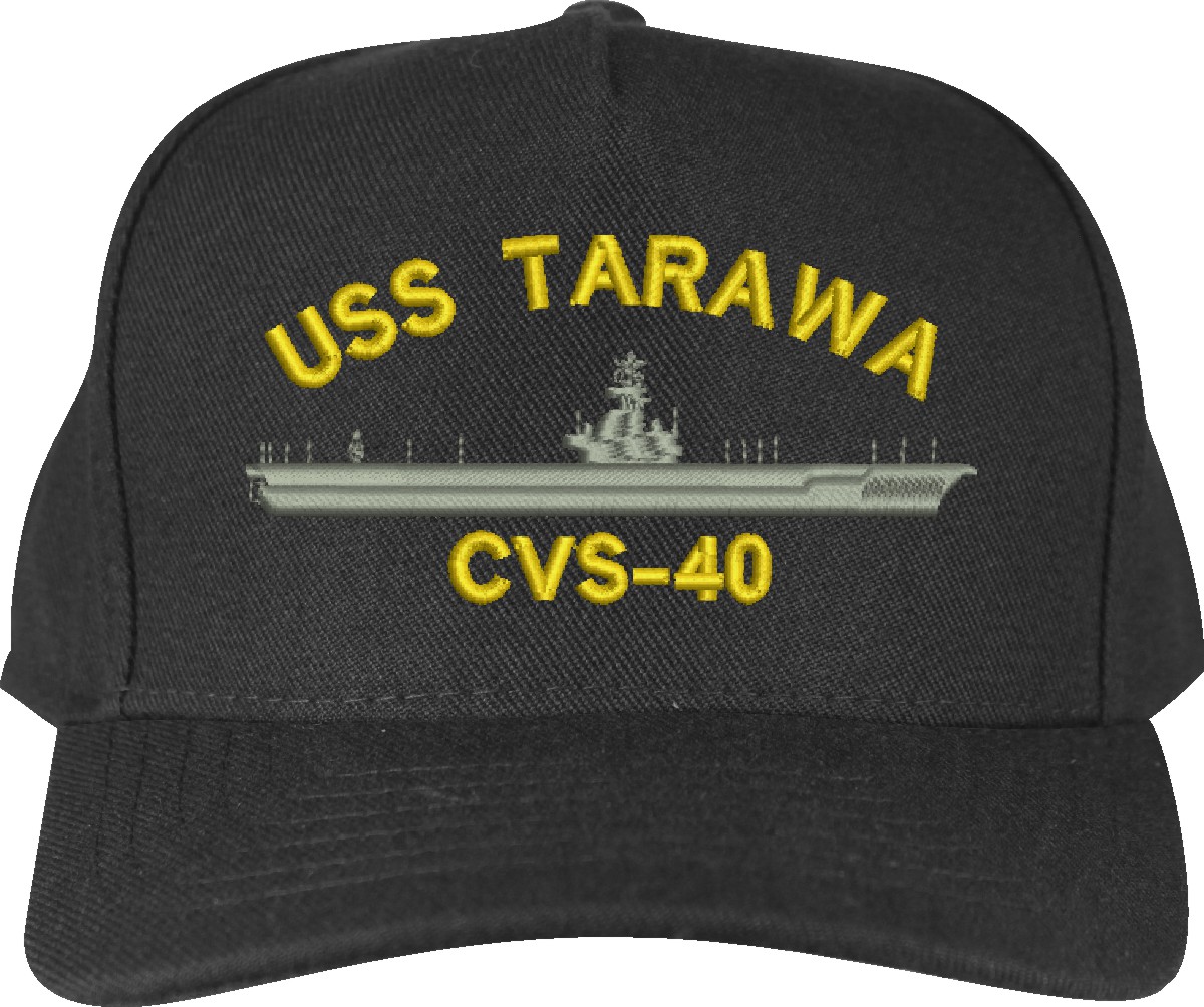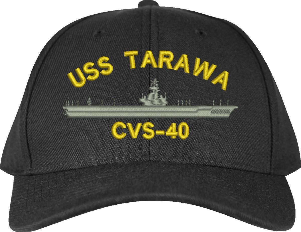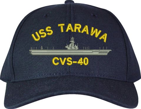 MilitaryBest is proud to offer this USS Tarawa CVS-40 Made in the USA Ball Cap. This Cap honors the service of our U.S. Navy personel who have served aboard this ship protecting our freedom with pride. Choose from Navy Blue or Black in High or Low Profile. These are perfect for honoring your USS Tarawa Navy Veteran. For an additional cost you can also have your Custom Text embroidered on the back of the ball cap. Embroidery on these Made in the USA caps is performed to order at our facilities in Scottsboro, Alabama by Americans with a passion for patriotism!
