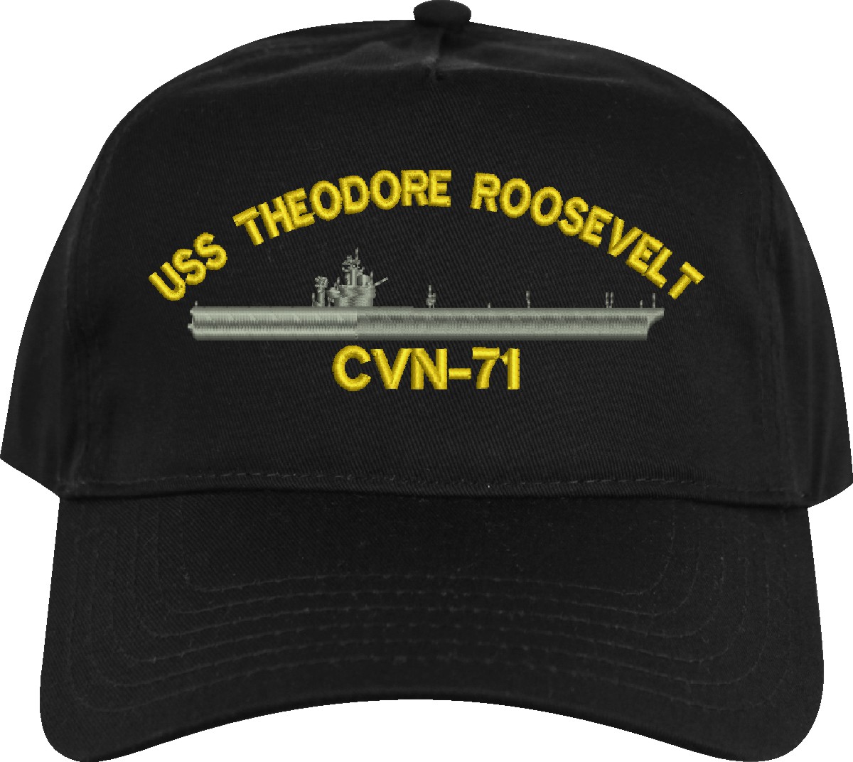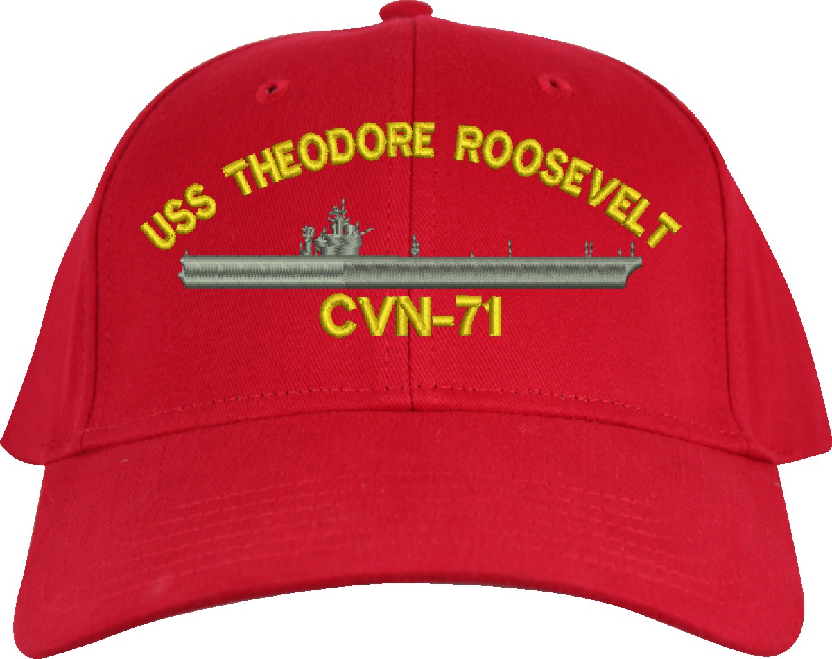 All Text on custom orders will be embroidered in ALL CAPITAL LETTERS.MilitaryBest is proud to offer this USS Theodore Roosevelt CVN-71 Imported Cap. This Cap honors the service of our U.S. Navy personel who have served aboard this ship protecting our freedom with pride. Choose from an assortment of colors in High or Low Profile. These are perfect for honoring your USS Theodore Roosevelt Navy Veteran. For an additional cost you can also have your Custom Text embroidered on the back of the ball cap. All embroidery is performed to order at our facilities in Scottsboro, Alabama by Americans with a passion for patriotism!