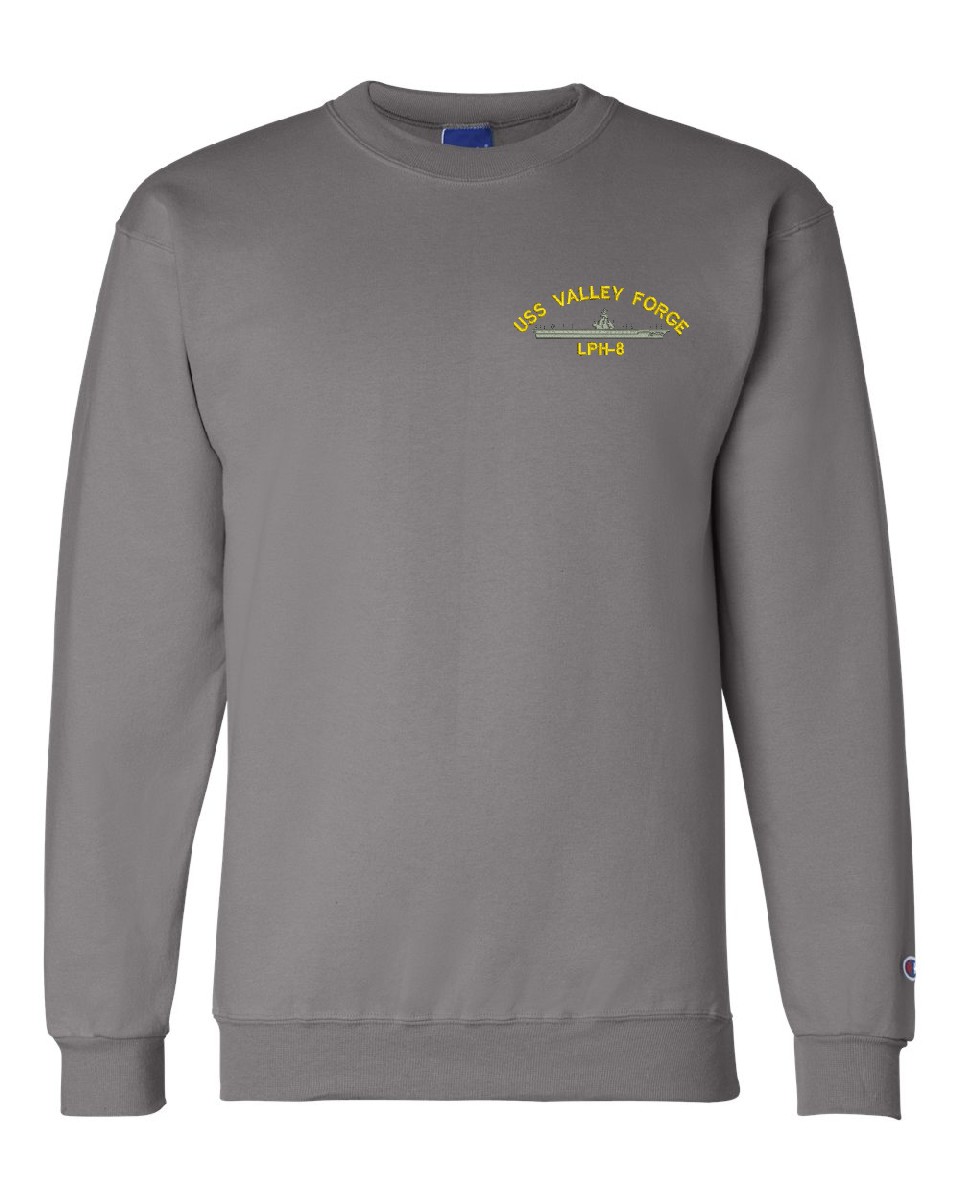 MilitaryBest is proud to offer this USS Valley Forge LPH-8 Sweatshirt. This Sweatshirt honors the service of our U.S. Navy personel who have served aboard this ship protecting our freedom with pride. Choose from an assortment of colors in sizes Small through 3XL. These are perfect for honoring your USS Valley Forge Navy Veteran. For an additional cost you can also have your Rank & Rate embroidered on the left sleeve of the Sweatshirt. All embroidery is performed to order at our facilities in Scottsboro, Alabama by Americans with a passion for patriotism!