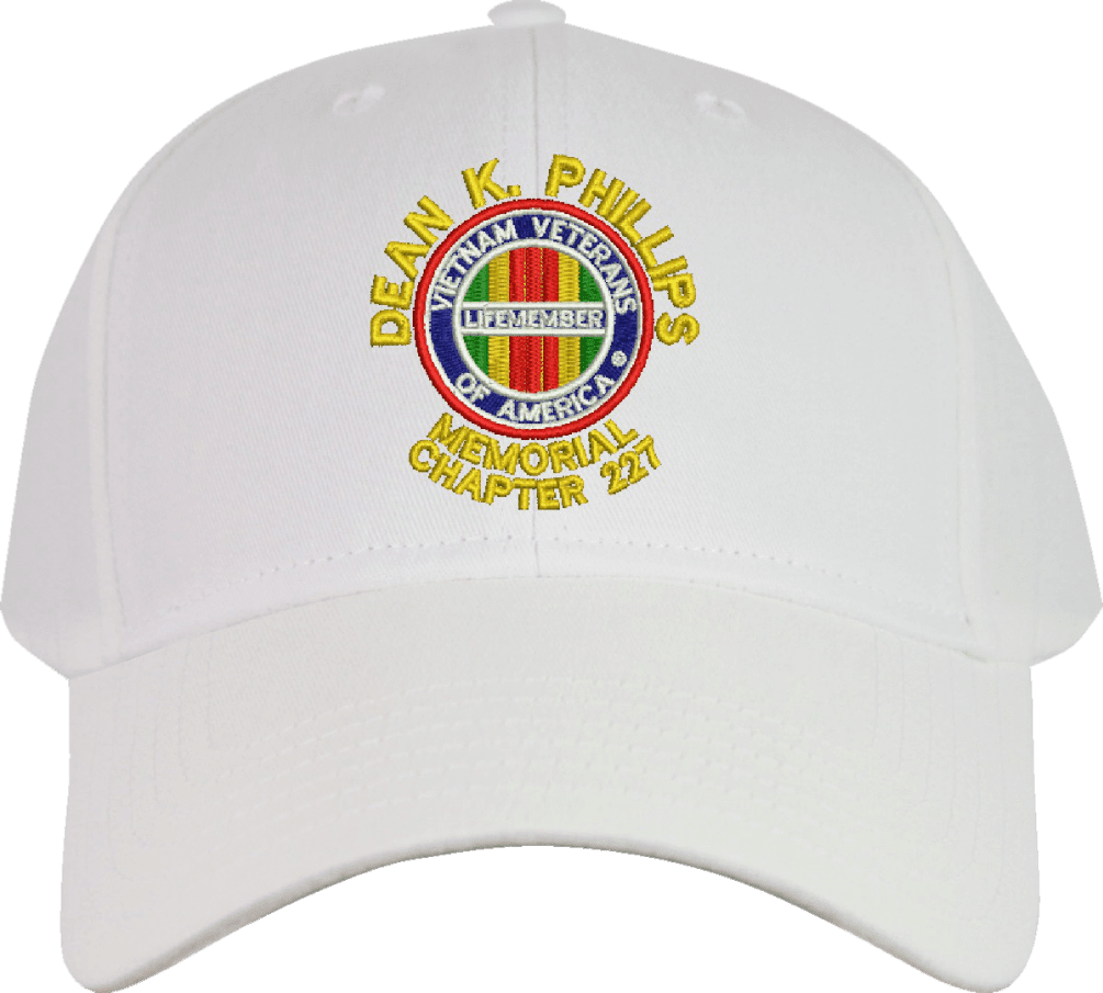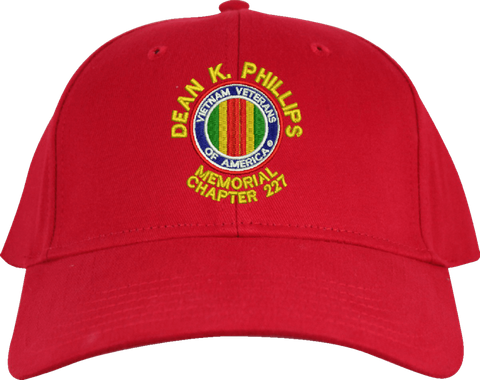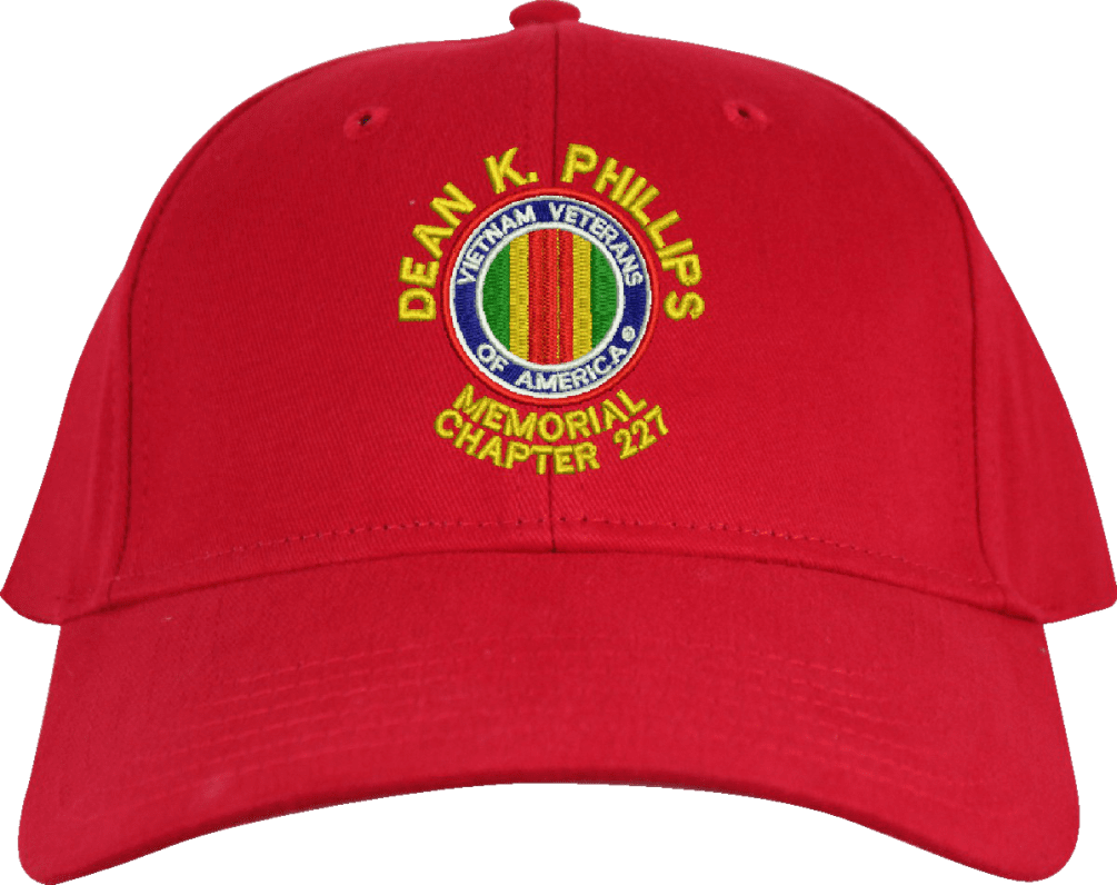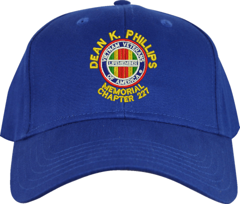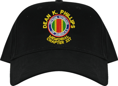 All Text on custom orders will be embroidered in ALL CAPITAL LETTERS.MilitaryBest is proud to offer this VVA Chapter 227 Dean K. Phillips Memorial Imported Cap. This Cap honors the service of our U.S. Military personel who have served in the United States military during the Vietnam Era protecting our freedom with pride. Choose from an assortment of colors in High or Low Profile. These are perfect for honoring your VVA Chapter 227 Veteran. For an additional cost you can also have your Custom Text embroidered on the back of the ball cap. All embroidery is performed to order at our facilities in Scottsboro, Alabama by Americans with a passion for patriotism!