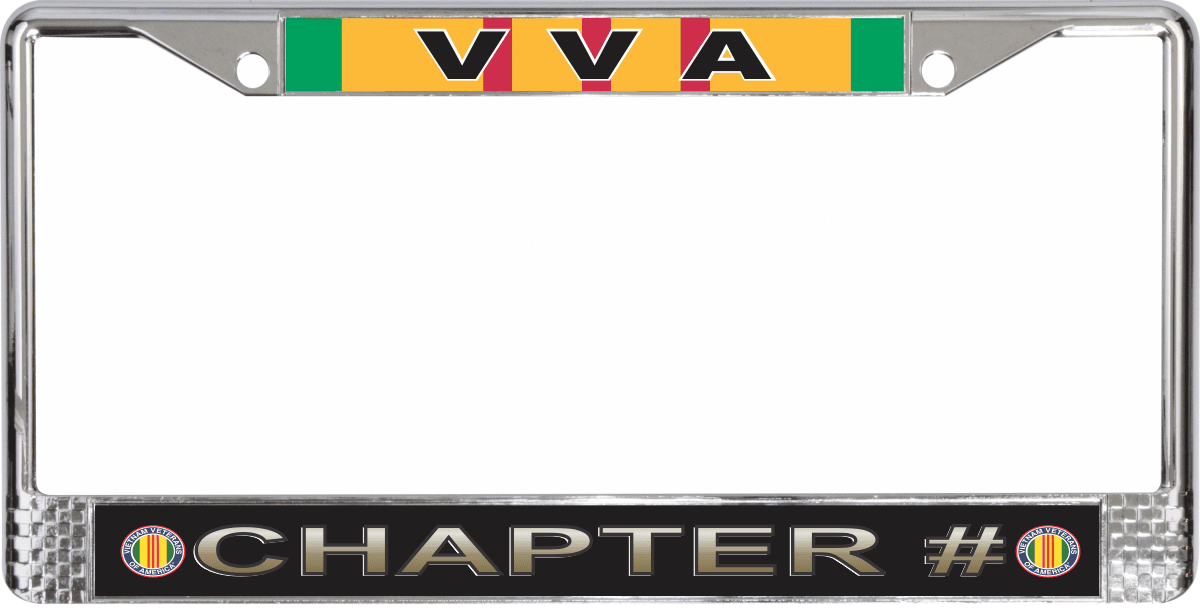This Custom VVA Chapter License Plate Frame is proudly produced in our facility in Scottsboro, Alabama. Each Chrome Dipped Alloy Frame has Poly Coated Aluminum Inserts which allow our production team to provide you with High Quality Designs. Each design is Sublimation Printed individually, and the end product provides a high gloss appearance of the design. Our Military License Plate Frames' quality are guaranteed. Custom Frames are non-returnable unless there is a defect with the frame or design. As with all VVA purchases, 10% of the proceeds goes directly to the VVA.A percentage of the sale of each MilitaryBest item is forwarded to the licensing departments of each respective branch of service in support of the MWR (Morale, Welfare, & Recreation) program. These payments are made by either ALL4U LLC or the wholesaler from where the item originated. Our team thanks you for your service and your support of these programs.