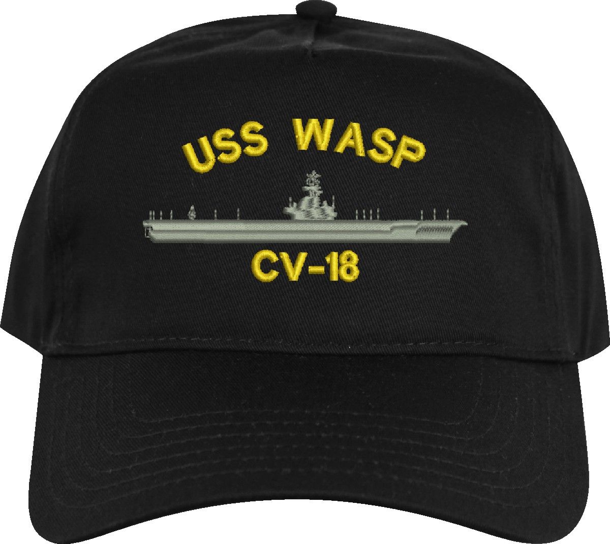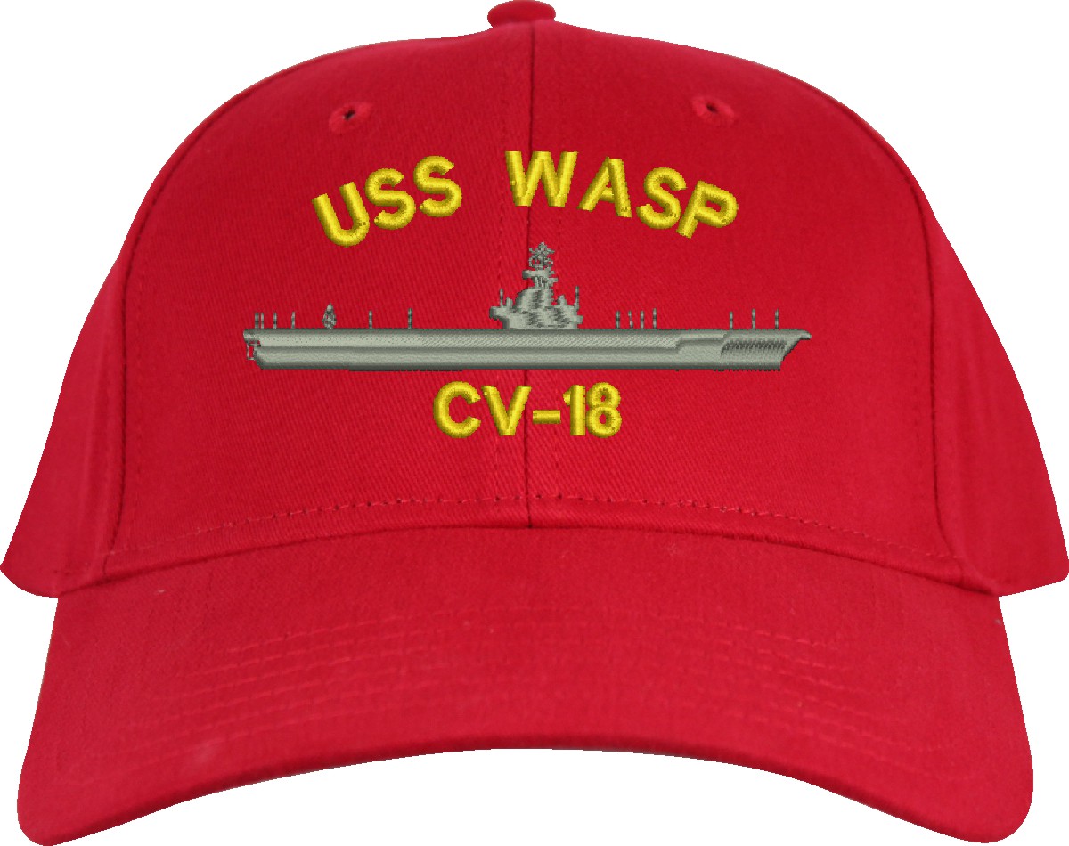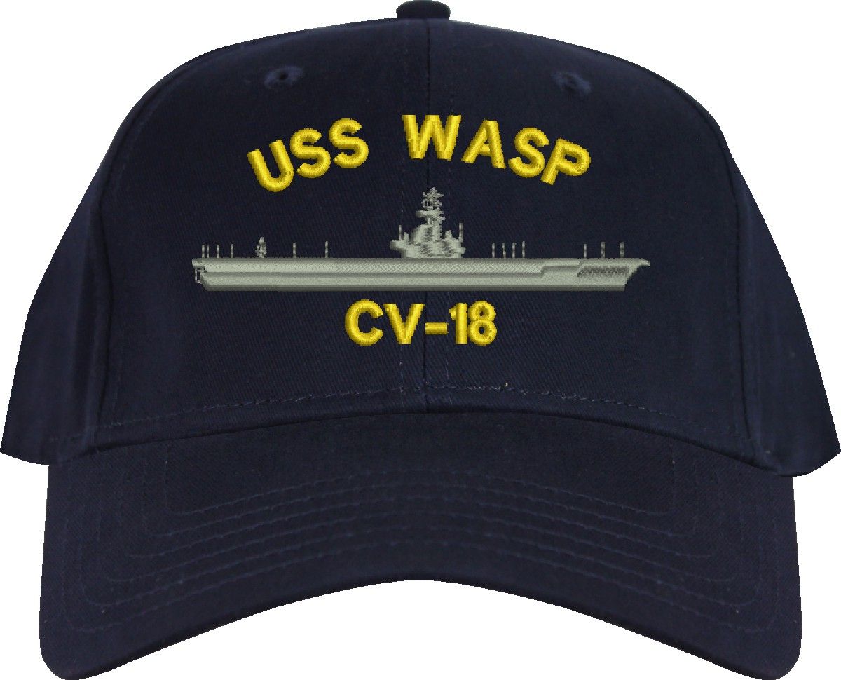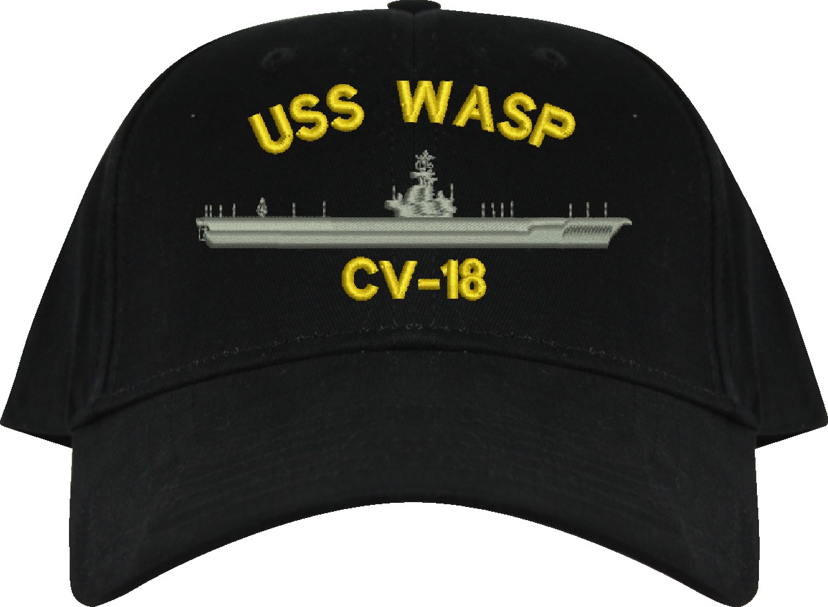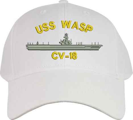 All Text on custom orders will be embroidered in ALL CAPITAL LETTERS.MilitaryBest is proud to offer this USS Wasp CV-18 Imported Cap. This Cap honors the service of our U.S. Navy personel who have served aboard this ship protecting our freedom with pride. Choose from an assortment of colors in High or Low Profile. These are perfect for honoring your USS Wasp Navy Veteran. For an additional cost you can also have your Custom Text embroidered on the back of the ball cap. All embroidery is performed to order at our facilities in Scottsboro, Alabama by Americans with a passion for patriotism!