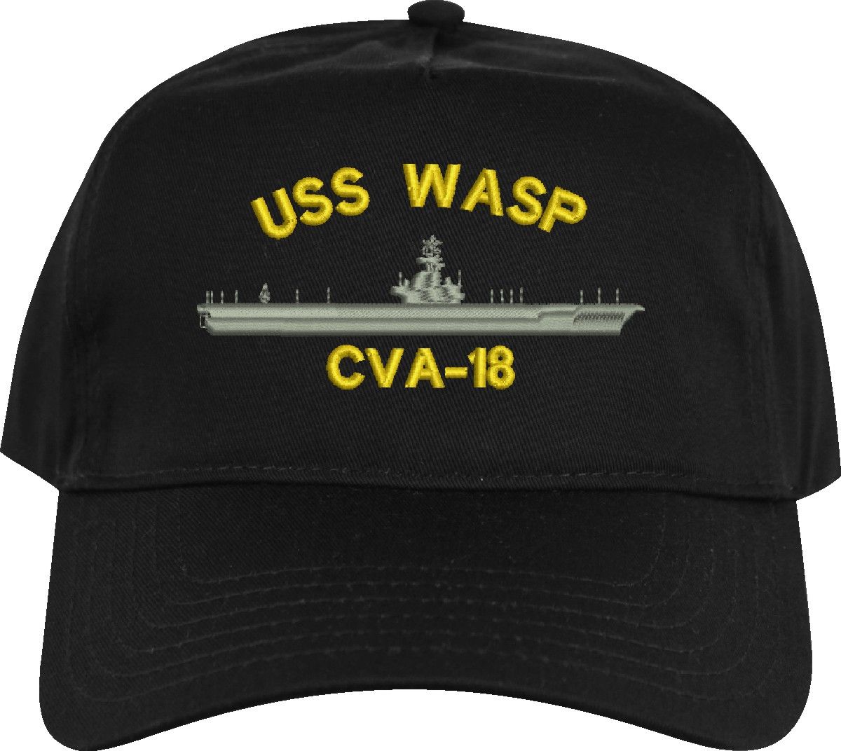 All Text on custom orders will be embroidered in ALL CAPITAL LETTERS.MilitaryBest is proud to offer this USS Wasp CVA-18 Imported Cap. This Cap honors the service of our U.S. Navy personel who have served aboard this ship protecting our freedom with pride. Choose from an assortment of colors in High or Low Profile. These are perfect for honoring your USS Wasp Navy Veteran. For an additional cost you can also have your Custom Text embroidered on the back of the ball cap. All embroidery is performed to order at our facilities in Scottsboro, Alabama by Americans with a passion for patriotism!