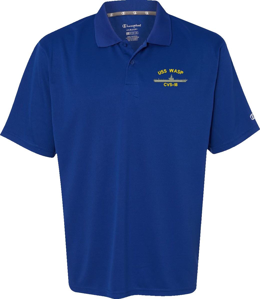 MilitaryBest is proud to offer this USS Wasp CVS-18 Moisture Wicking Polo. This Golf style shirt honors the service of our U.S. Navy personel who have served aboard this ship protecting our freedom with pride. Choose from an assortment of colors in sizes Small through 2XL. These are perfect for honoring your USS Wasp Navy Veteran. For an additional cost you can also have your Rank & Rate embroidered on the left sleeve of the polo shirt. All embroidery is performed to order at our facilities in Scottsboro, Alabama by Americans with a passion for patriotism!