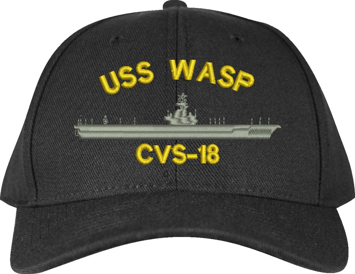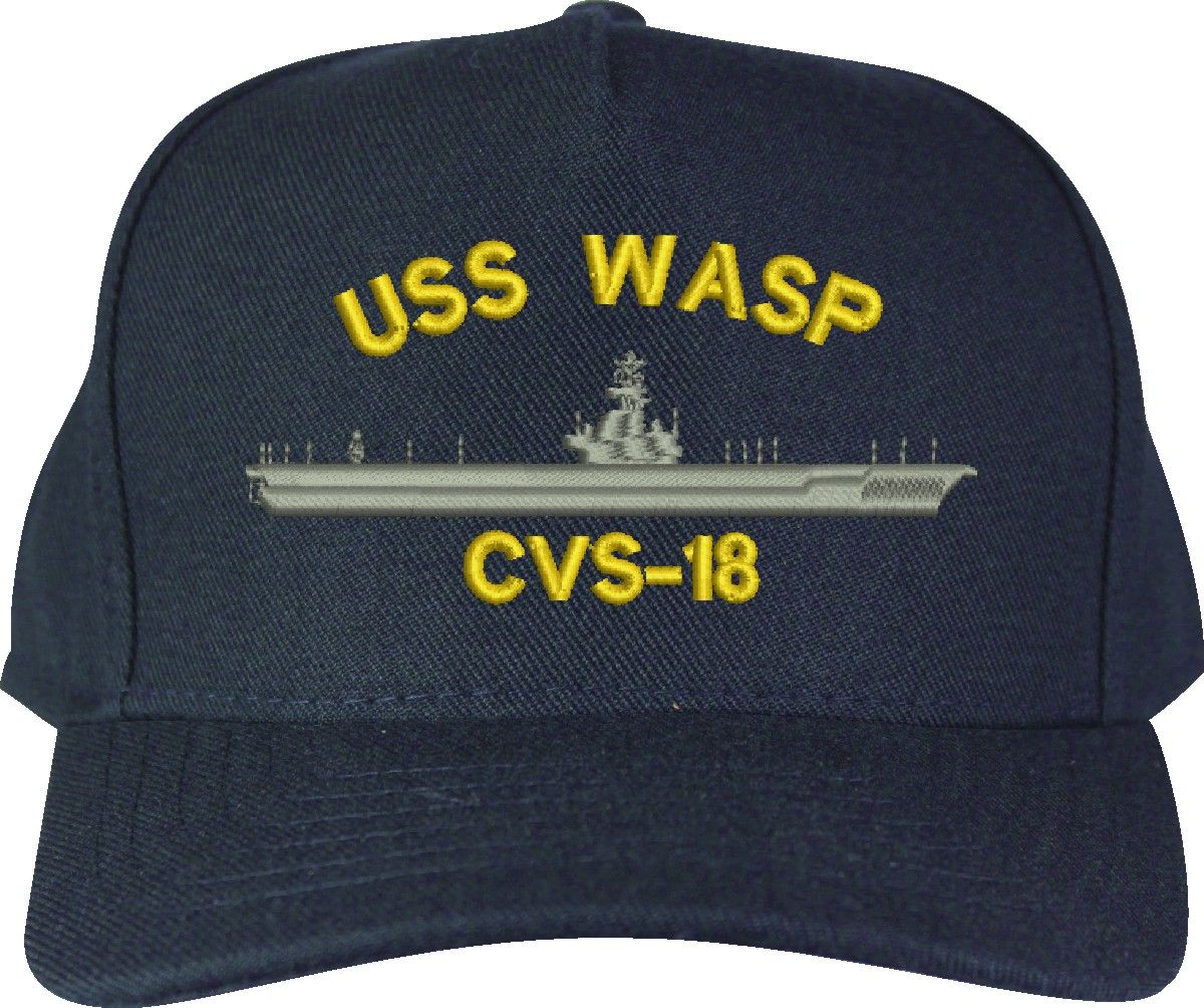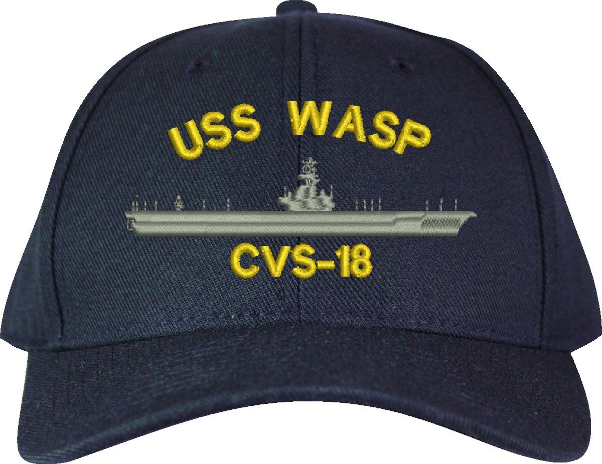 MilitaryBest is proud to offer this USS Wasp CVS-18 Made in the USA Ball Cap. This Cap honors the service of our U.S. Navy personel who have served aboard this ship protecting our freedom with pride. Choose from Navy Blue or Black in High or Low Profile. These are perfect for honoring your USS Wasp Navy Veteran. For an additional cost you can also have your Custom Text embroidered on the back of the ball cap. Embroidery on these Made in the USA caps is performed to order at our facilities in Scottsboro, Alabama by Americans with a passion for patriotism!