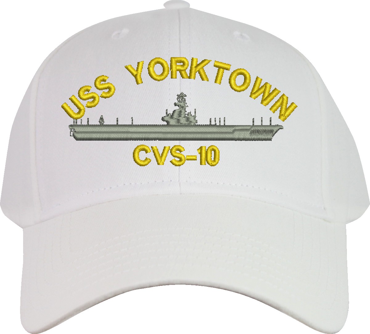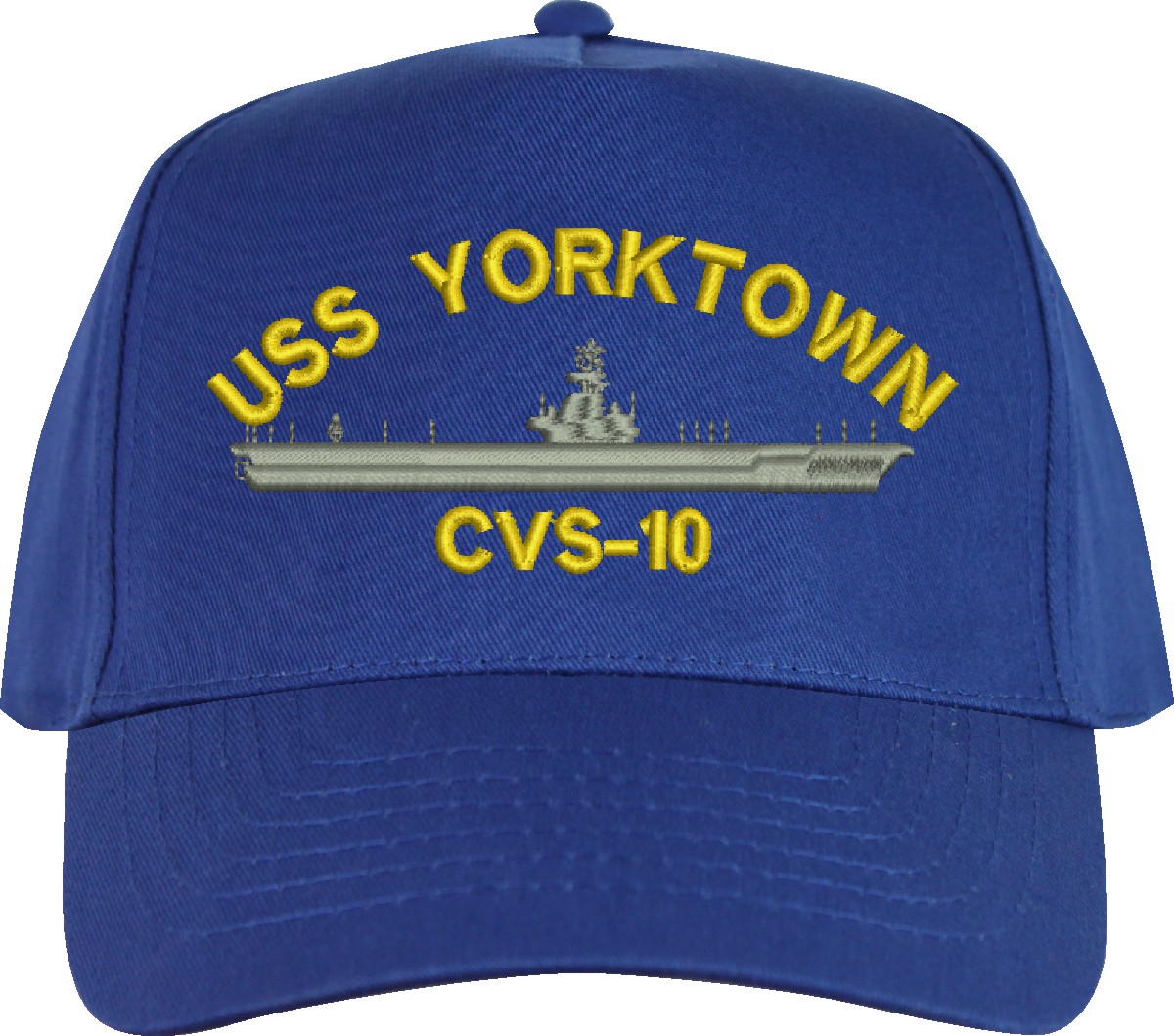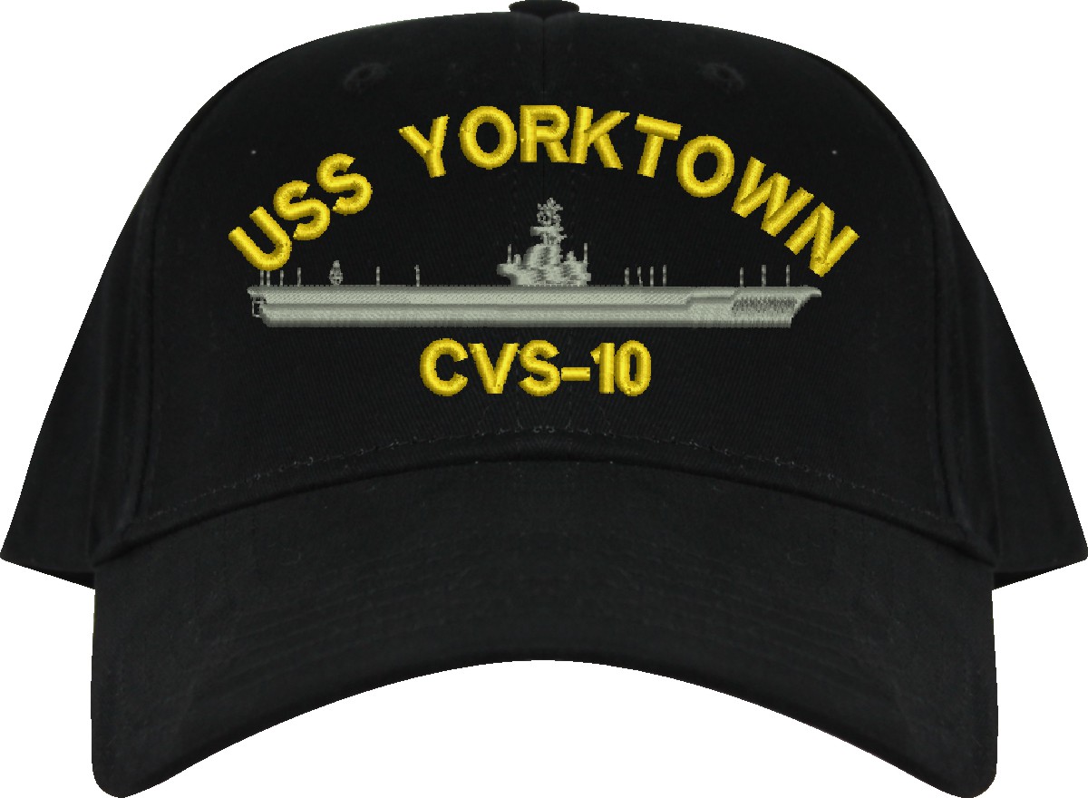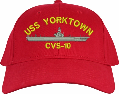 All Text on custom orders will be embroidered in ALL CAPITAL LETTERS.MilitaryBest is proud to offer this USS Yorktown CVS-10 Imported Cap. This Cap honors the service of our U.S. Navy personel who have served aboard this ship protecting our freedom with pride. Choose from an assortment of colors in High or Low Profile. These are perfect for honoring your USS Yorktown Navy Veteran. For an additional cost you can also have your Custom Text embroidered on the back of the ball cap. All embroidery is performed to order at our facilities in Scottsboro, Alabama by Americans with a passion for patriotism!