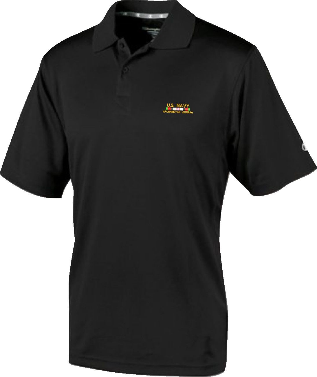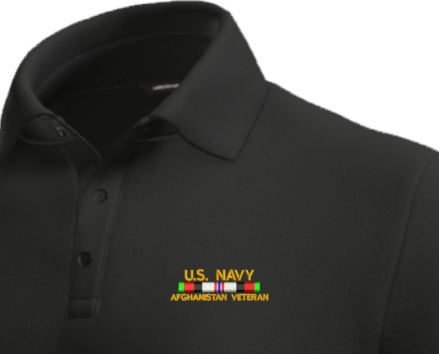 We at Militarybest.com are proud to present you with these U.S. Navy Afghanistan Veteran Moisture Wicking 100% Polyester Polo Shirts. Great for the golf course or the board room, our War Vet Polos are the qualityst quality available. Each Double Dry Polo is Embroidered at our Custom Embroidery facilities in Scottsboro, AL.