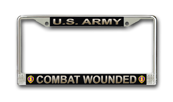 Combat Wounded' U.S. Army Purple Heart License Plate FrameThis 'Combat Wounded' U.S. Army Purple Heart License Plate Frame is made from the highest quality finished metal alloy. Each one is designed to provide years of use. Each is designed in our facility in Scottsboro, Alabama.