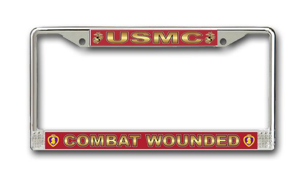 Combat Wounded' U.S. Marine Corps Purple Heart License Plate FrameThis 'Combat Wounded' U.S. Marine Corps Purple Heart License Plate Frame is made from the highest quality finished metal alloy. Each one is designed to provide years of use. Each is designed in our facility in Scottsboro, Alabama.