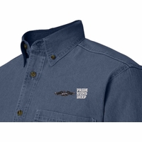 Note: Some of the Color Options pictured may not be available. Available Color Options are listed on the drop down menu above.MilitaryBest is proud to offer this quality U.S. Navy Enlisted Silver Dolphins Deep Silent Fast Deadly Denim Shirt. This long sleeve button down denim shirt is made using a 100% cotton denim material. These quality Military Denim Shirts are proudly embroidered at our facilities in Scottsboro, AL. Support the Navy MWR program by purchasing only from Licensed Vendors.