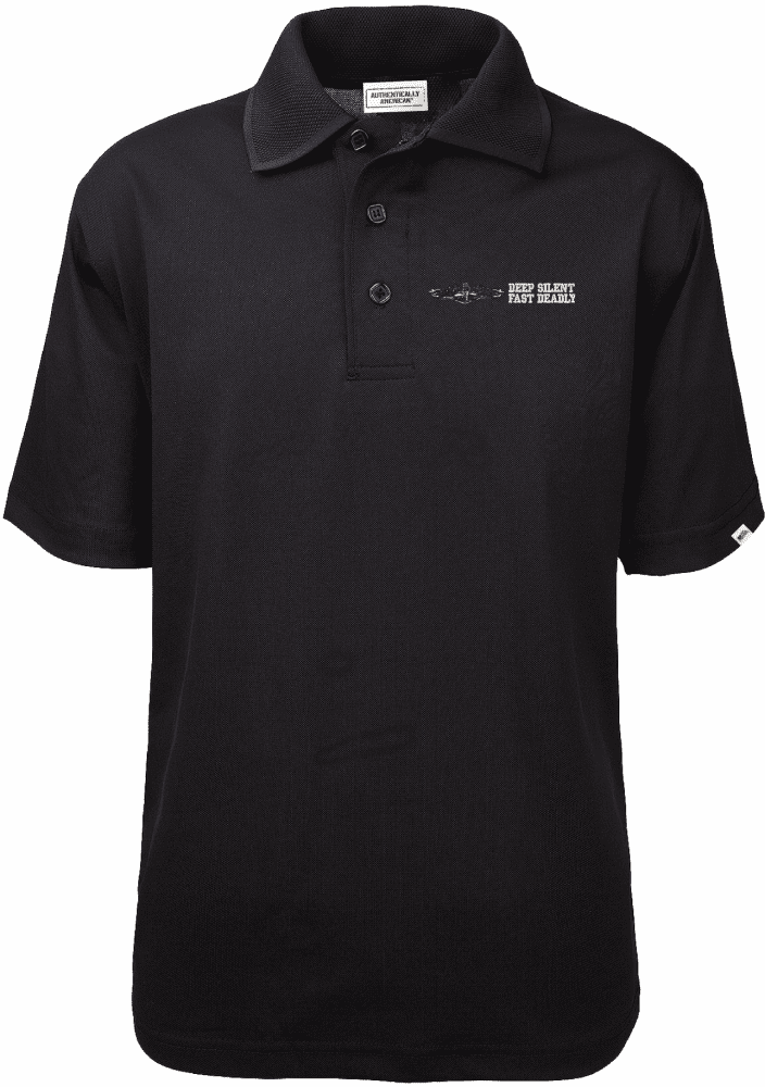MilitaryBest proudly offers a top-quality U.S. Navy Enlisted Silver Dolphins Deep Silent Fast Deadly Men's Moisture Wicking Polo made in the USA by Authentically American whom we have proudly partnered with.- Proudly Made and Embroidered in the USA.