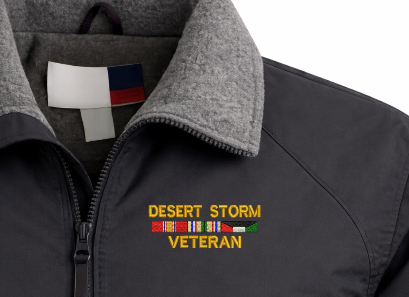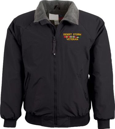 MilitaryBest is expanding it's line of Men's and Women's apparel with this quality Desert Storm Veteran 3 Ribbons 3 Season Jacket. This jacket is made from a 3-Layer system consisting of a nylon shell, an insulator layer, Nylon-lined sleeves, and an inside layer of fleece for comfort. The jacket features include a sturdy black enamel front-zipper, raglan sleeves, outsize zip pockets, an inside zip security pocket, YKK zippers, and a banded-bottom. This jacket will make an excellent addition to your wardrobe, or a quality gift. Your satisfaction is guaranteed! All embroidery is done at our facilities in Scottsboro, AL.A percentage of the sale of each MilitaryBest item is forwarded to the licensing departments of each respective branch of service in support of the MWR (Morale, Welfare, & Recreation) program. These payments are made by either ALL4U LLC or the wholesaler from where the item originated. Our team thanks you for your service and your support of these programs.