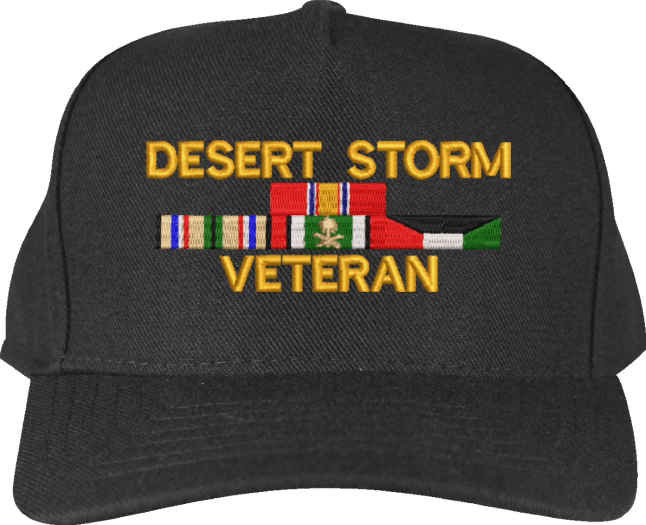 MilitaryBest is proud to offer this quality Desert Storm Veteran 4 Ribbon War Conflict Ribbon Cap. This Desert Storm Veteran 4 Ribbon War Conflict Ribbon Cap is embroidered at our facilities in Scottsboro, AL by skilled craftsmen with a passion for patriotism. Your satisfaction is guaranteed!Cap Features: